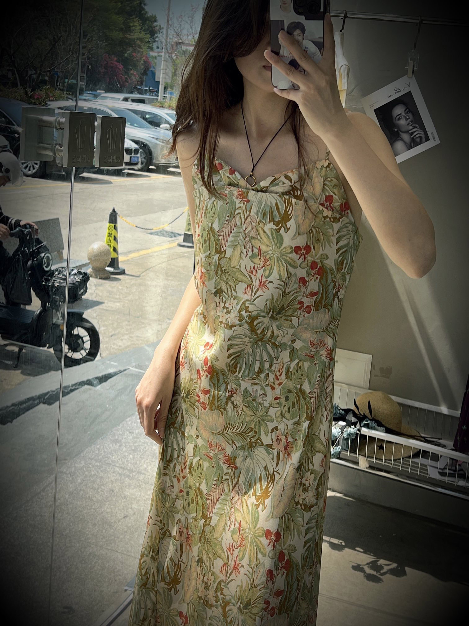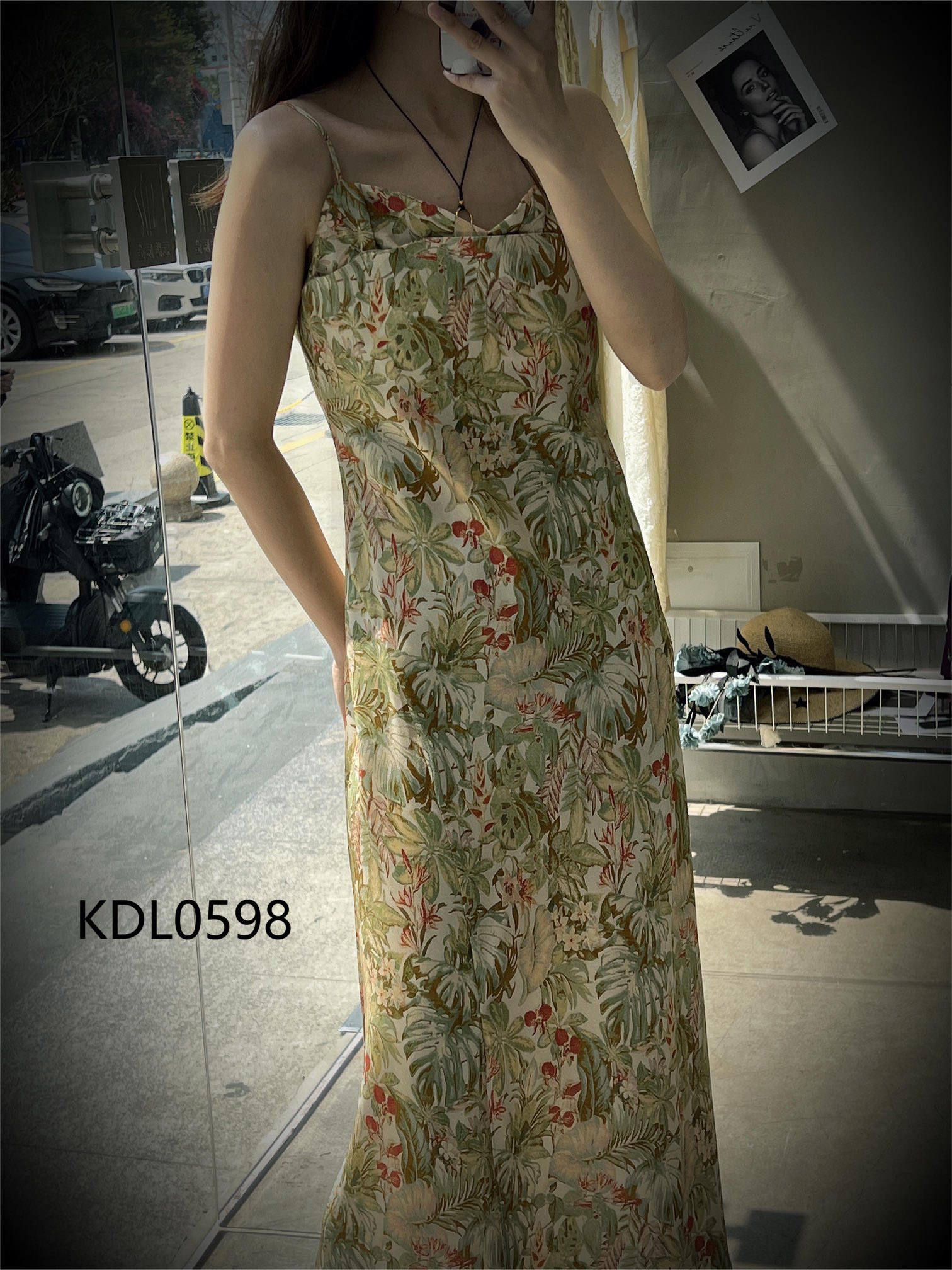 洛诗琳13423气质印花吊带连衣裙2025新款法式A字真丝吊带裙0598