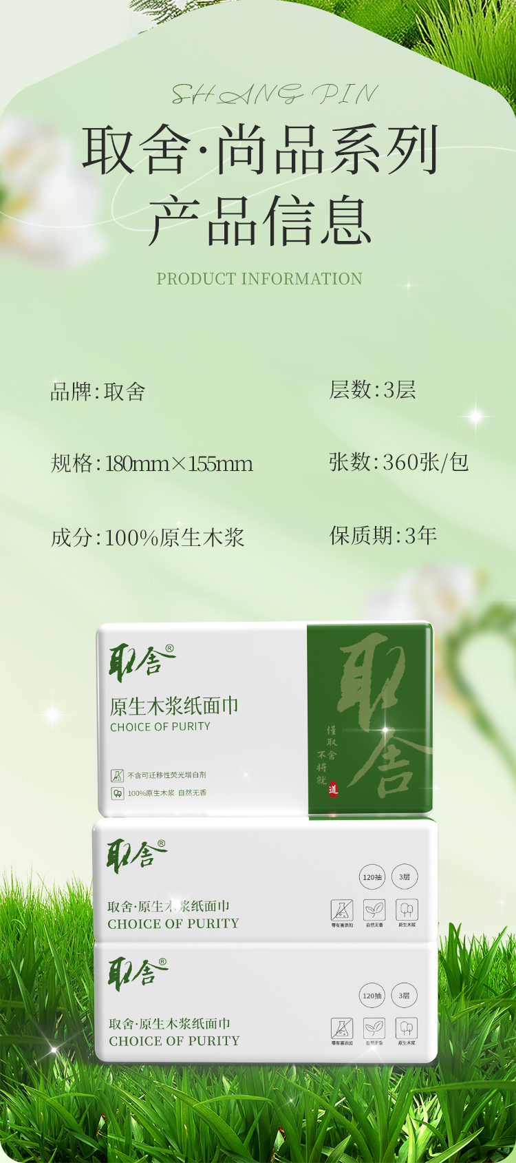取舍山海白色厨房抽纸QSC07136-15包/箱