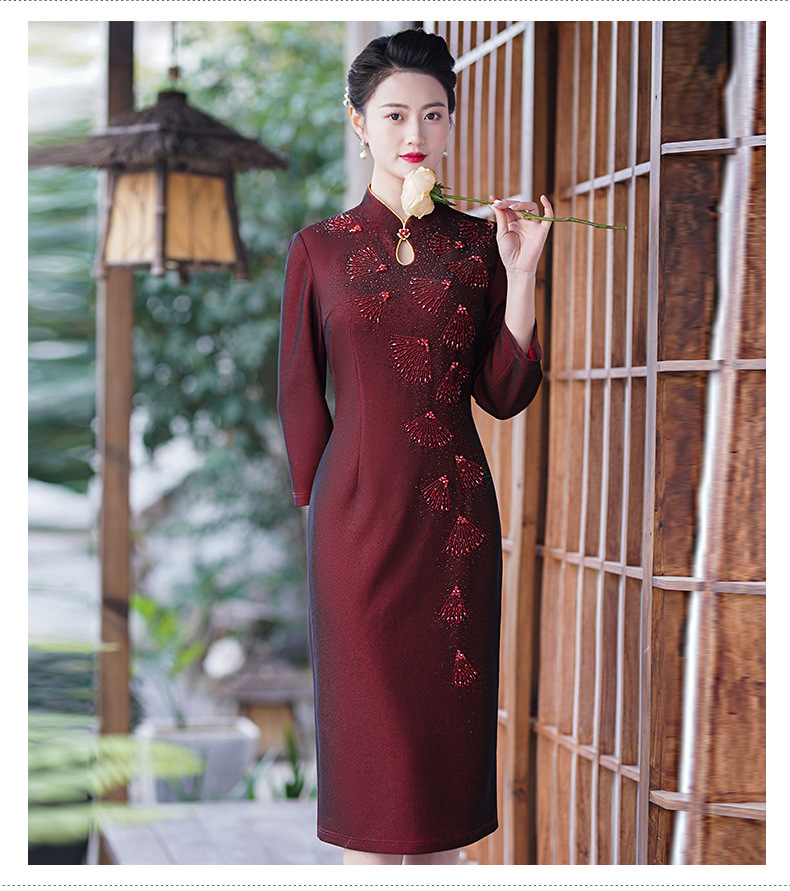 MLY复古风婚礼宴会旗袍喜婆婆中长过膝裙