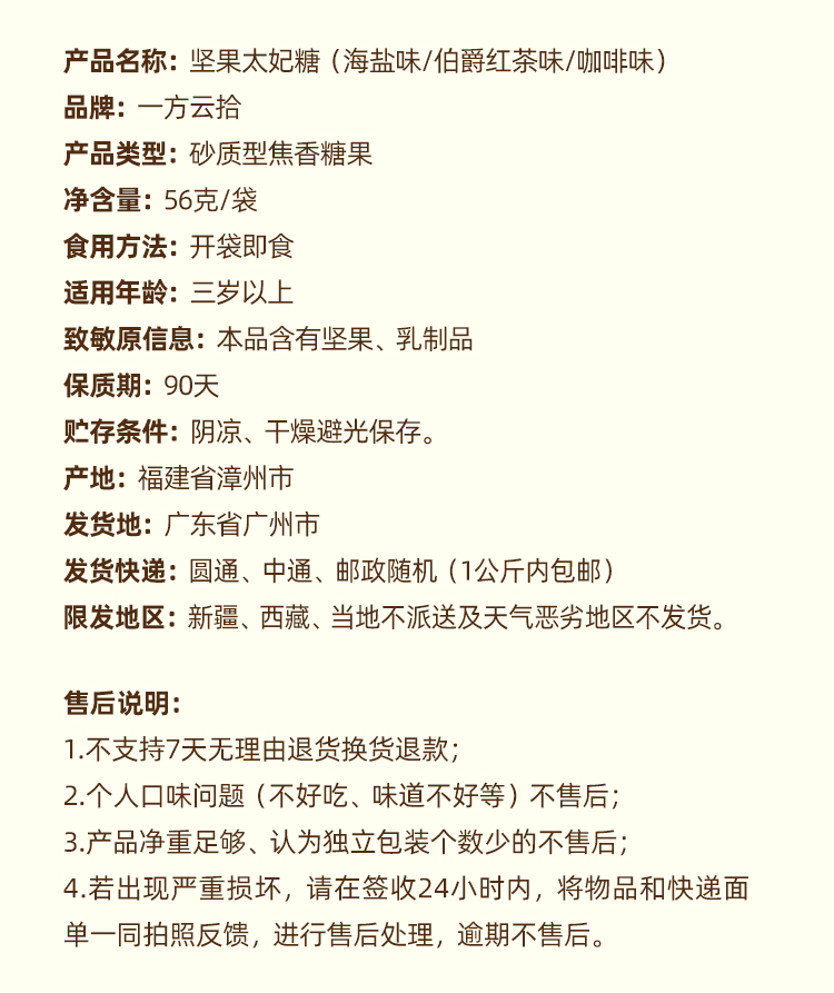 高复购 0反式脂肪酸 | 一方云拾坚果太妃糖 海盐/咖啡/伯爵红茶 3口味入 人气坚果糖果休闲零食送礼 56g/袋*3袋/6袋