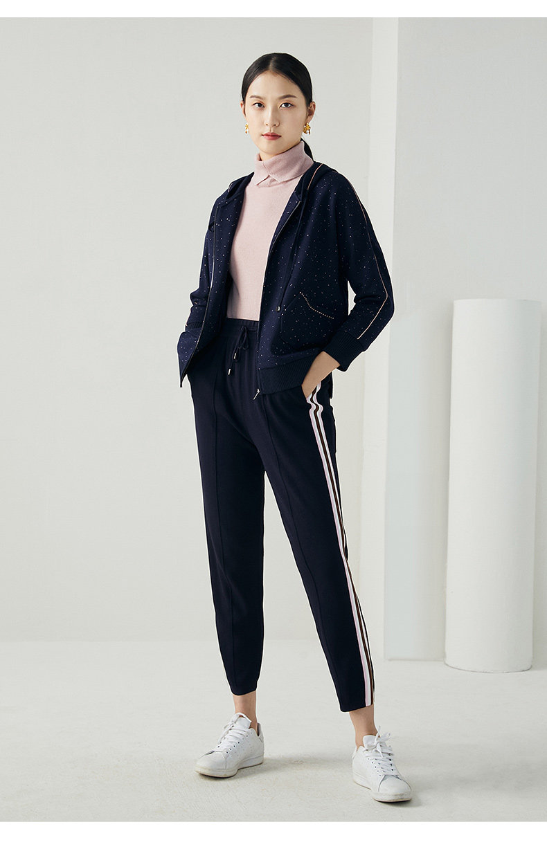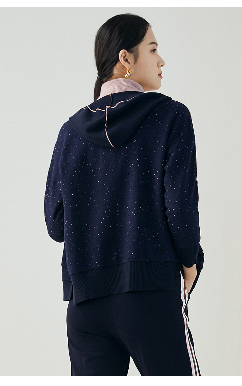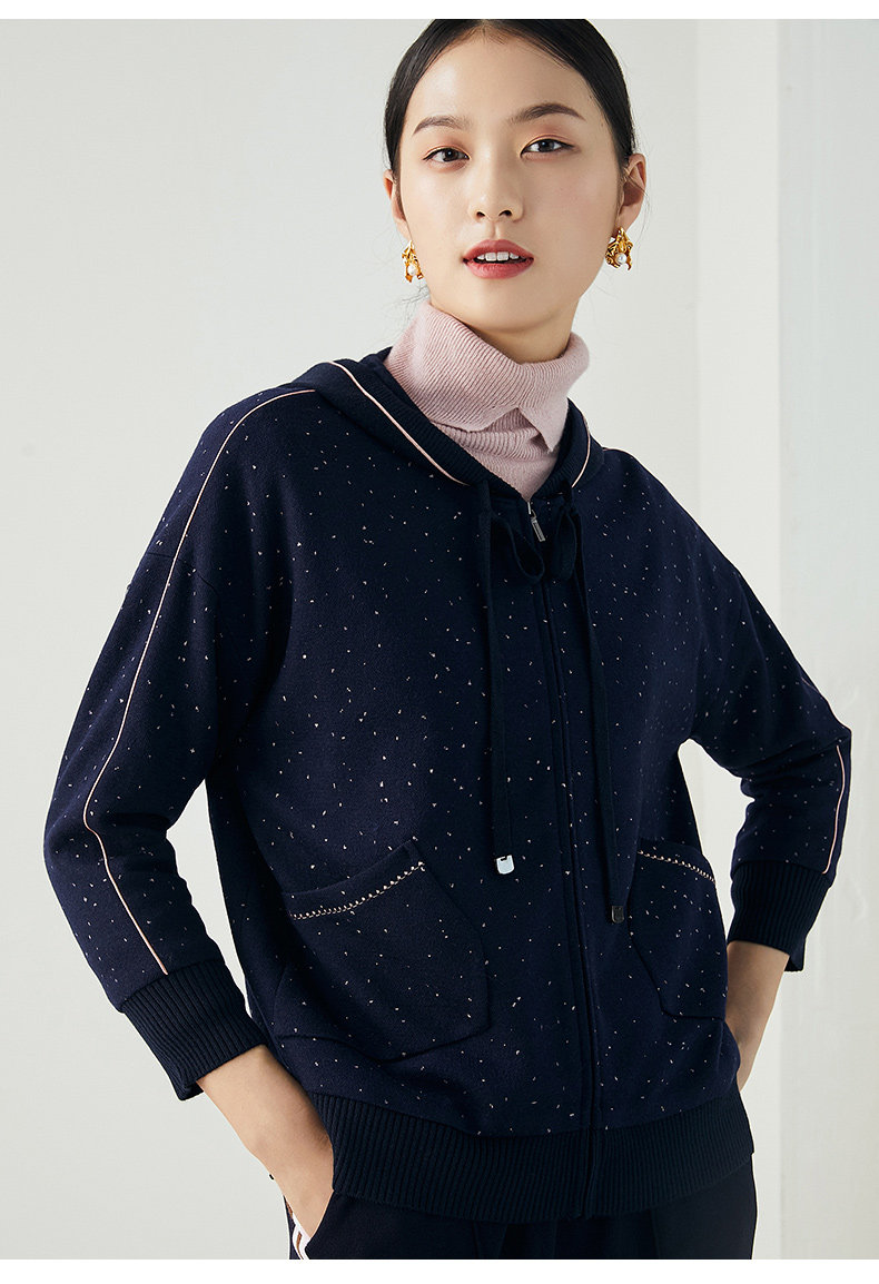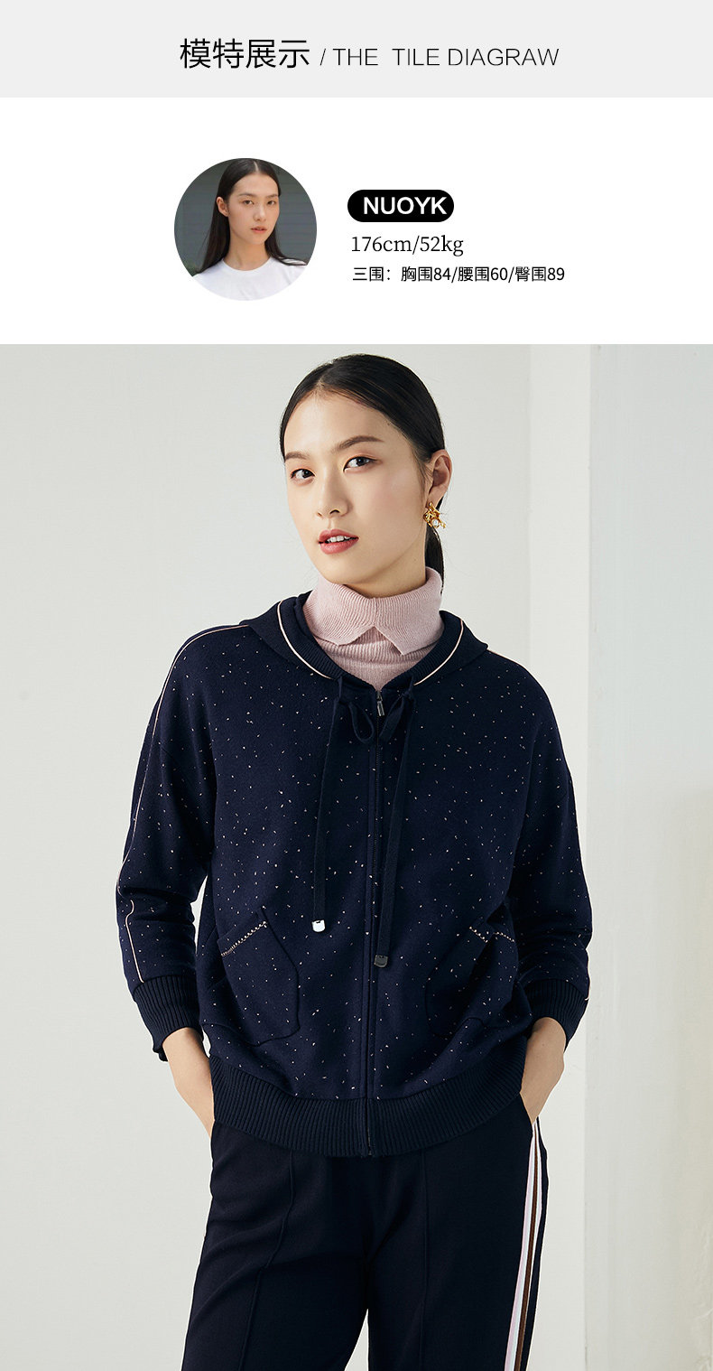 【绵羊毛】乔万尼秋冬新款休闲连帽外套软糯舒适百搭拼接螺纹设计感开衫ES4B331