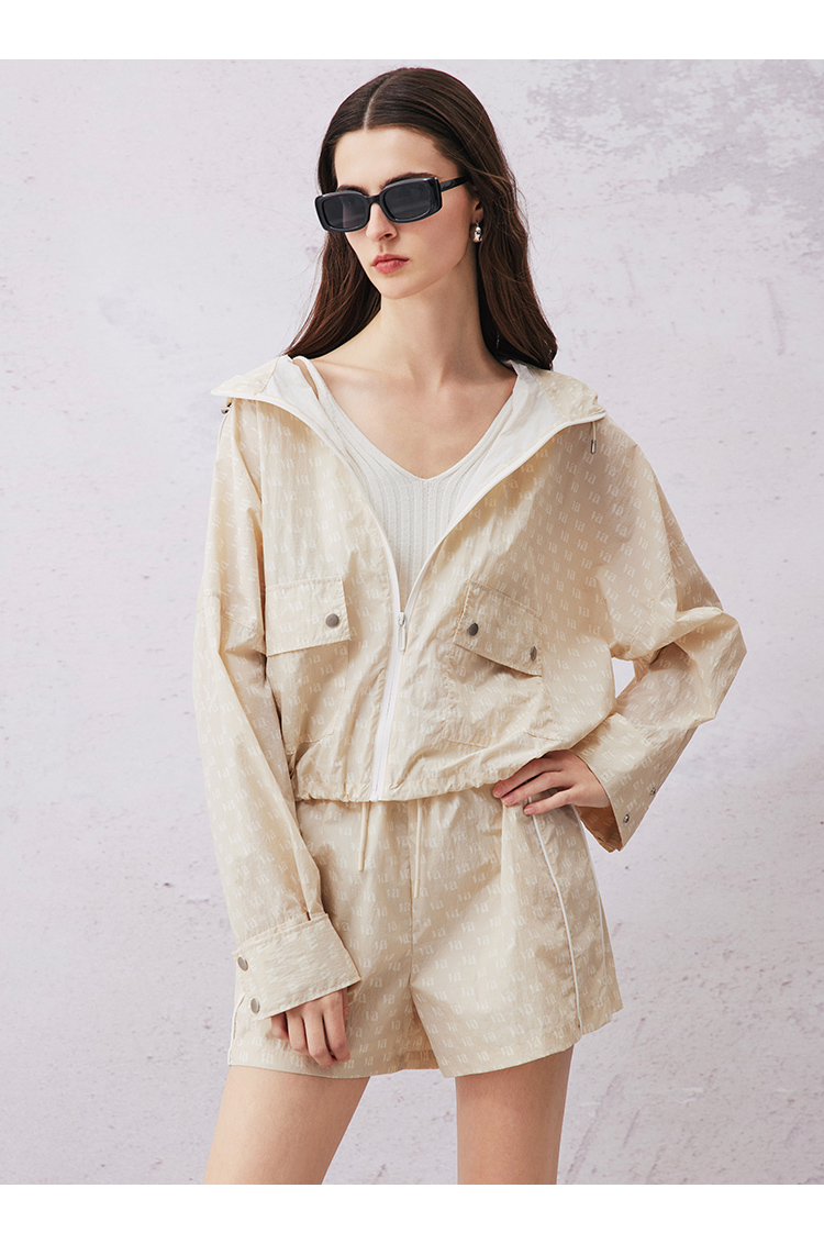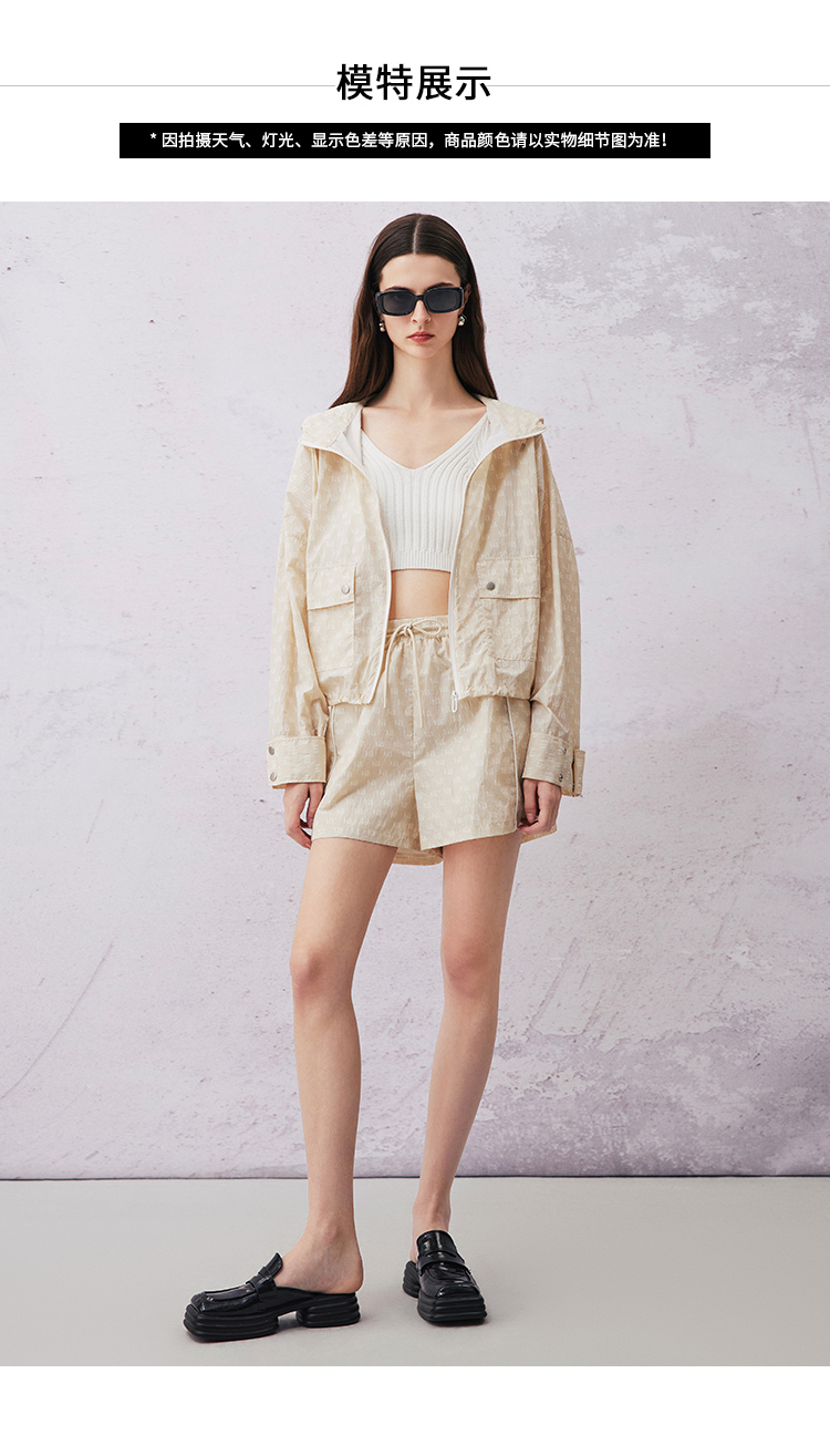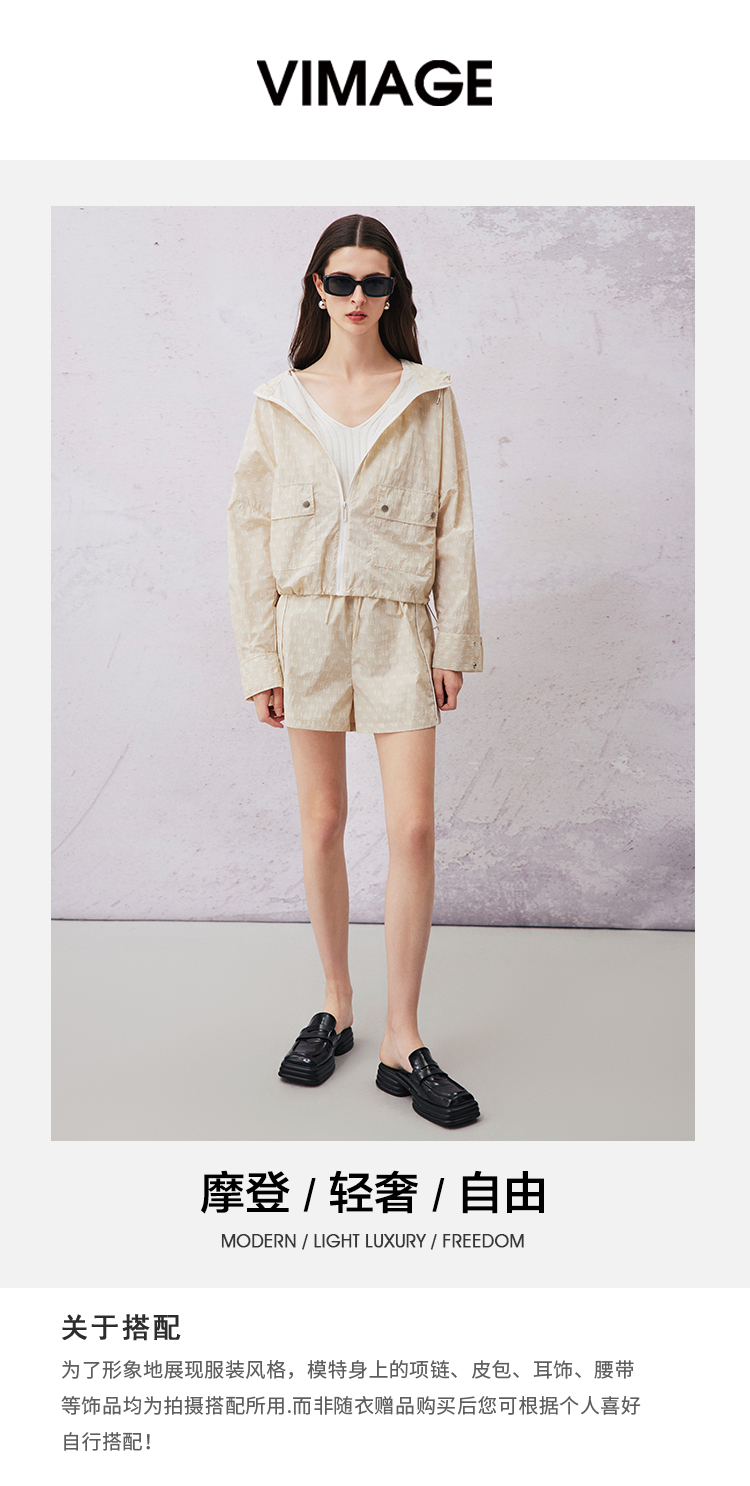 VIMAGE纬漫纪春季新款时尚印花休闲连帽外套V2103722
