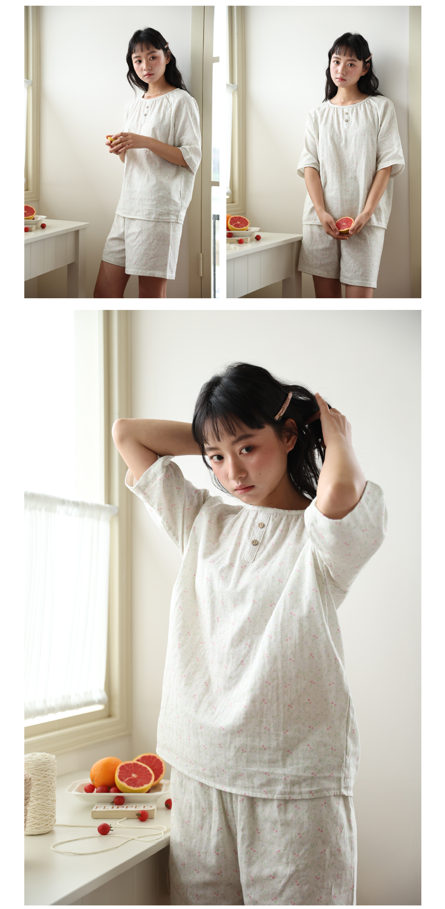 (小眠专属)KEMU棉纱夏日家居服 | 低饱和花色轻盈透气,肌肤触感满分,椰壳扣天然材质点缀,慵懒不随意,小清新印花,低饱和花色
