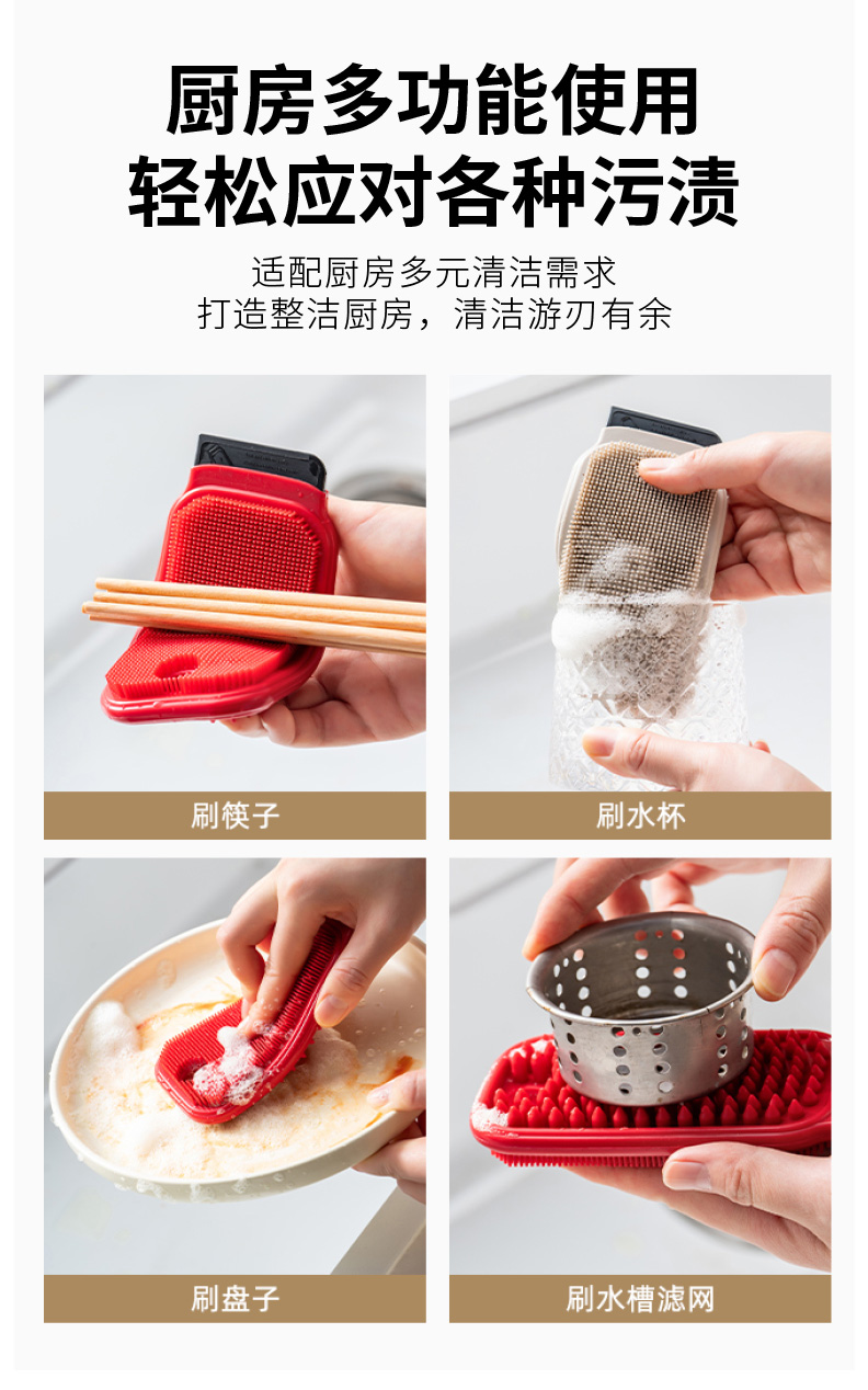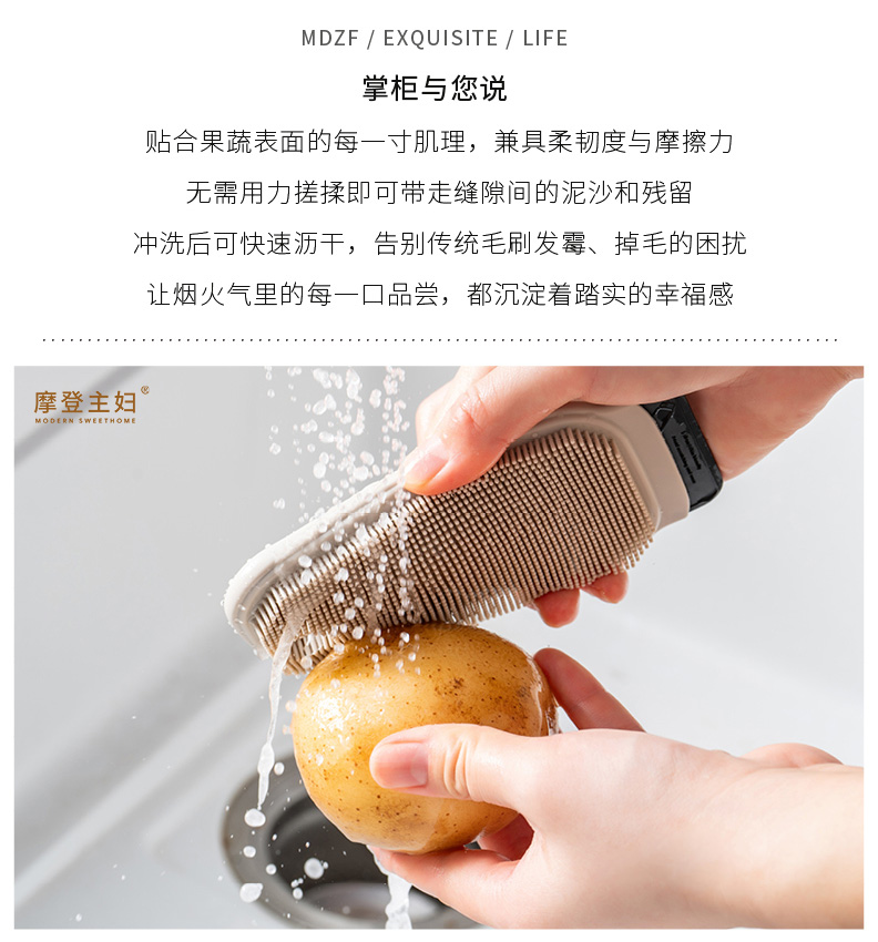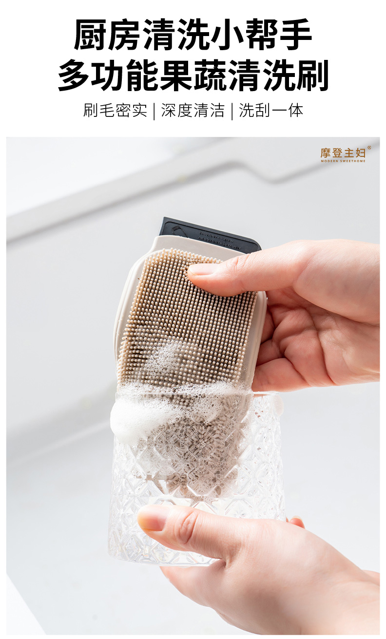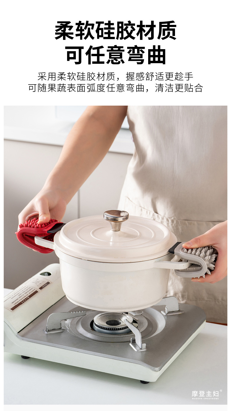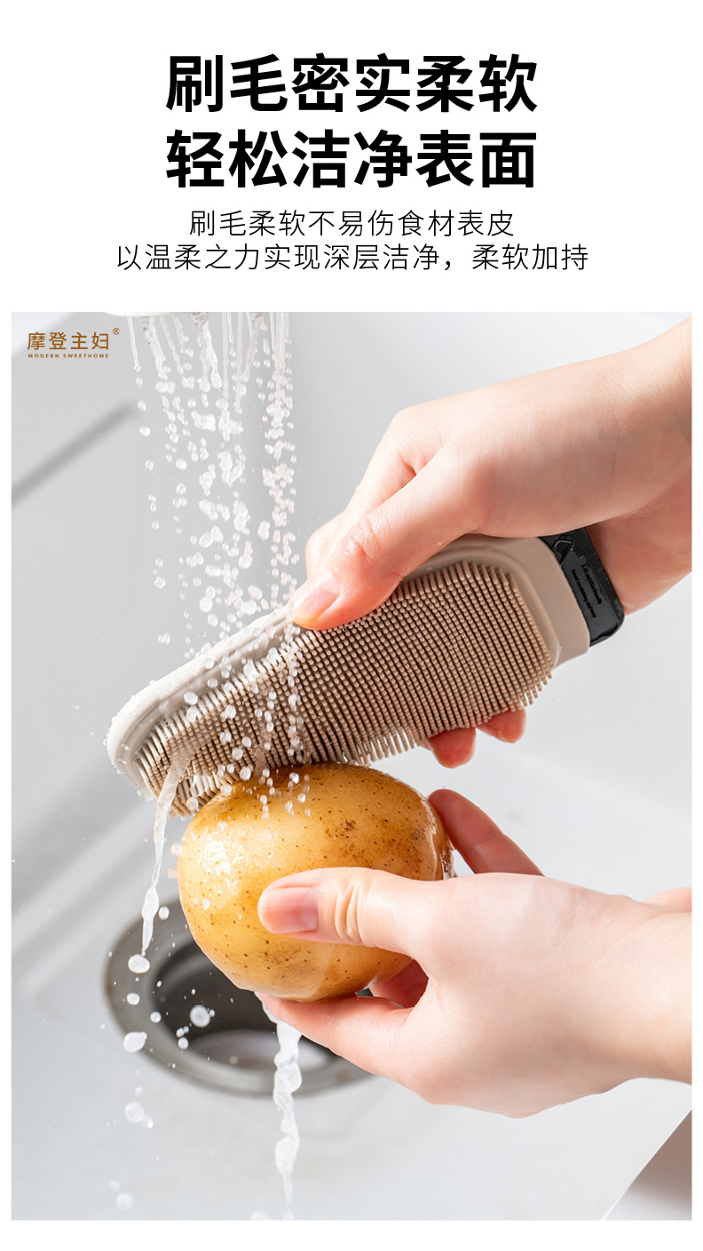 摩登主妇多功能果蔬清洁刷家用土豆清洗神器硅胶缝隙刷子厨房用刷