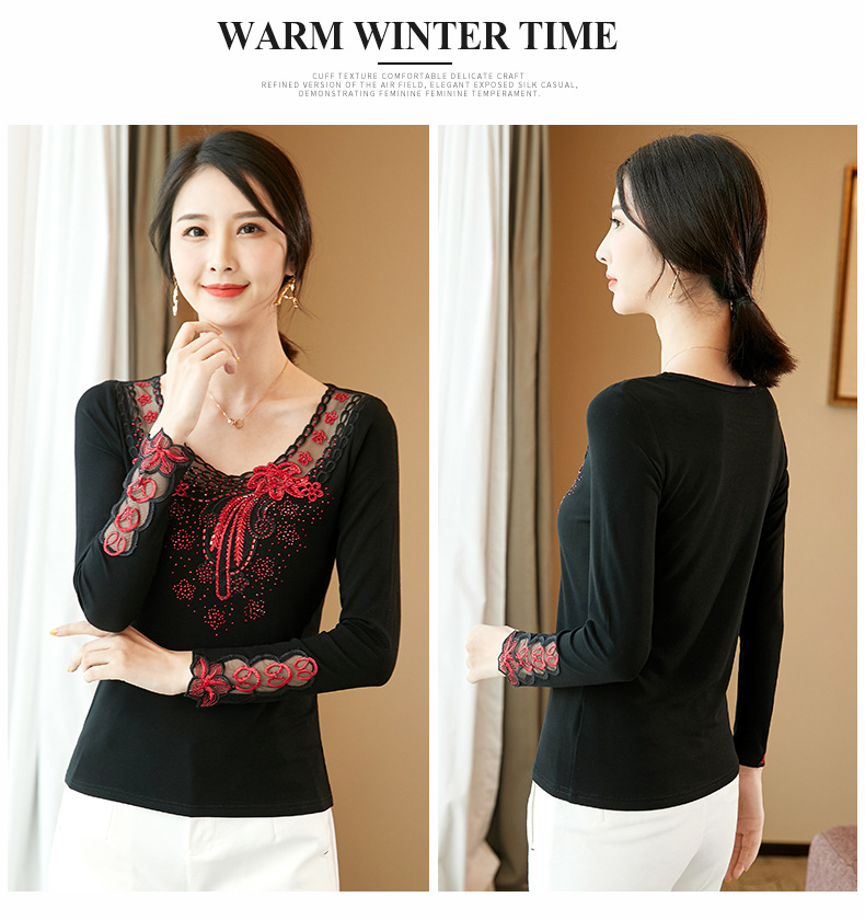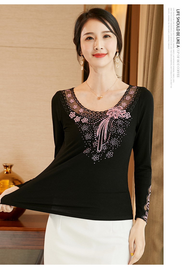 ZZ-LQ93113秋季新款女装时尚绣花长袖棉T恤