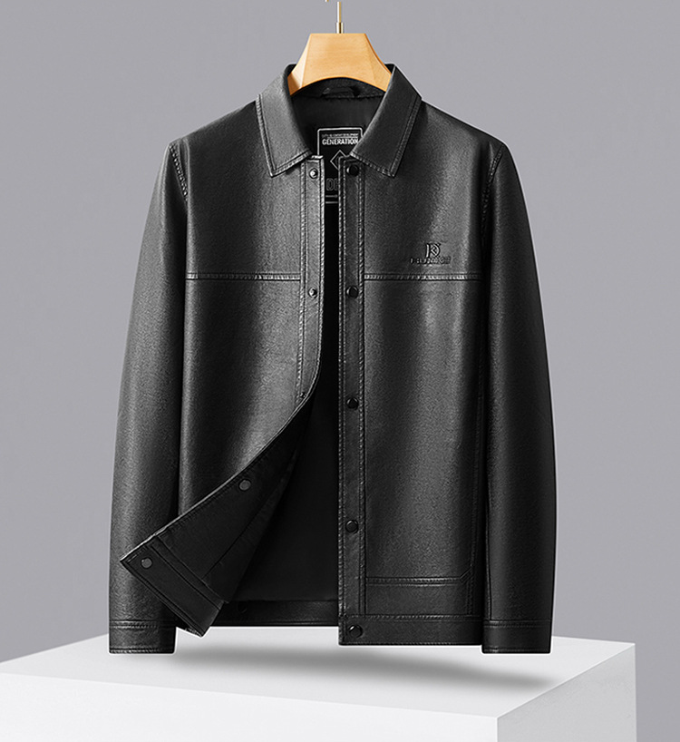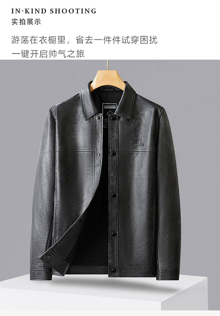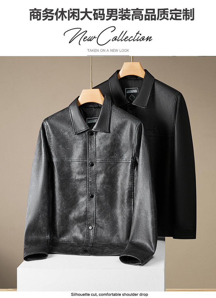 【DWD】大依优型大码皮衣夹克秋季新款男士休闲设计感时尚气质加肥加大码翻领皮夹克男PU皮衣商务