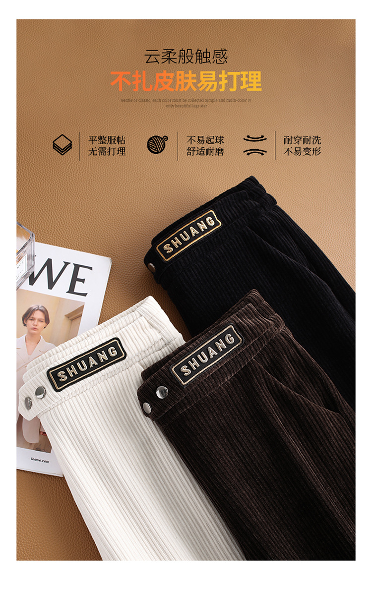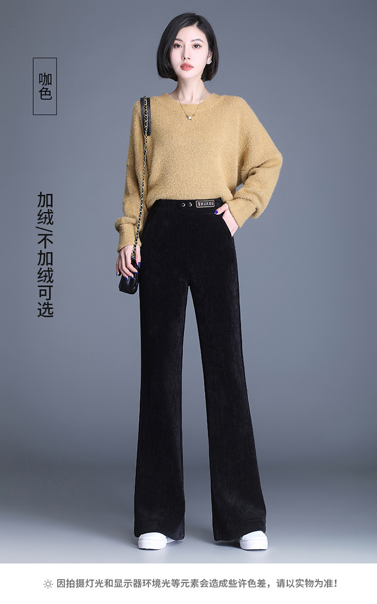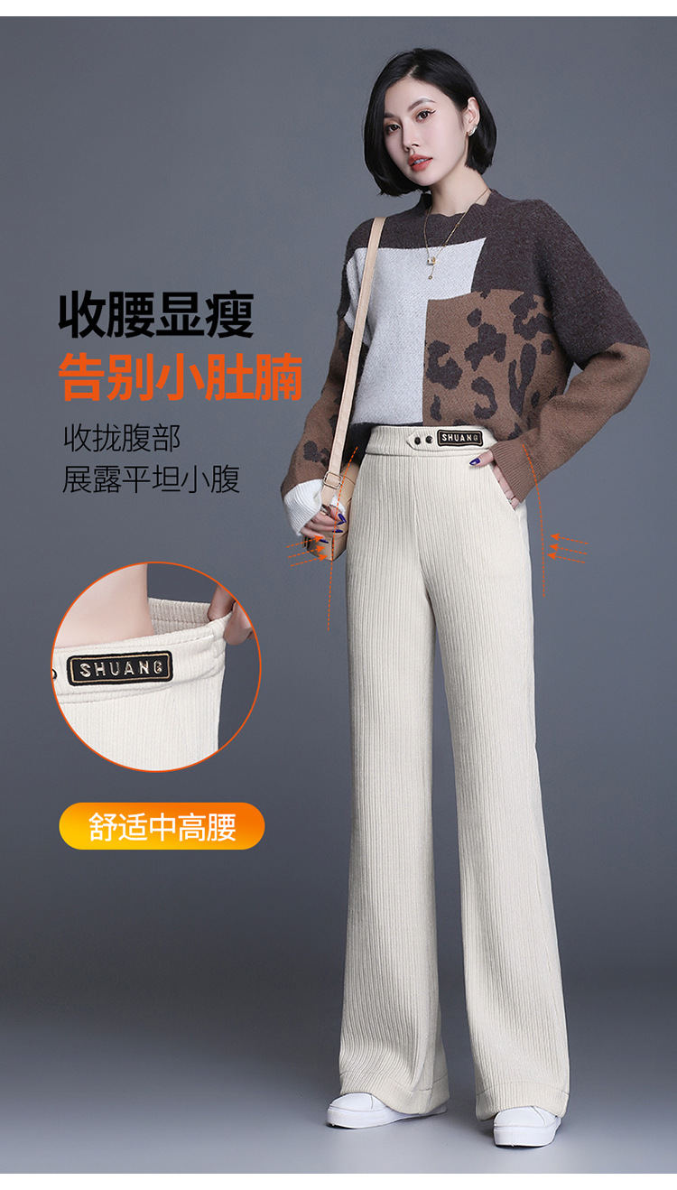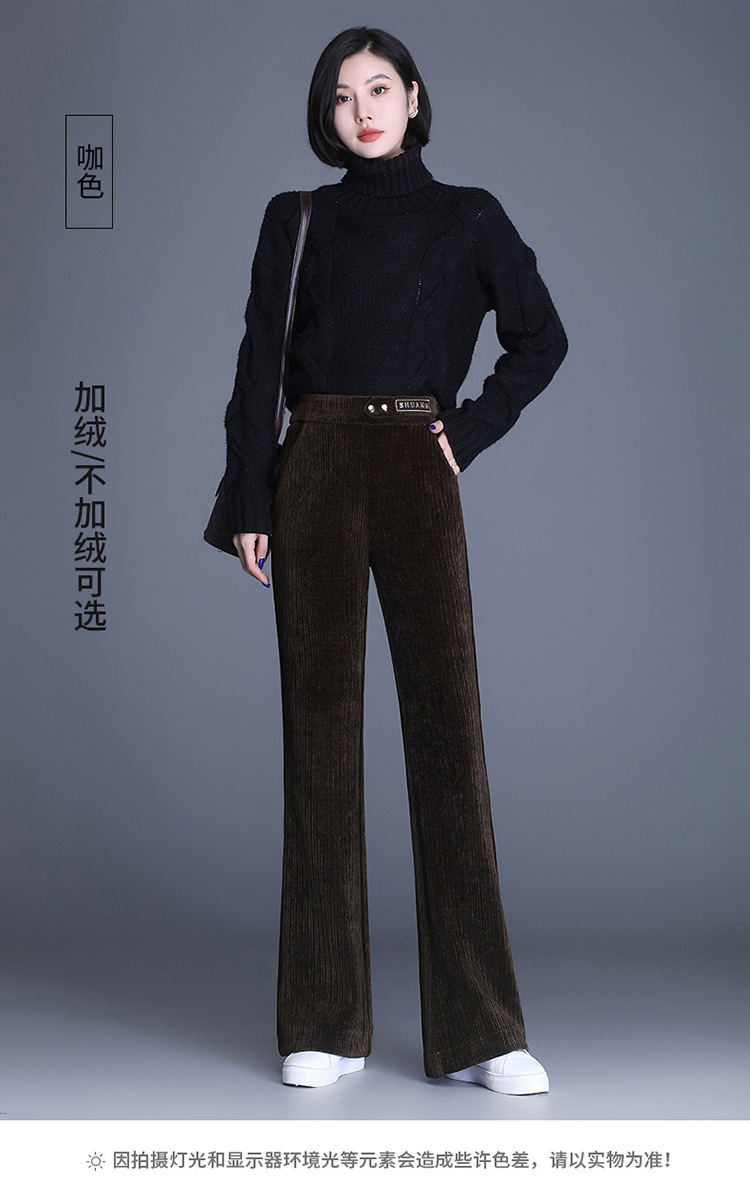 雪尼尔加绒阔腿裤女秋冬2021年新款高腰休闲垂感条绒直筒裤长裤 AL8866