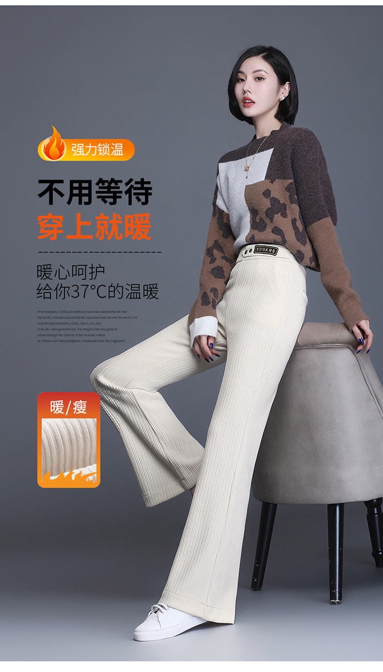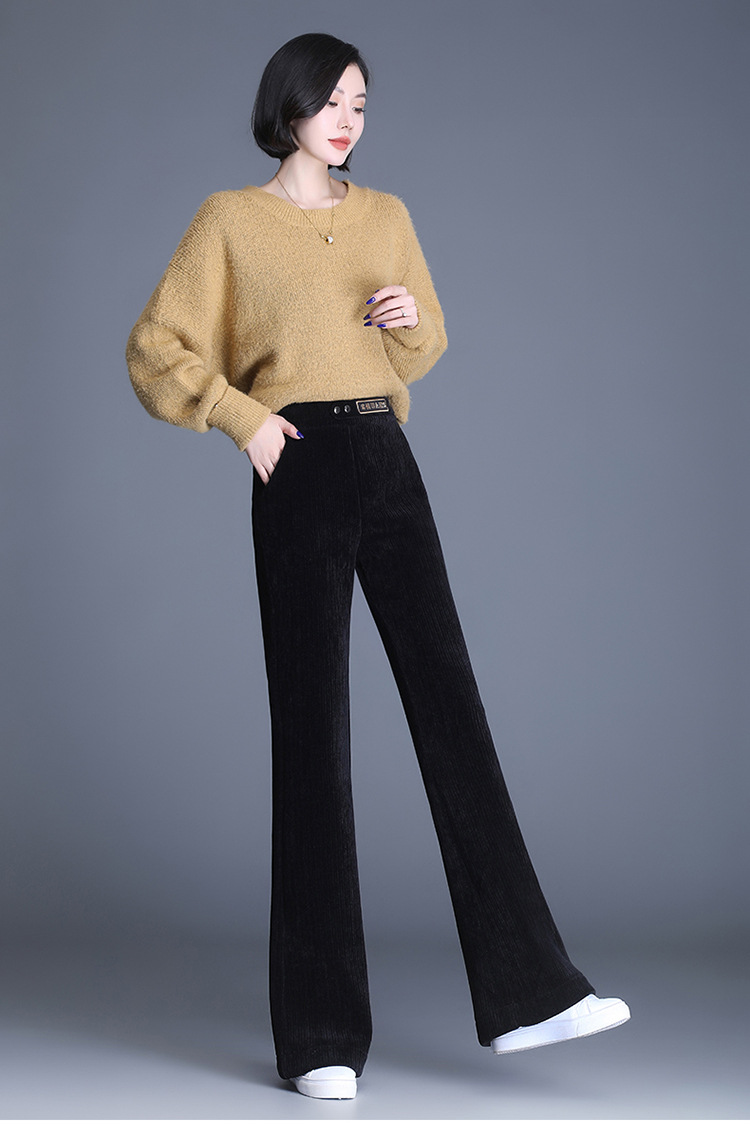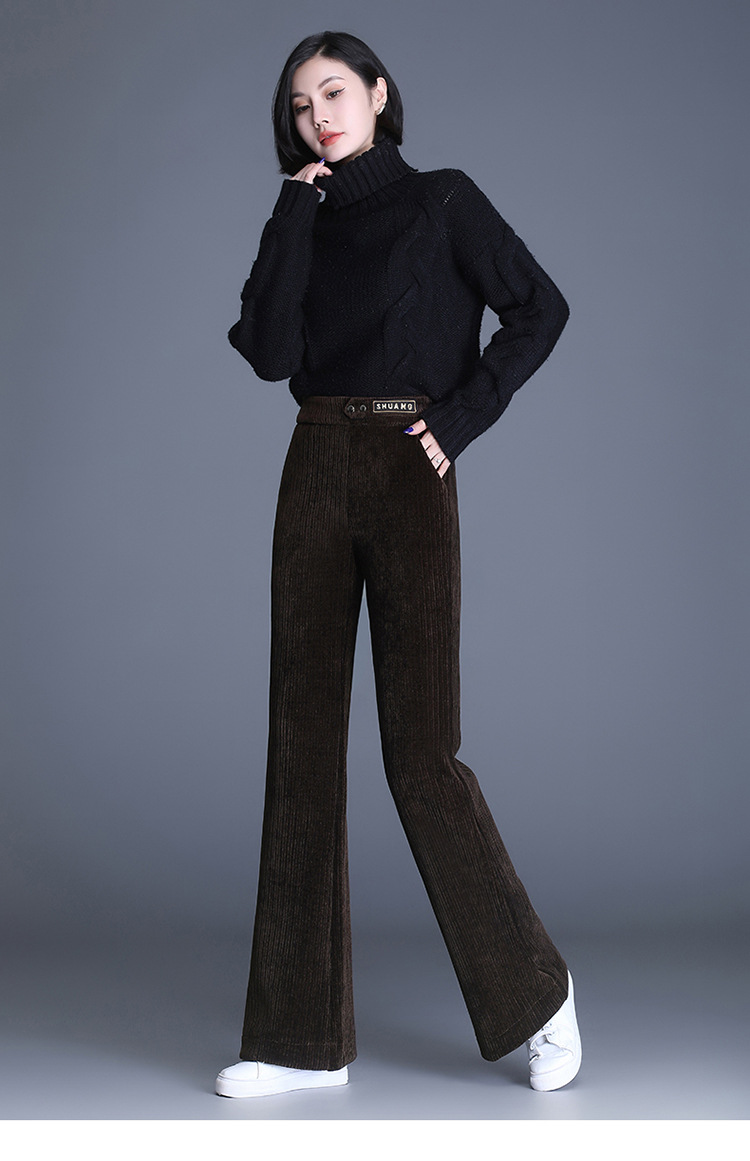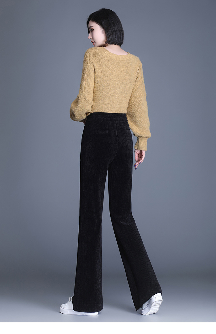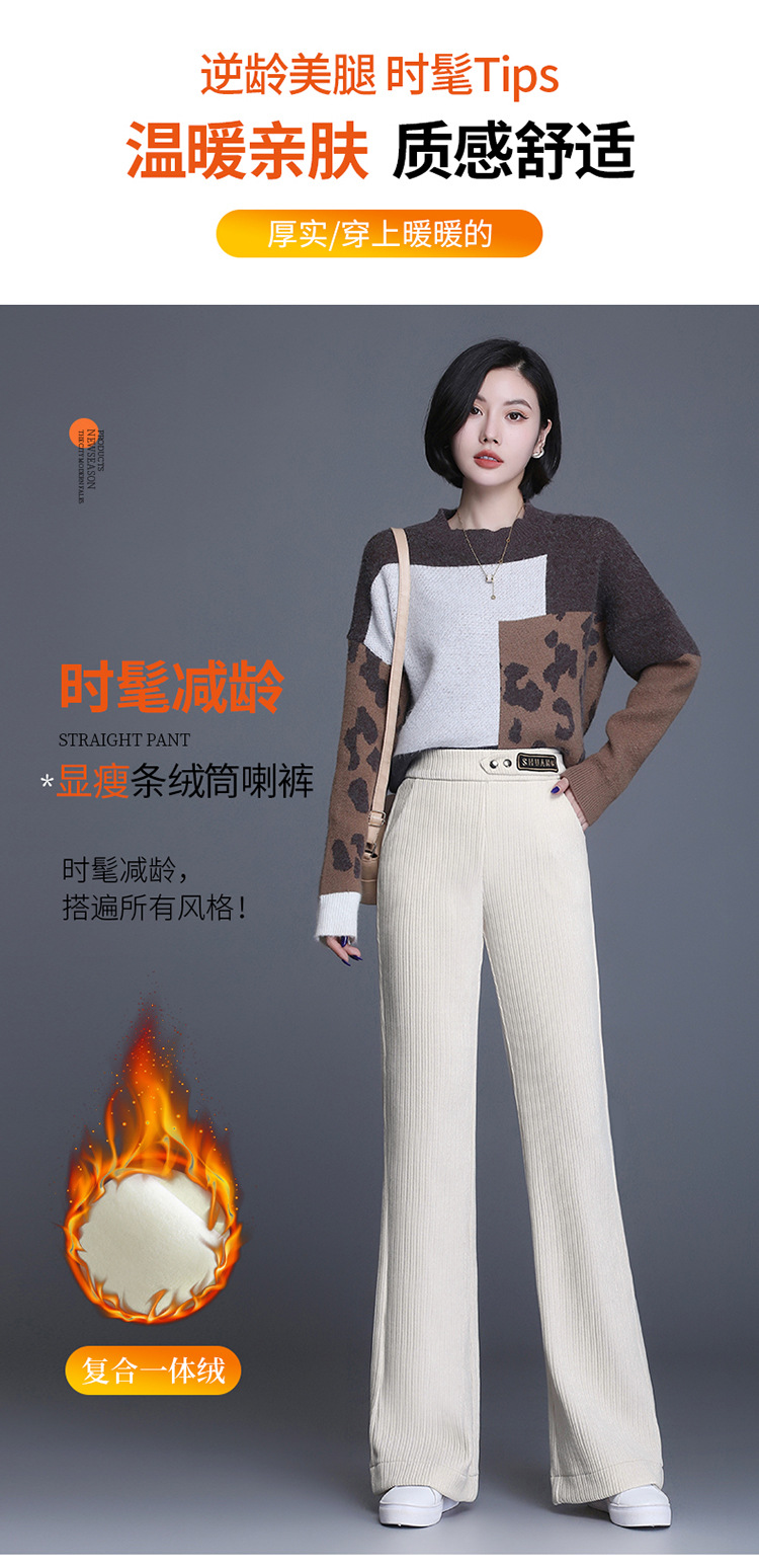 雪尼尔加绒阔腿裤女秋冬2021年新款高腰休闲垂感条绒直筒裤长裤 AL8866