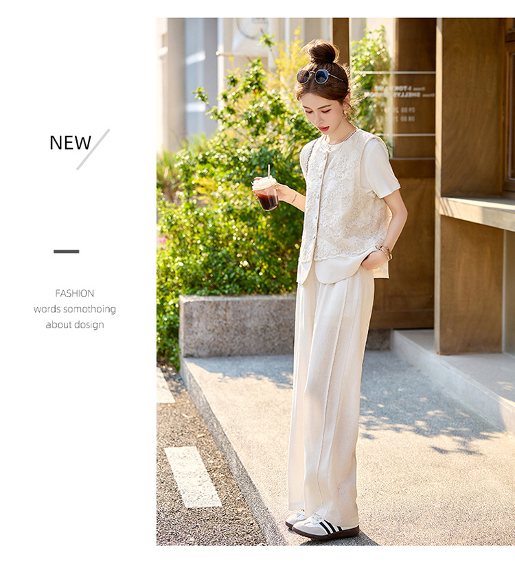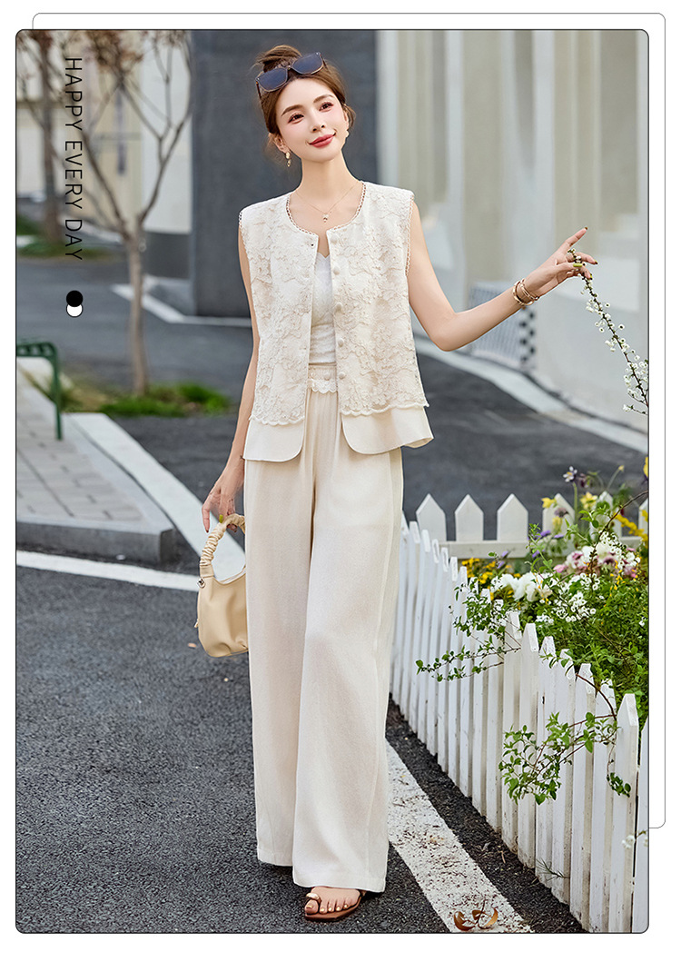 亚麻蕾丝刺绣,马甲+松紧腰休闲裤套装HR-SNX3115