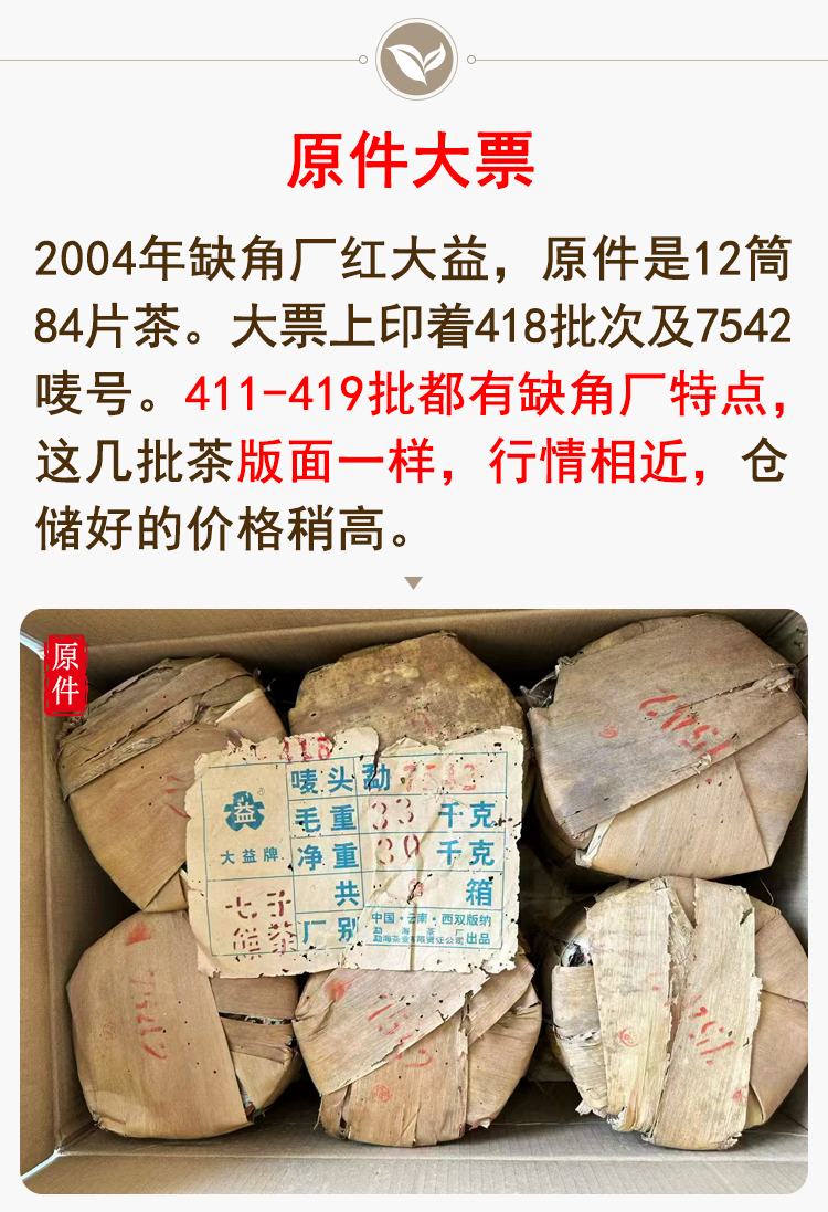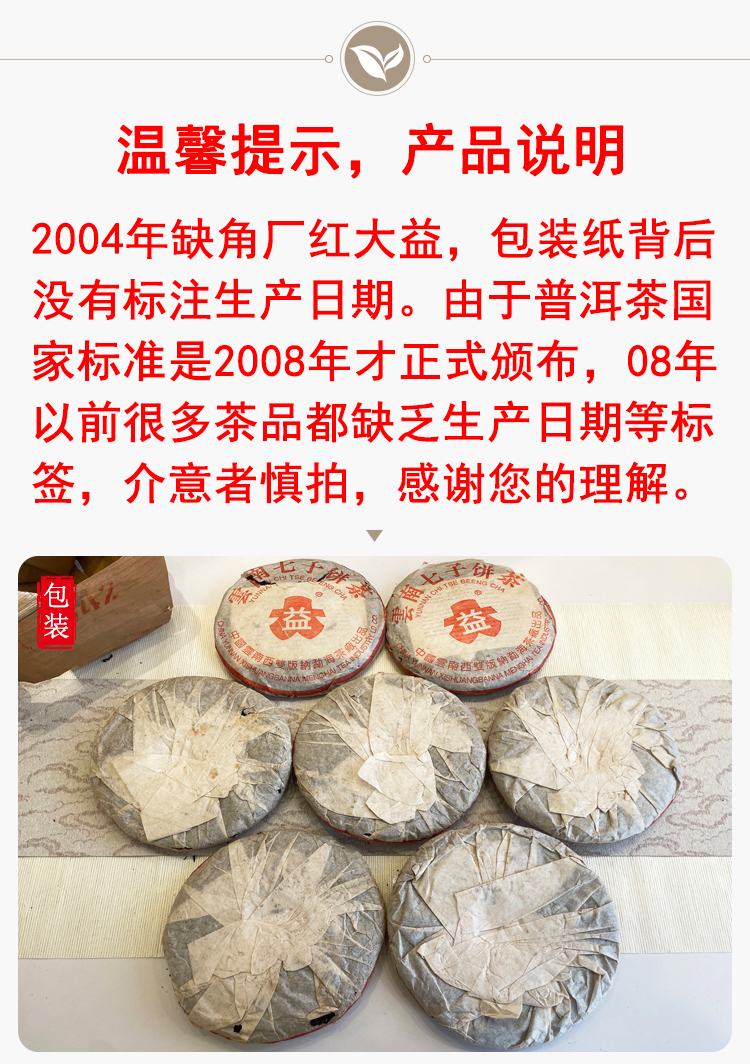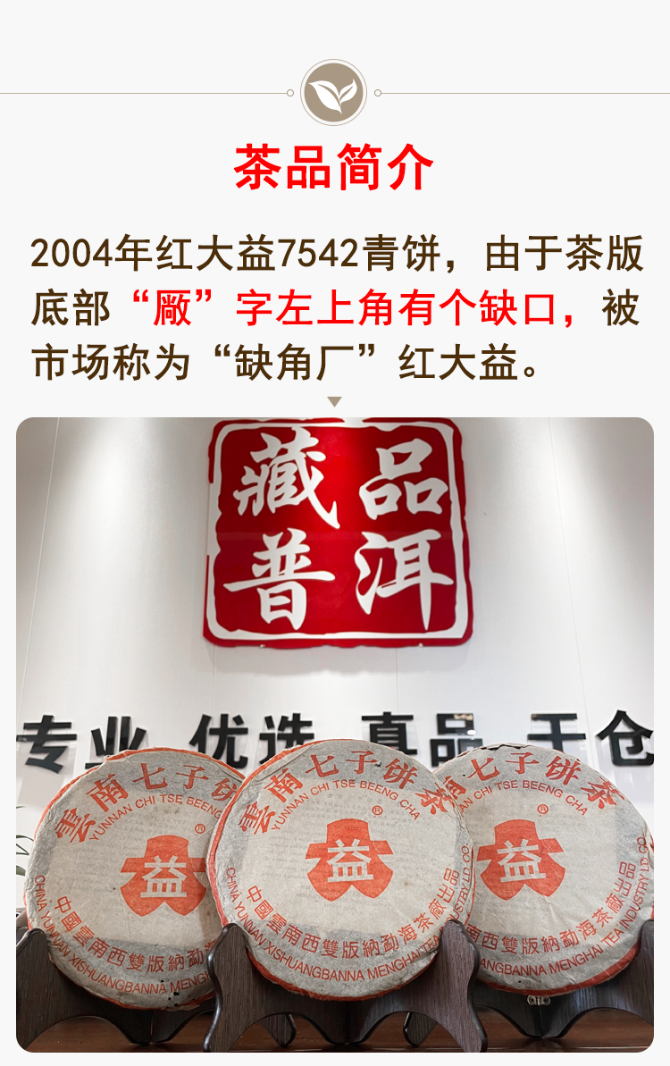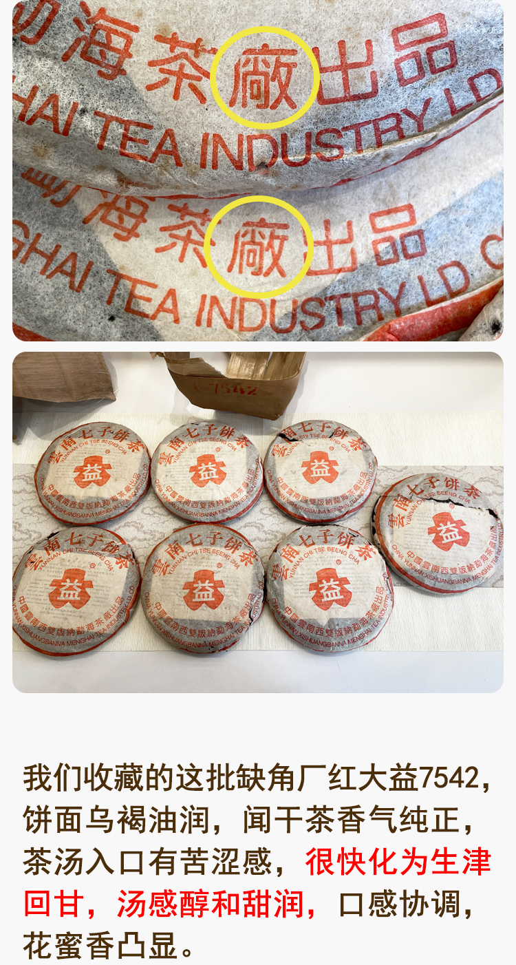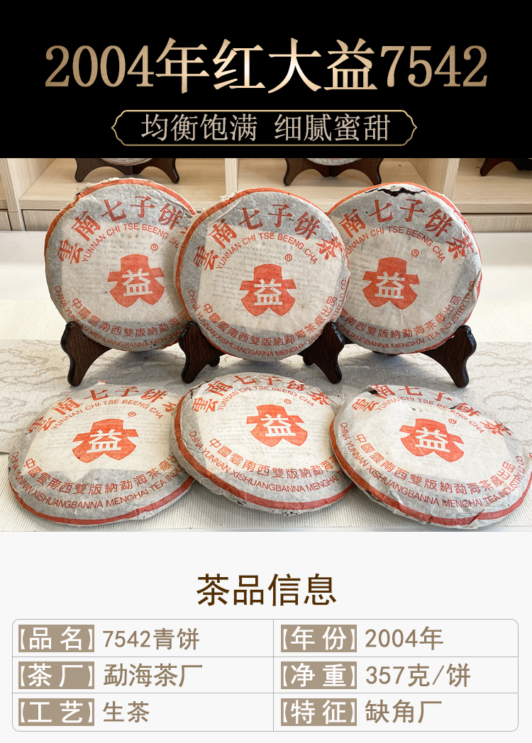 2004年红大益缺厂7542普洱生茶 广东干仓仓储好 勐海茶厂标杆老生茶7542性价比高