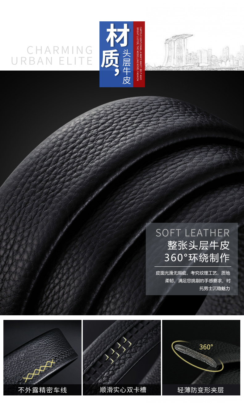 【新款DDA】大依优型大码男士腰带加长自动扣头层牛皮简约休闲胖子裤带皮带1.5米