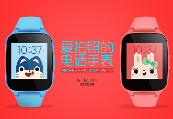 搜狗糖猫儿童电话手表GPS智能定位M1通话美颜拍照通话手环插卡触摸屏