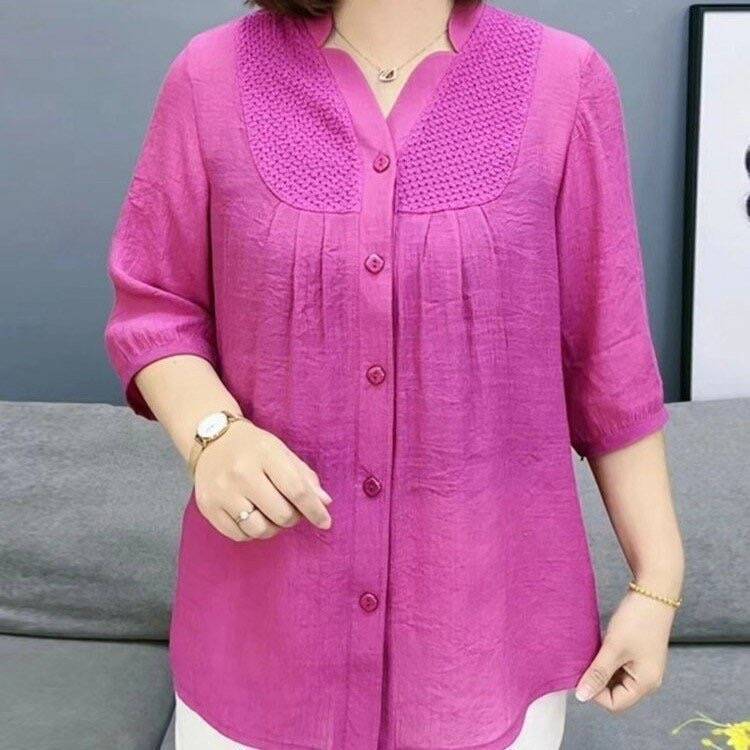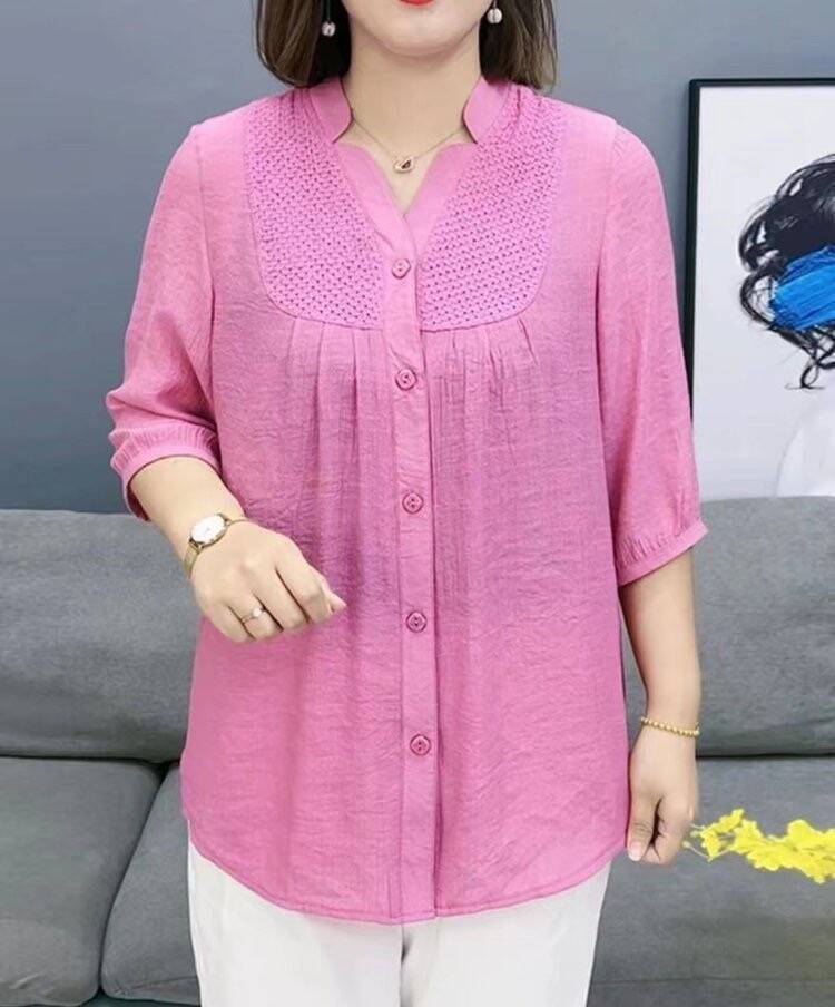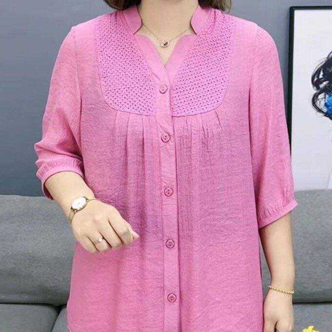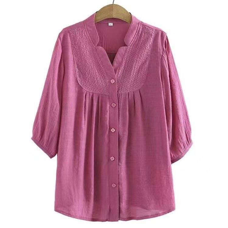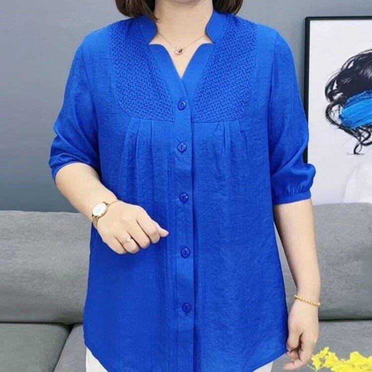 夏季高档女装加肥加大七分袖衬衫洋气胖妈妈显瘦遮肉薄款衬衣小衫