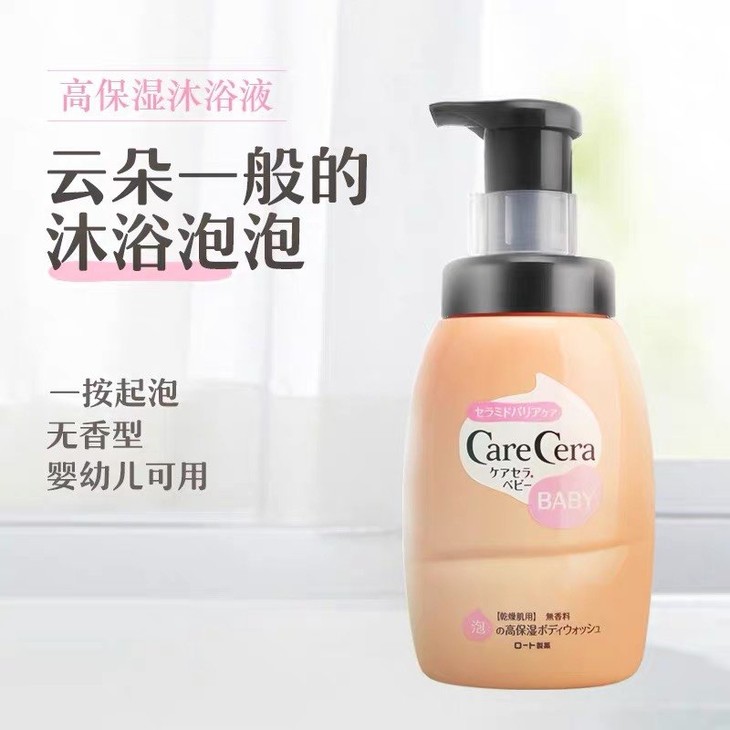 乐敦CARE CERA宝宝高保湿泡泡沐浴露👍乐敦高保湿沐浴露,特别地针对干燥肌肤,洁净肌肤的同时高度保湿💦,持久锁水,用完没有紧绷感。植物提炼🌿,减缓因干燥引起的皮肤瘙痒,调理幼嫩肌肤。按压式的设计,挤一点就拥有超级绵密的泡沫啦☁。而且是亲和肌肤的弱酸性,无香型非常温和,👶宝宝和敏感肌也能安心用,超大容量,非常适合全家人一起用哟~。