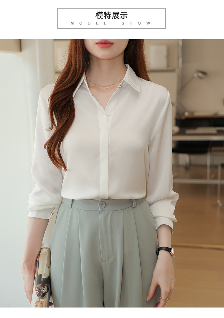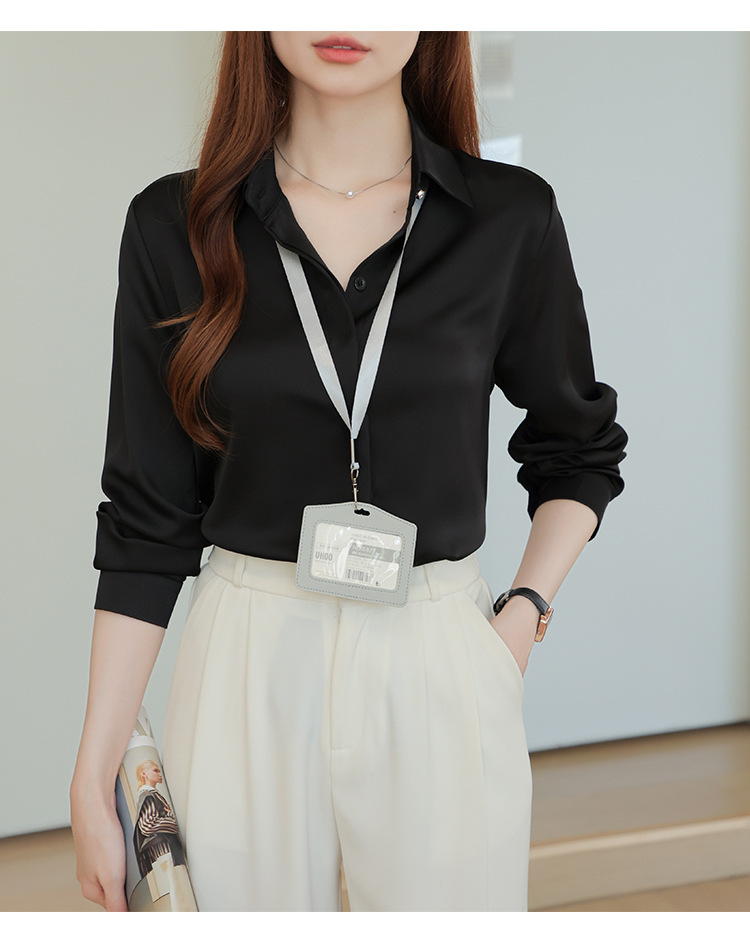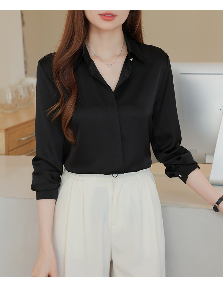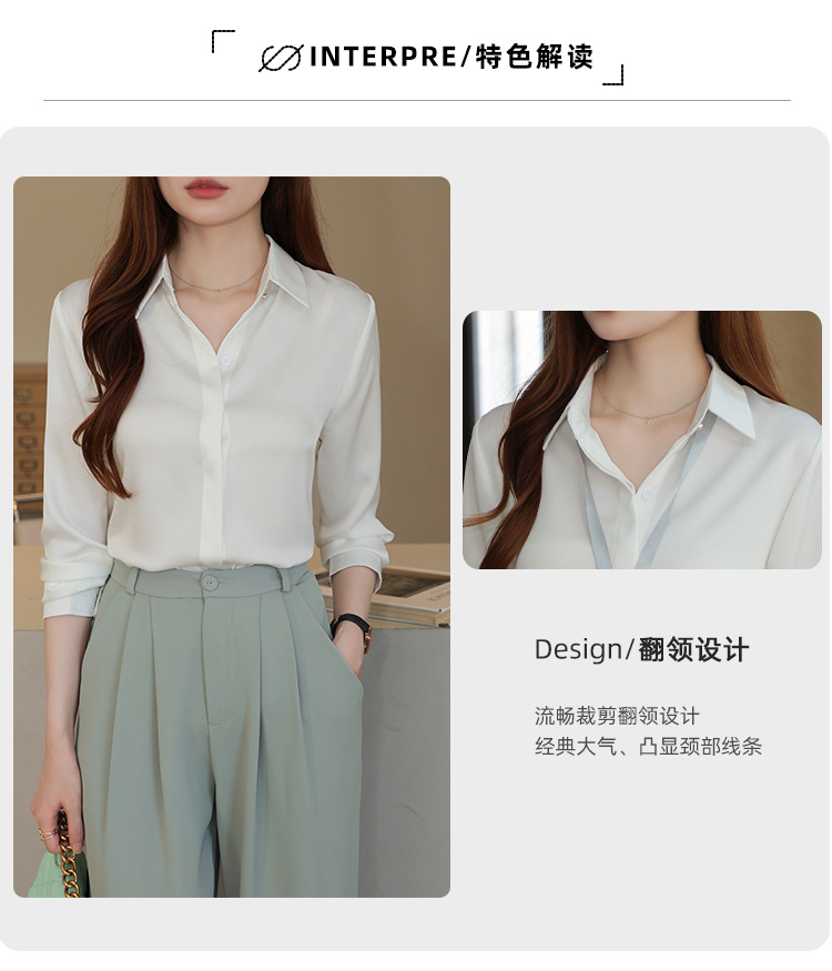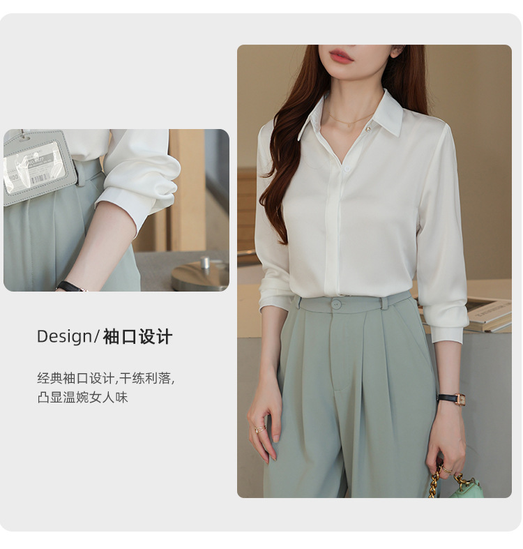 KQL2025新率性简约高级感白色缎面衬衫女职业面试衬衣设计感小众上衣