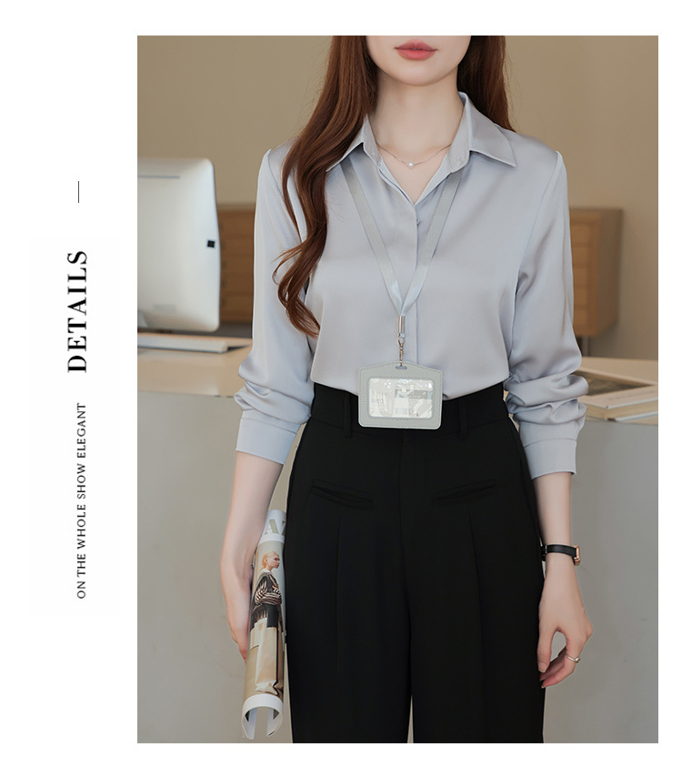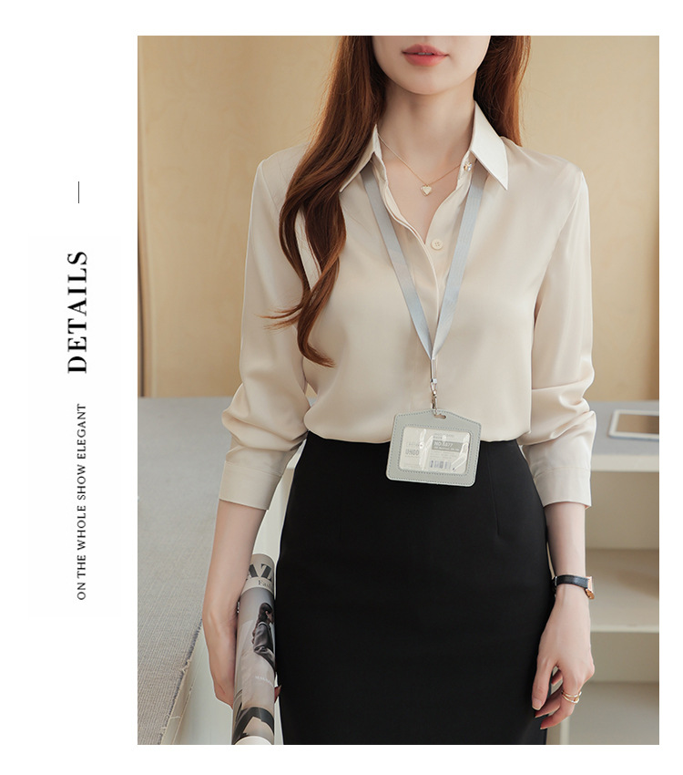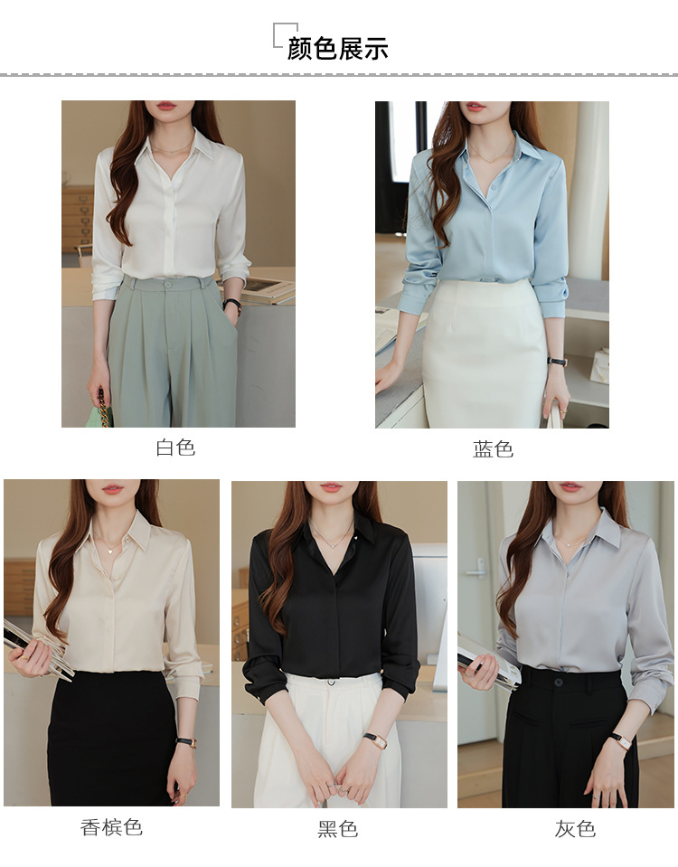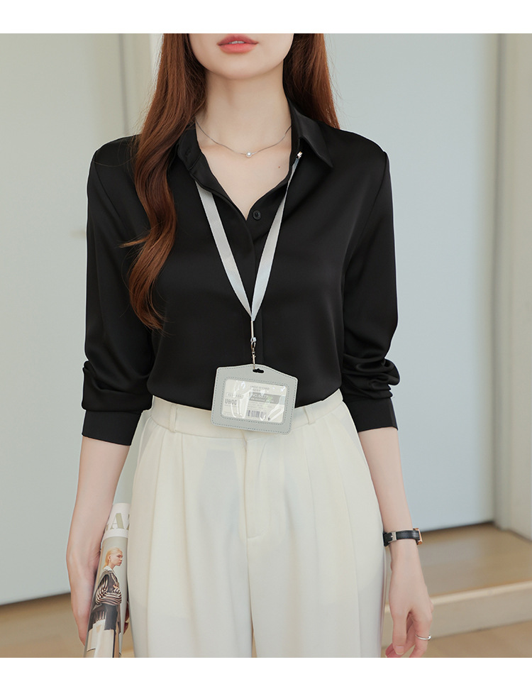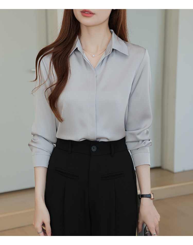 KQL2025新率性简约高级感白色缎面衬衫女职业面试衬衣设计感小众上衣