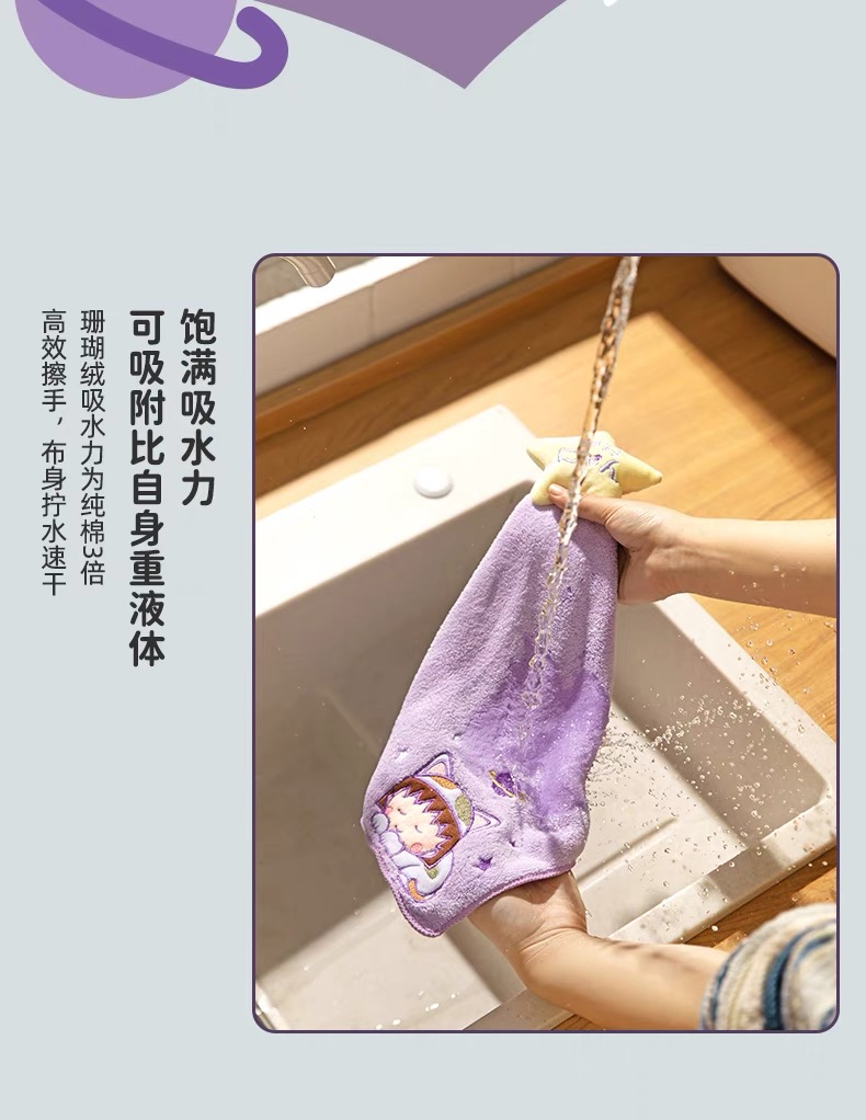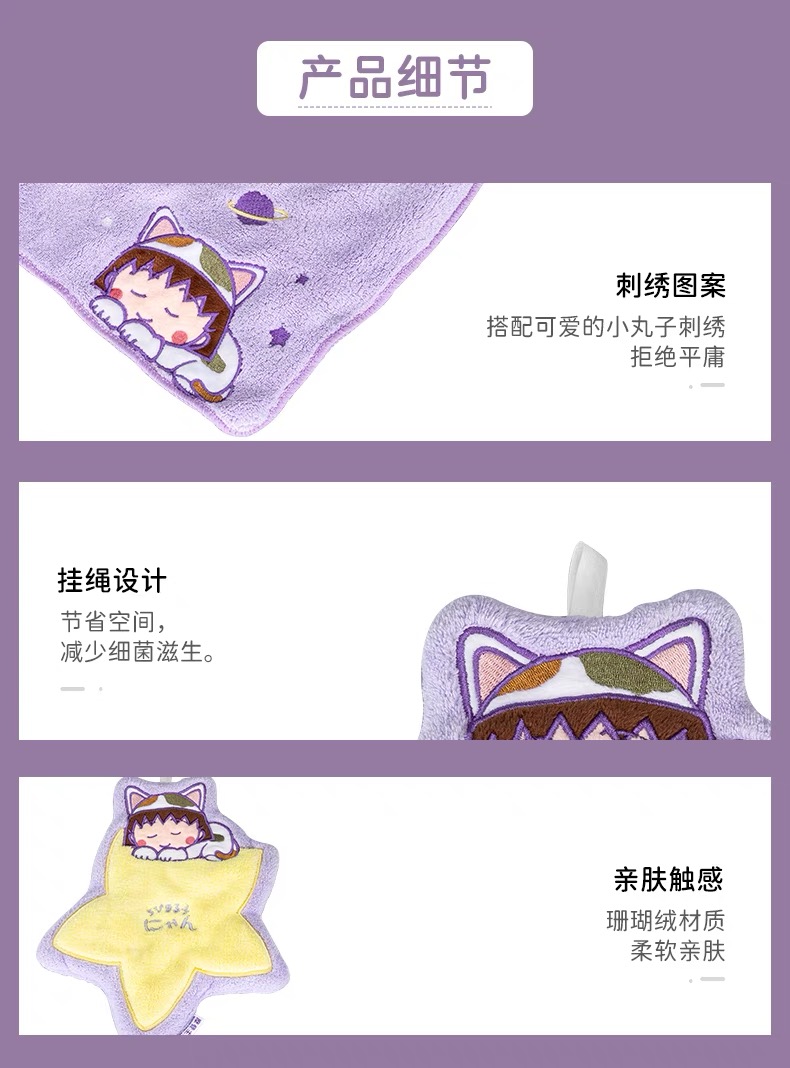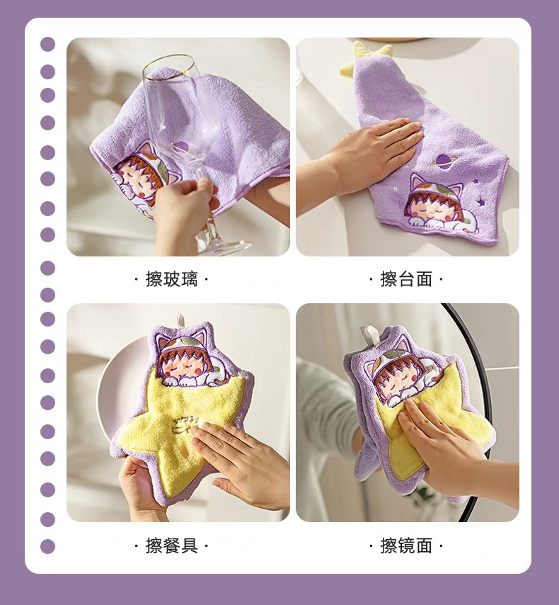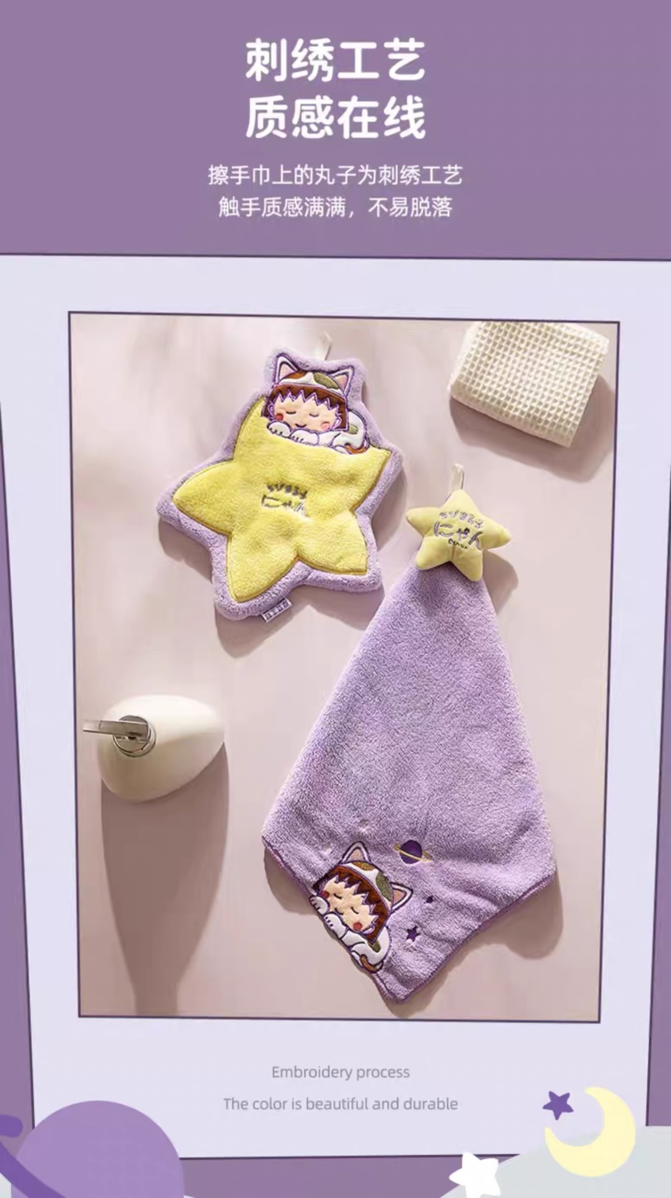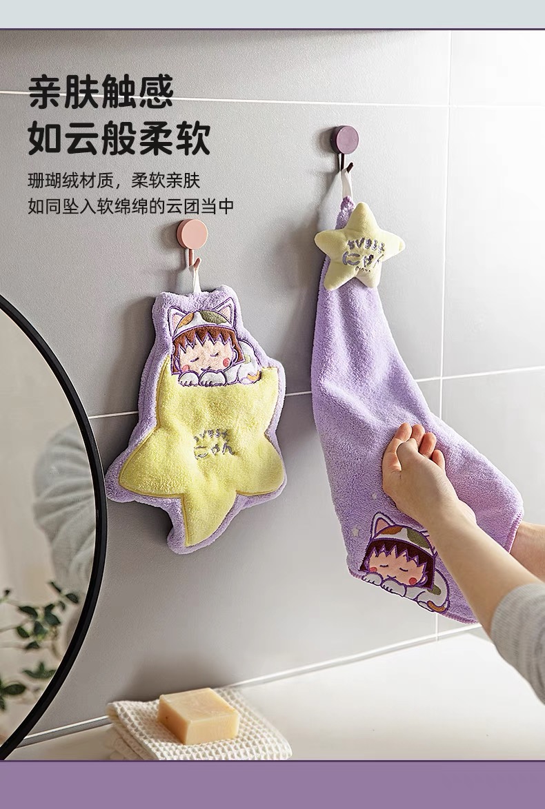 好久没上擦手巾了,挑选了一款可可爱爱的樱桃小丸子精致刺绣挂式擦手巾。
