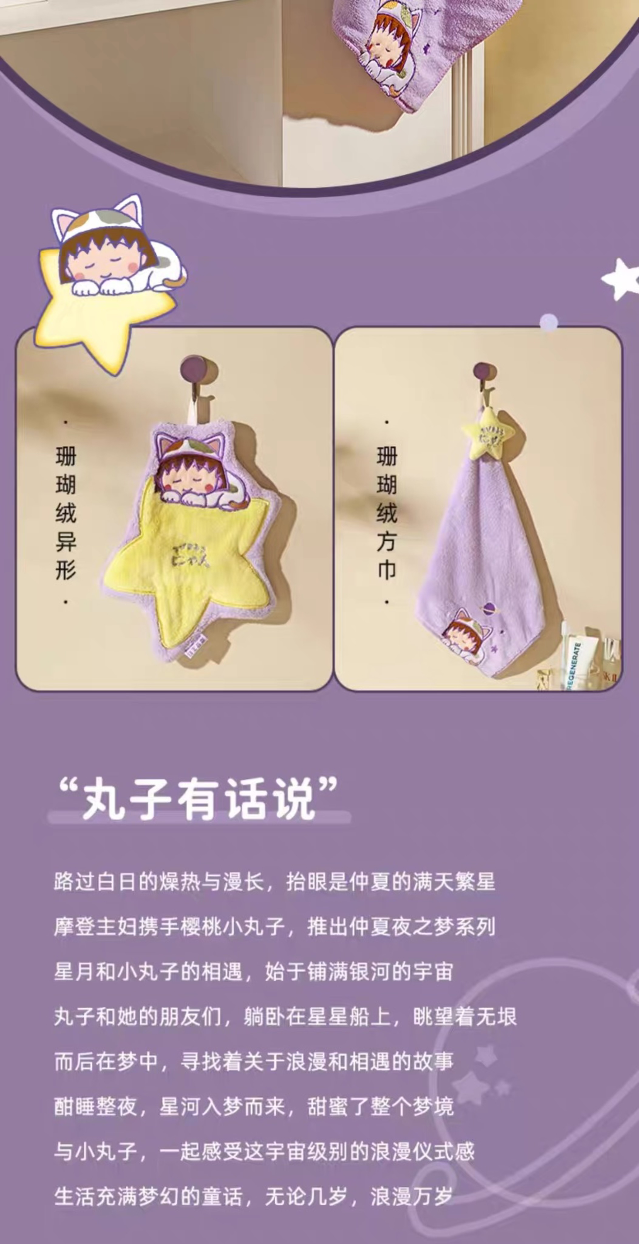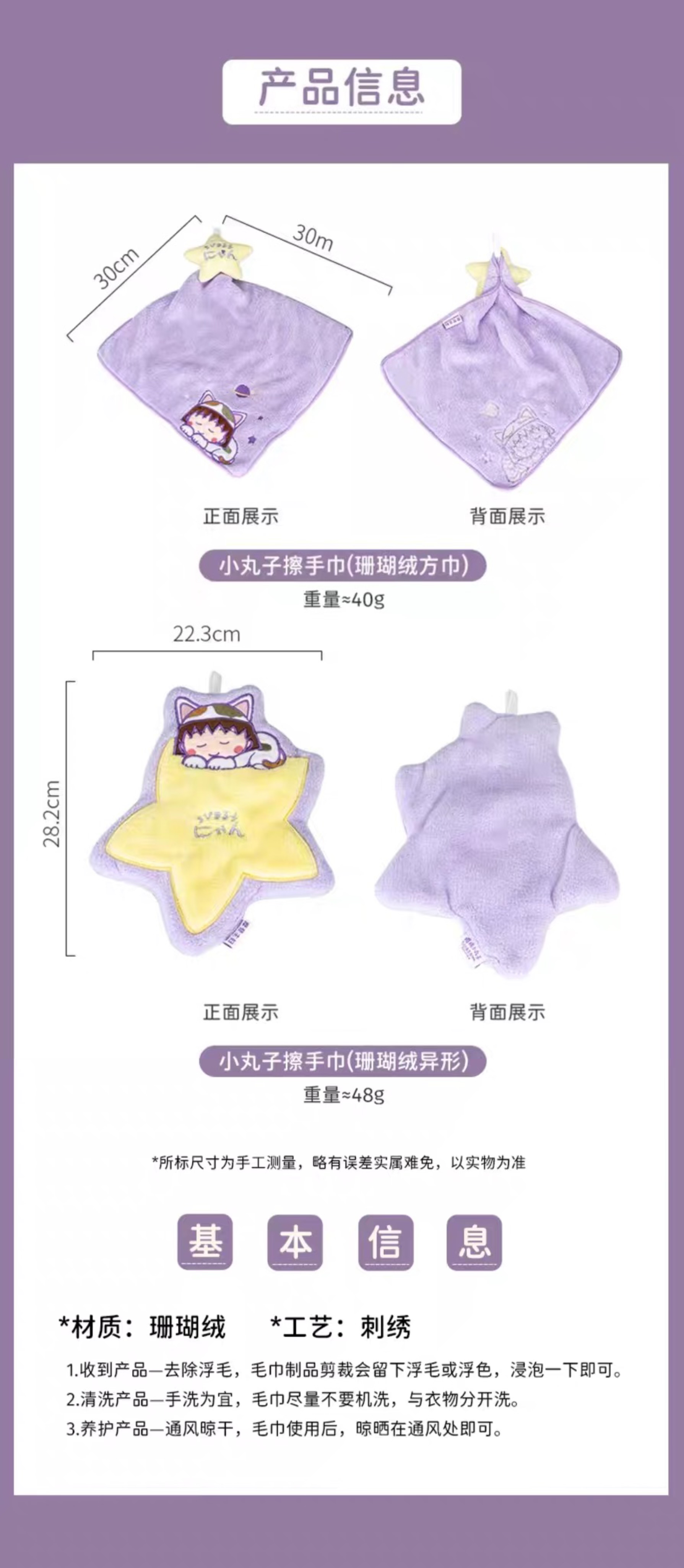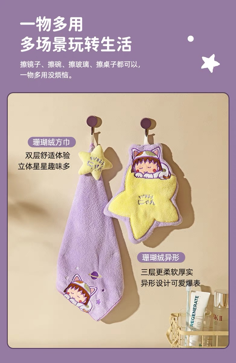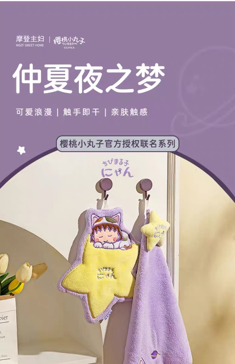 好久没上擦手巾了,挑选了一款可可爱爱的樱桃小丸子精致刺绣挂式擦手巾。