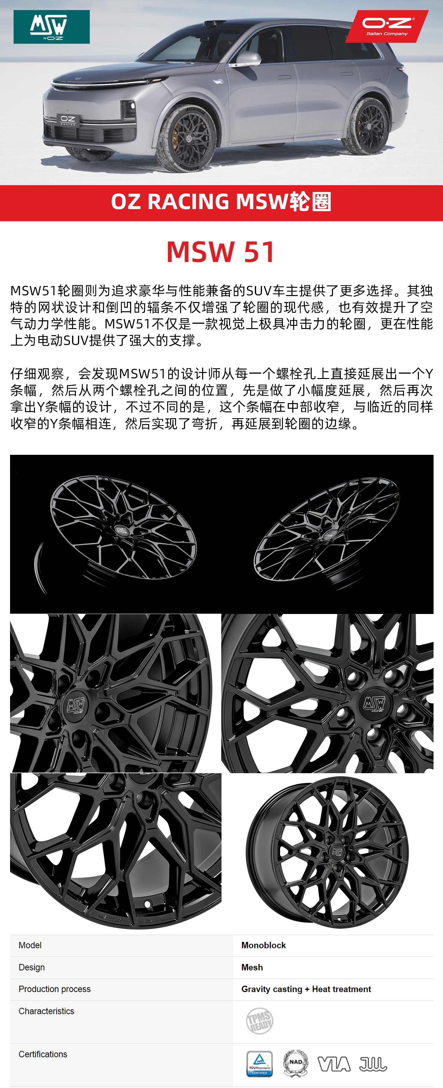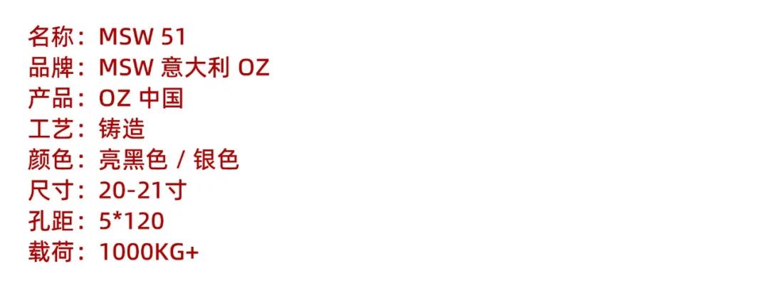 MSW 51 进口轮圈 20/21寸 5*120 OZ子品牌 进口品牌 新能源 理想L9/蔚来ET5T