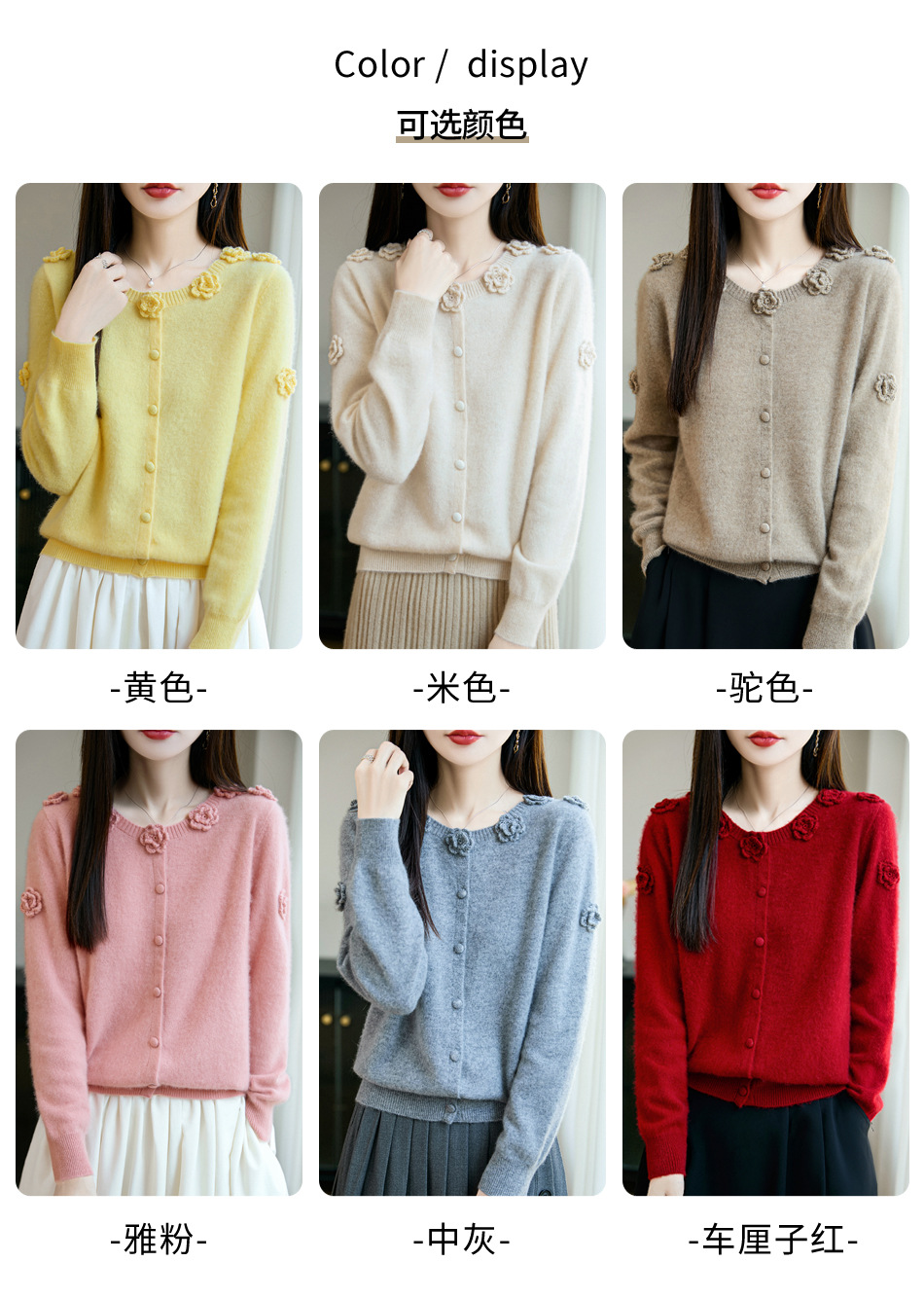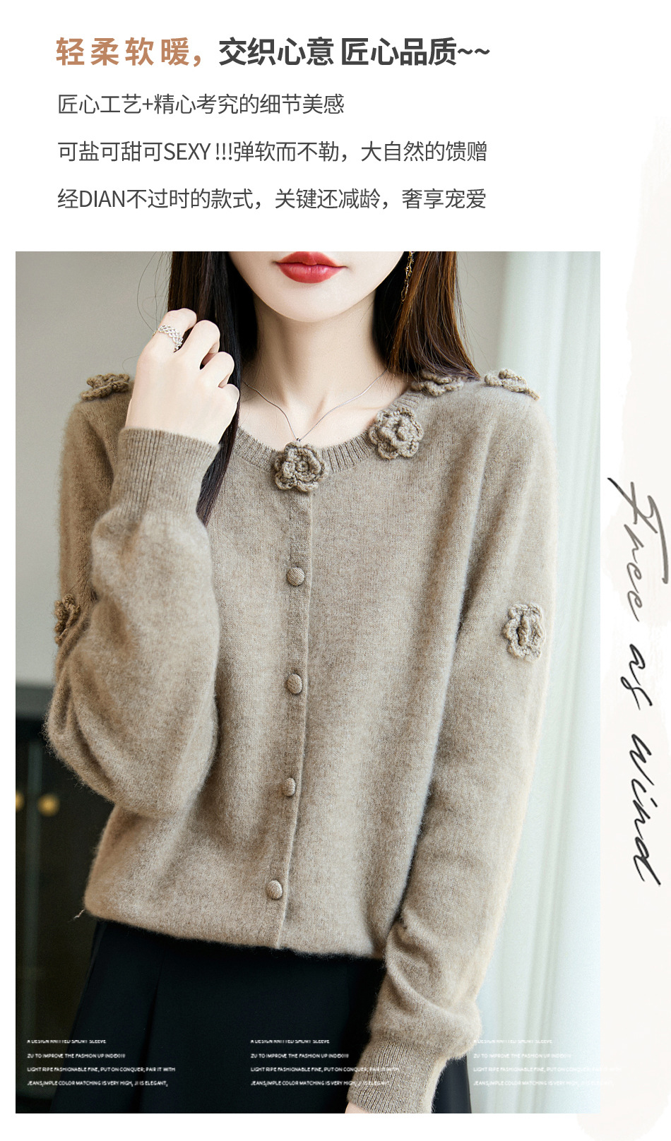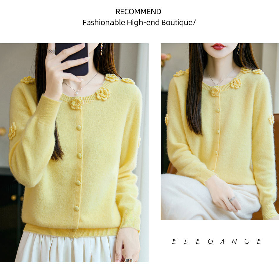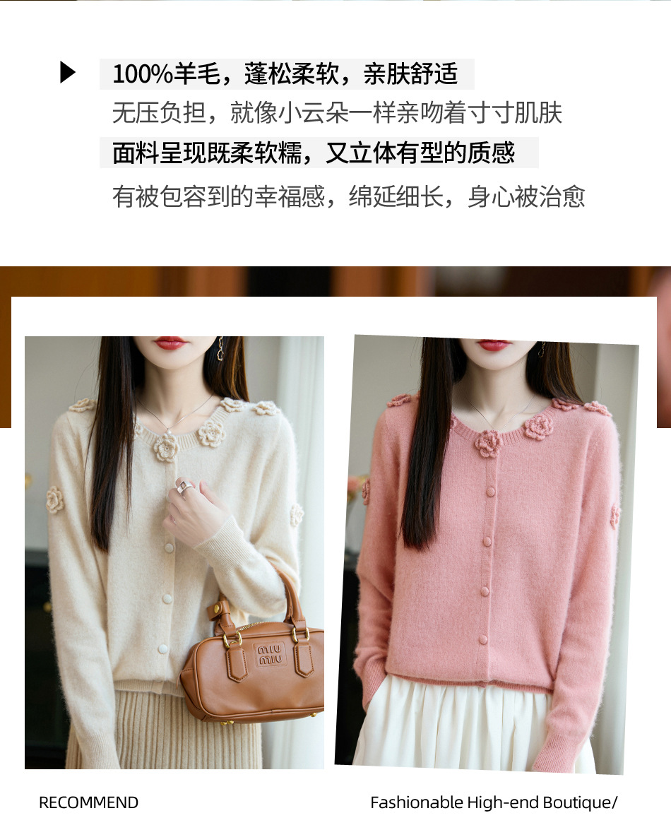 丁摩 100%纯羊毛重磅刺绣钩花开衫R-256