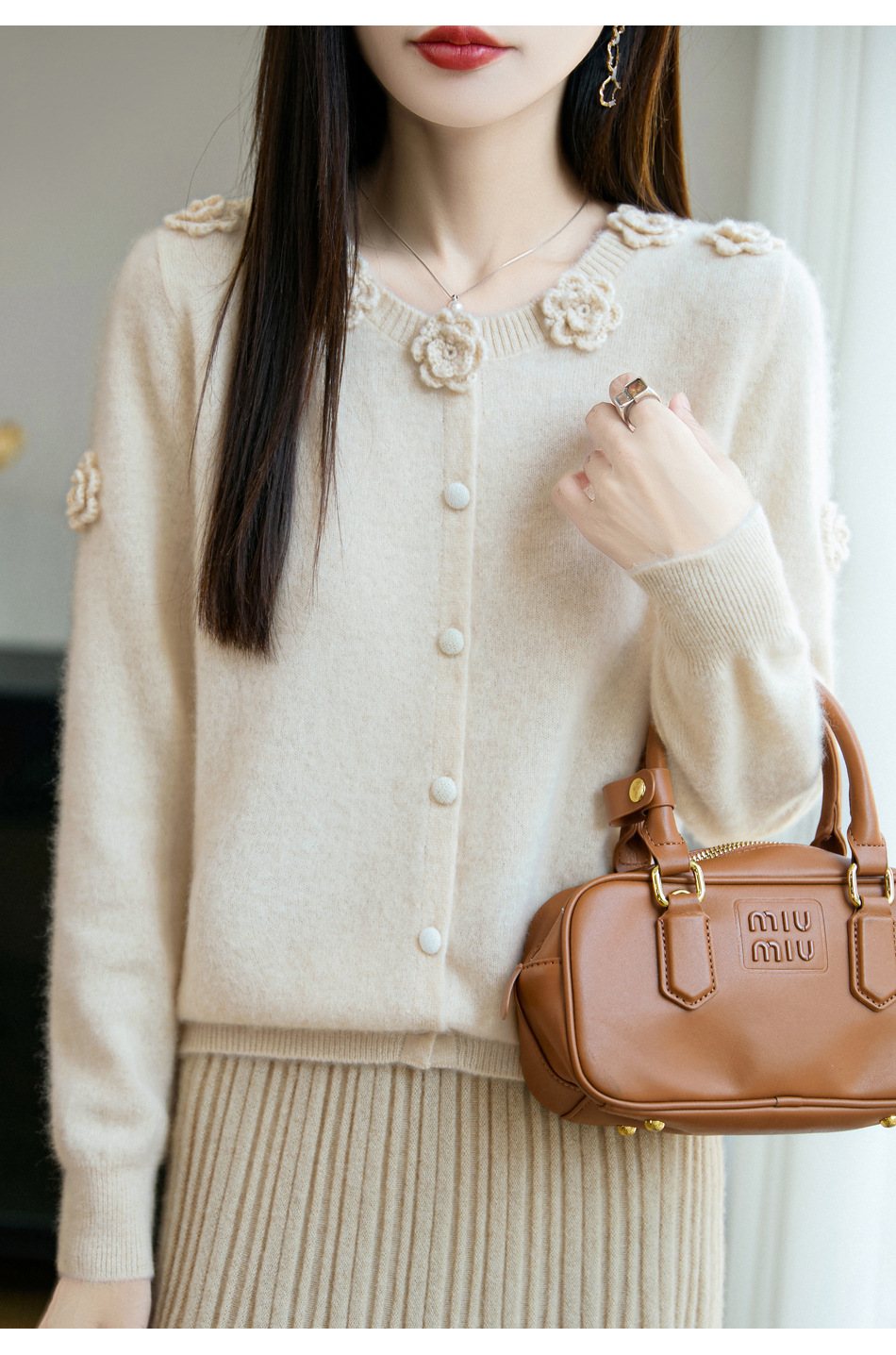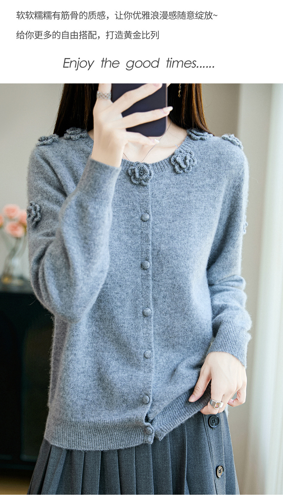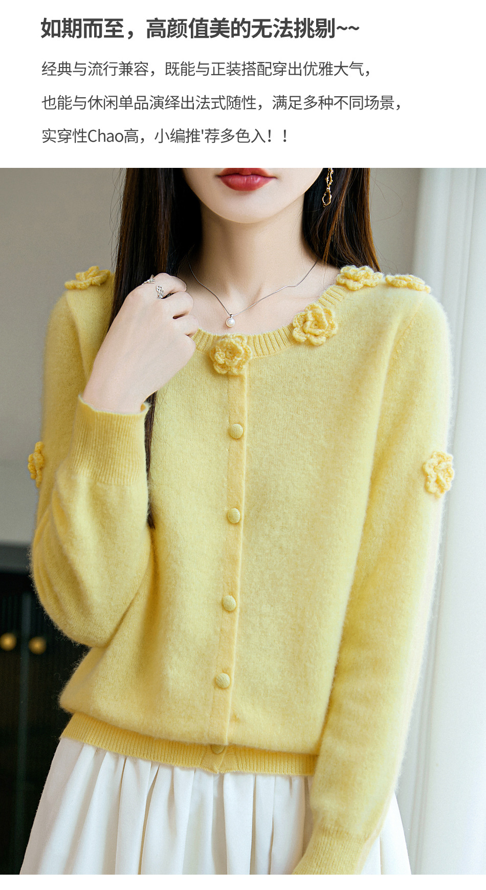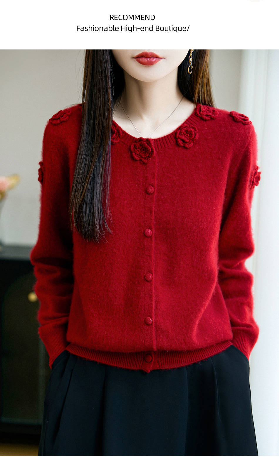 丁摩 100%纯羊毛重磅刺绣钩花开衫R-256