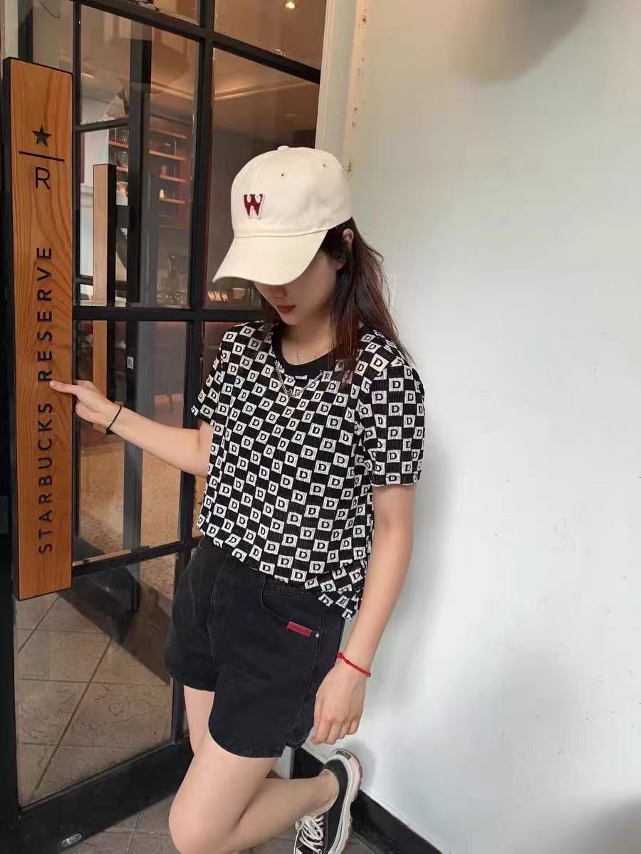 清仓价2025~(微瑕)D字母顺滑短款短袖T恤-喜出