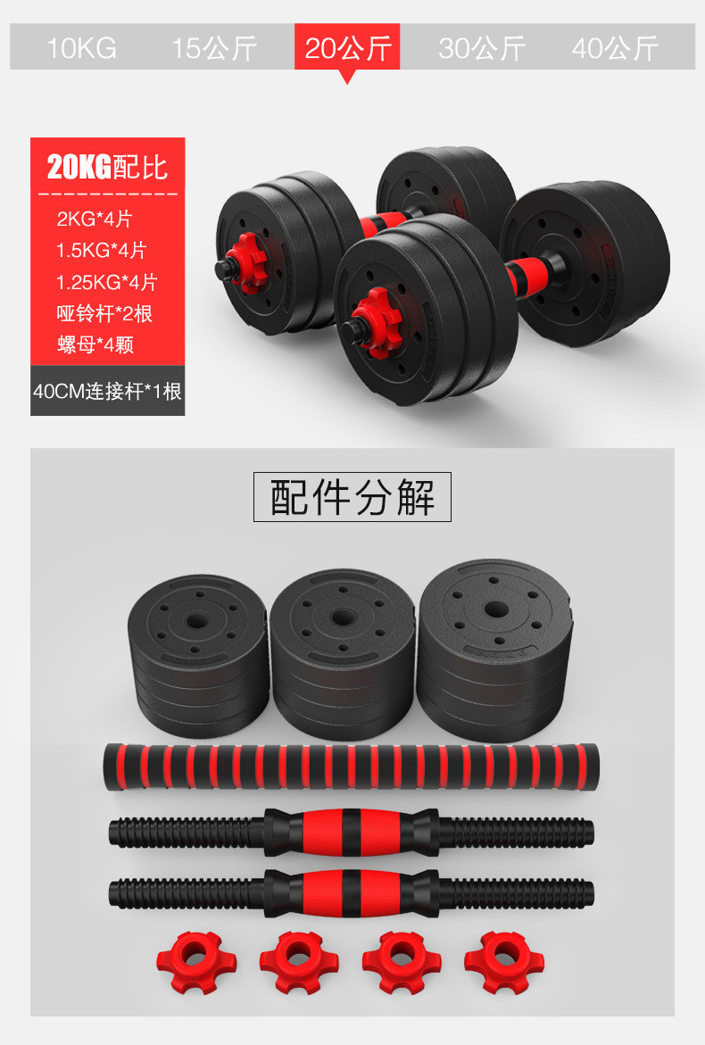 星罗男士哑铃健身家用哑铃锻炼器材可调节哑铃男20/30公斤一对