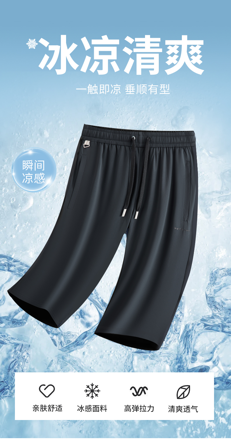 【速干】【DWN】大依优型大码休闲七分短裤冰丝中裤大号裤子弹力透气加肥加大夏季松紧腰宽松运动