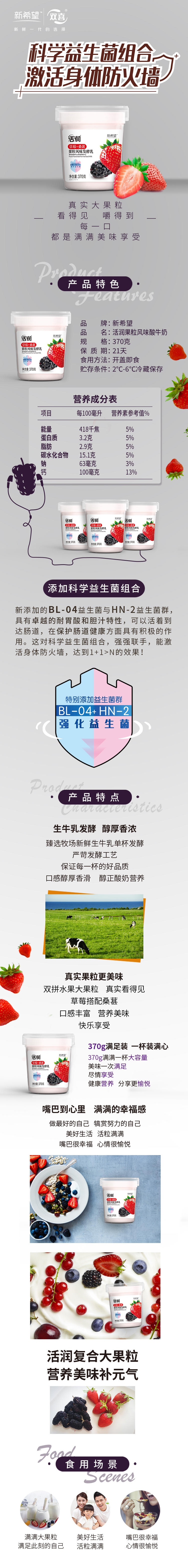 新希望塑杯活润草莓桑葚果粒风味酸牛奶370g(苏州大市范围可取货)