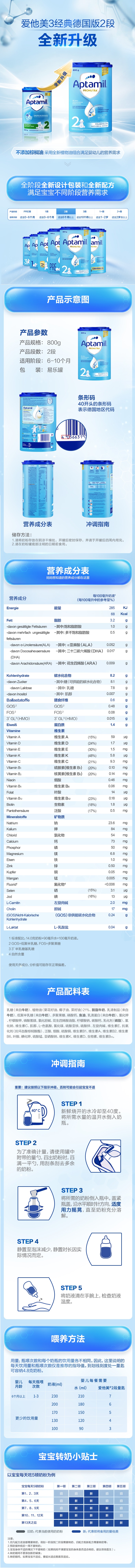 【包邮含税2段】 德国爱他美Aptamil经典版2段(6-10月)800g