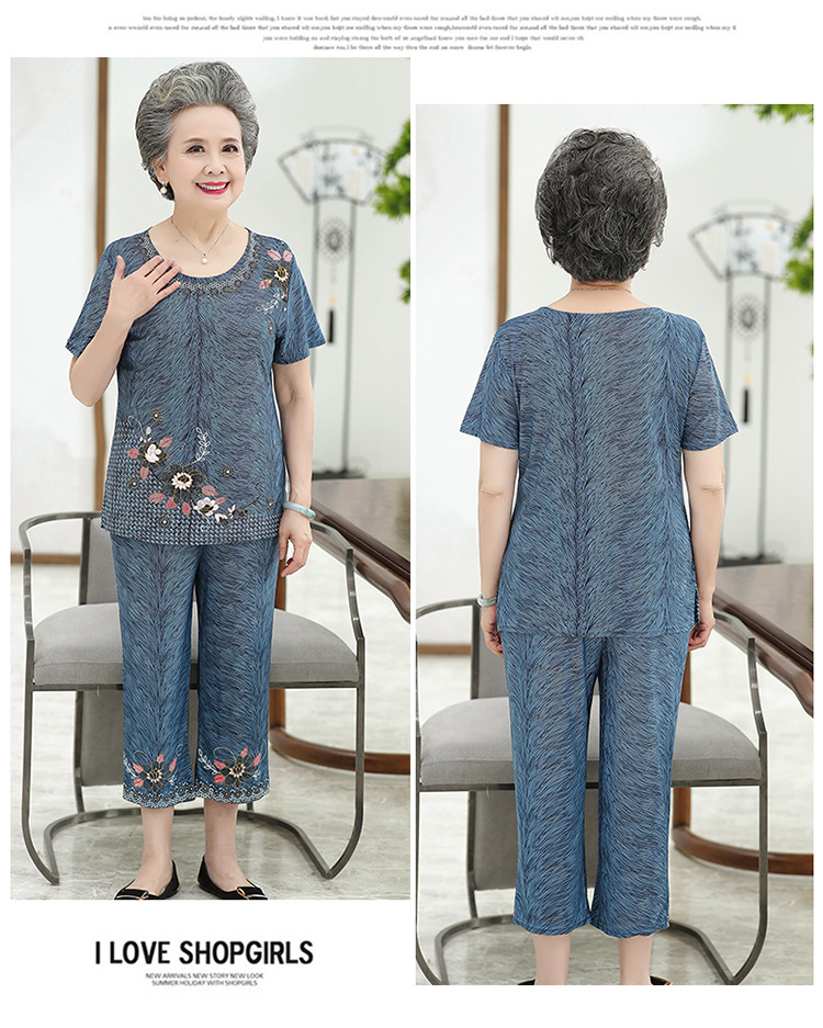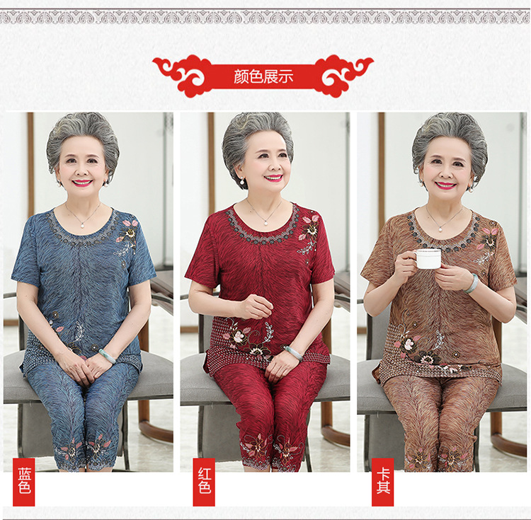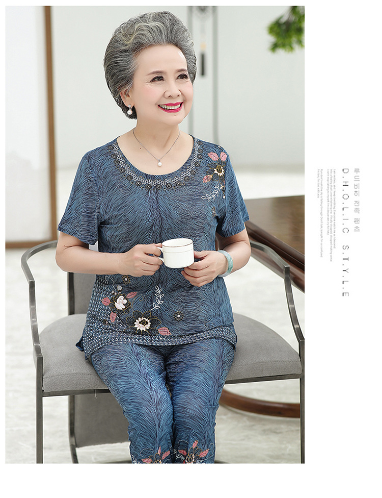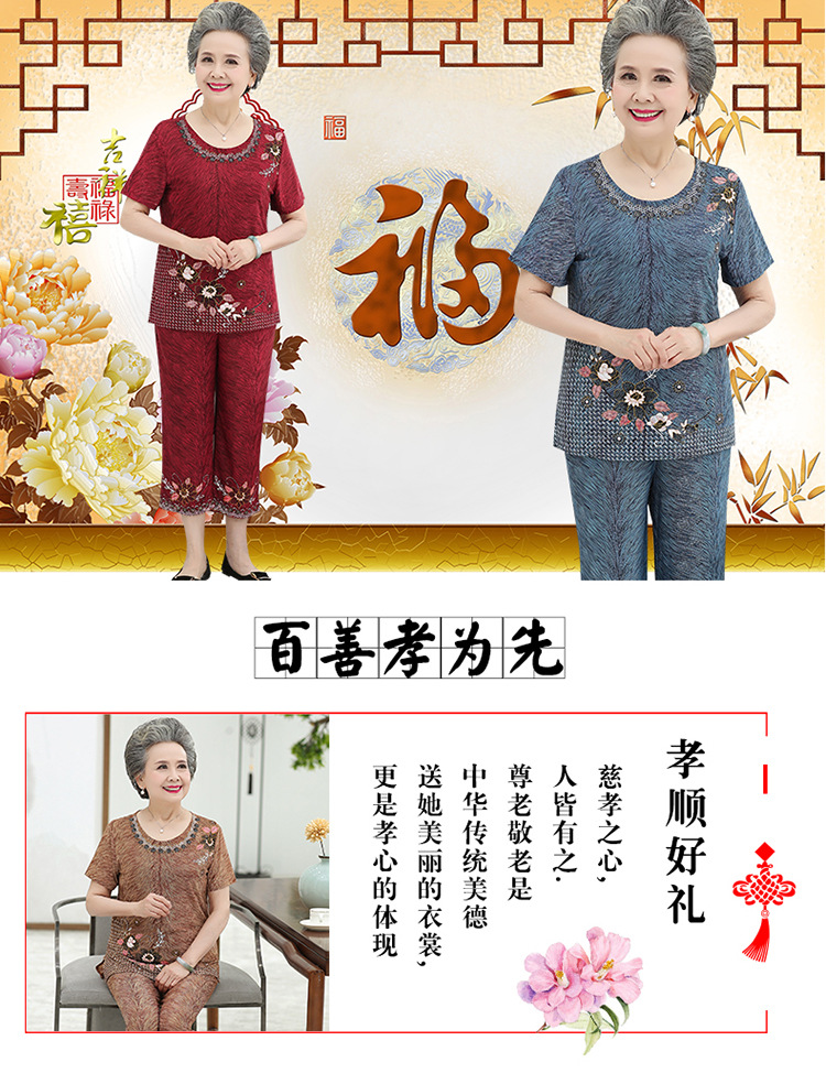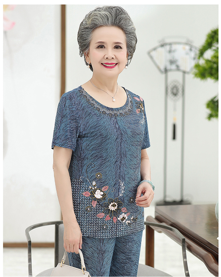 YC-910夏季奶奶装 装短袖T恤两件套装