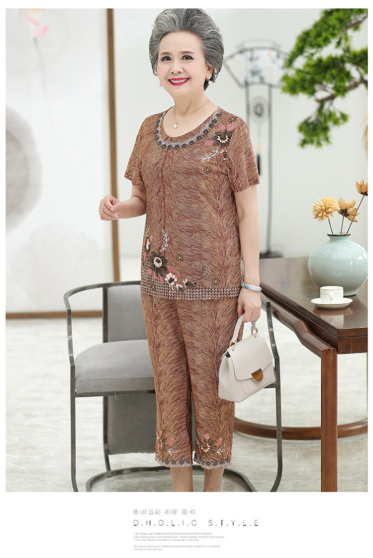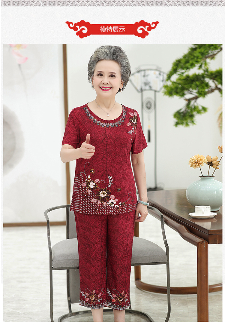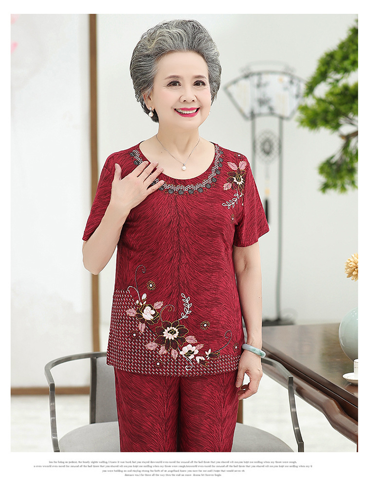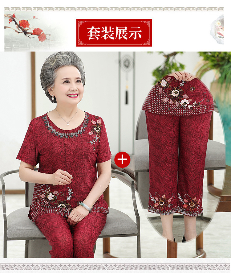 YC-910夏季奶奶装 装短袖T恤两件套装