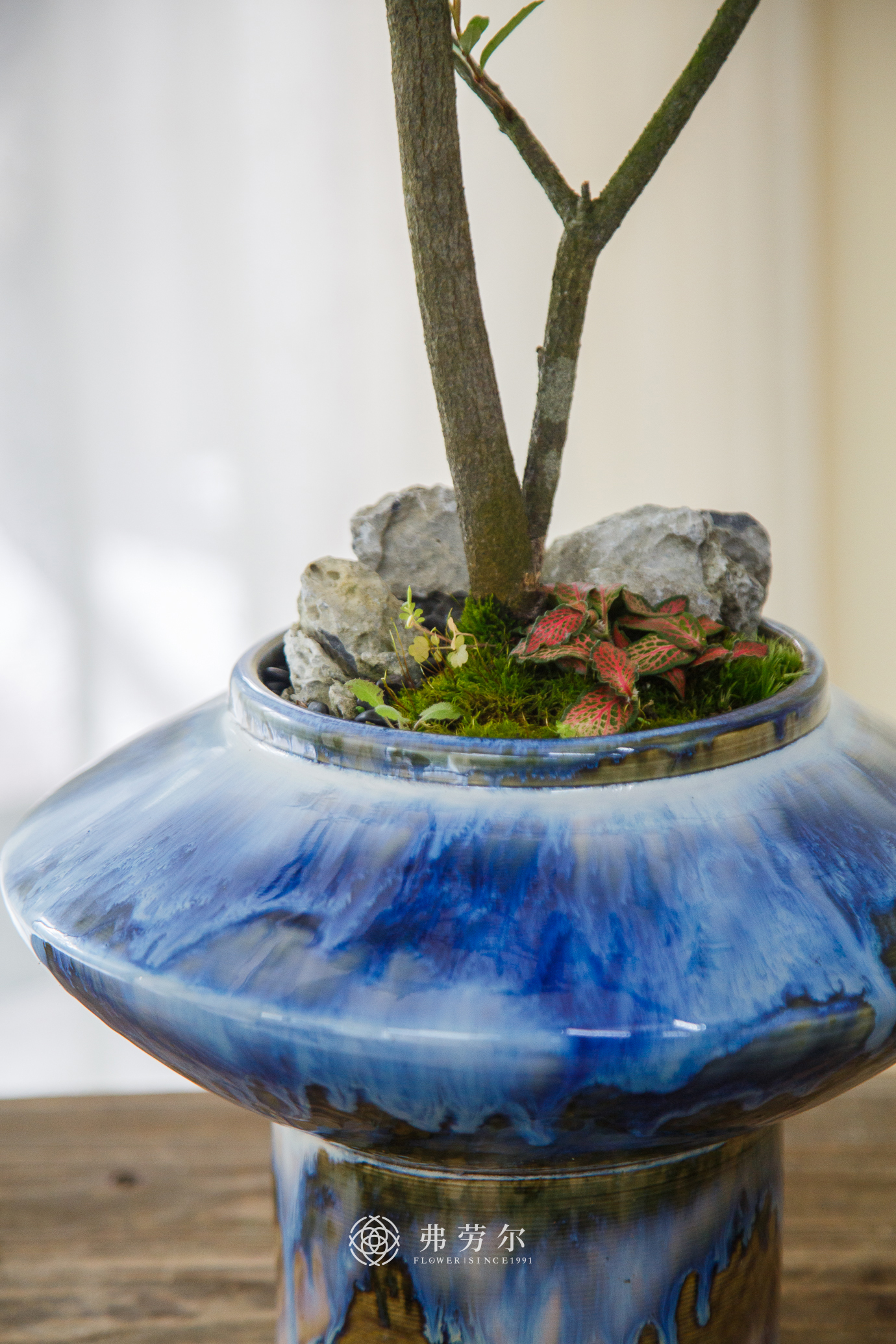产品名称:蓝色盆造型春花