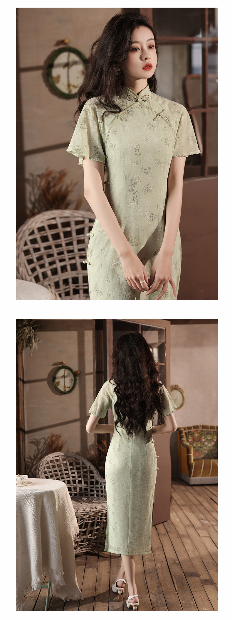 2023年新款温婉优雅淑女范碎花改良旗袍YG-2043