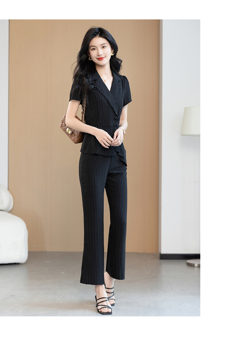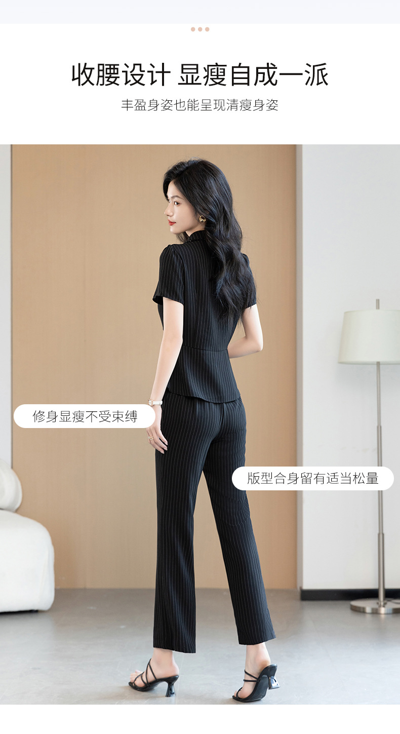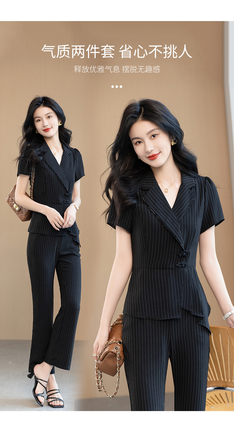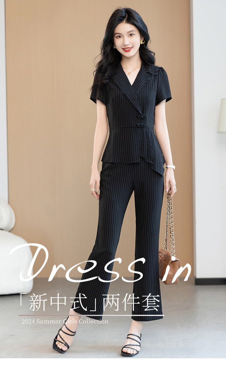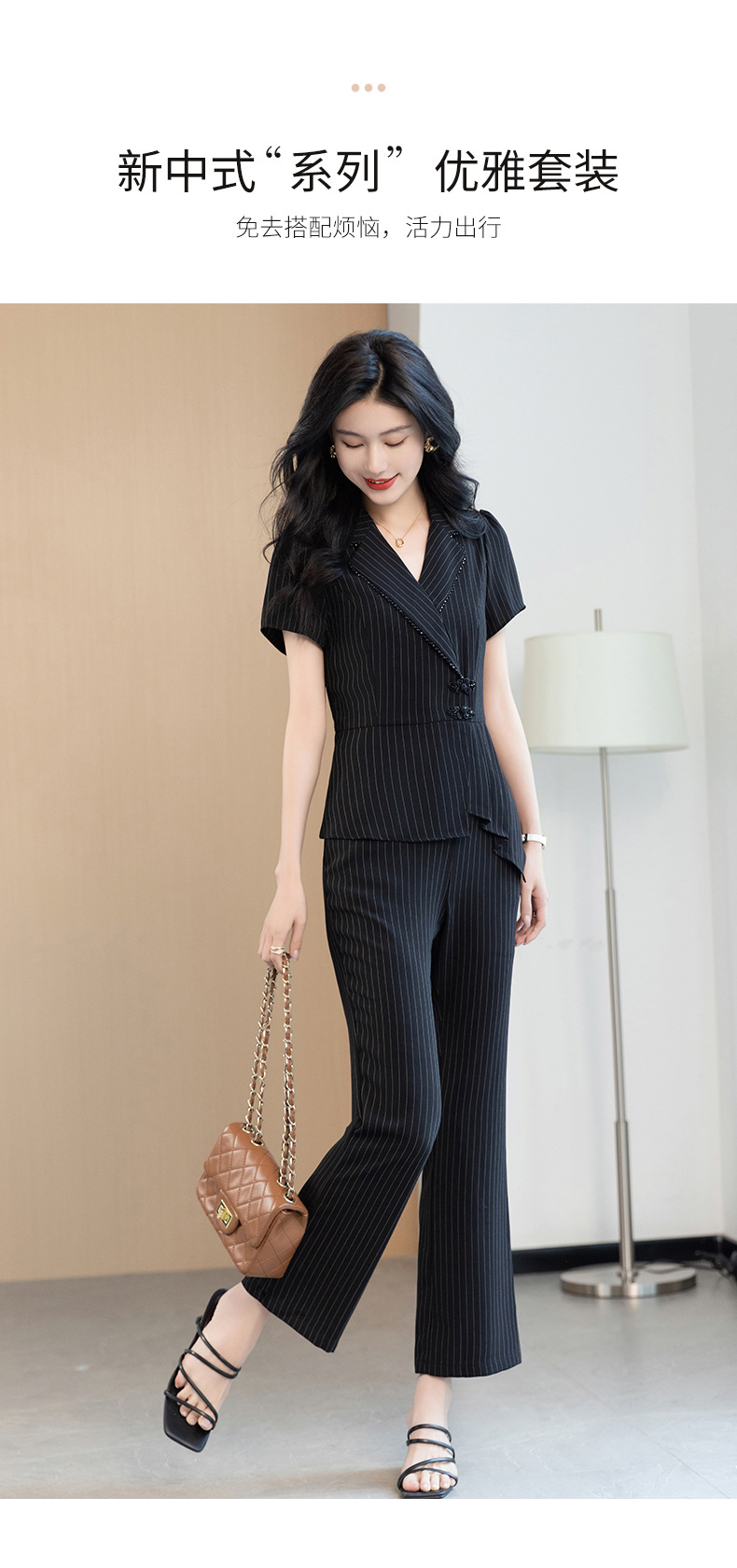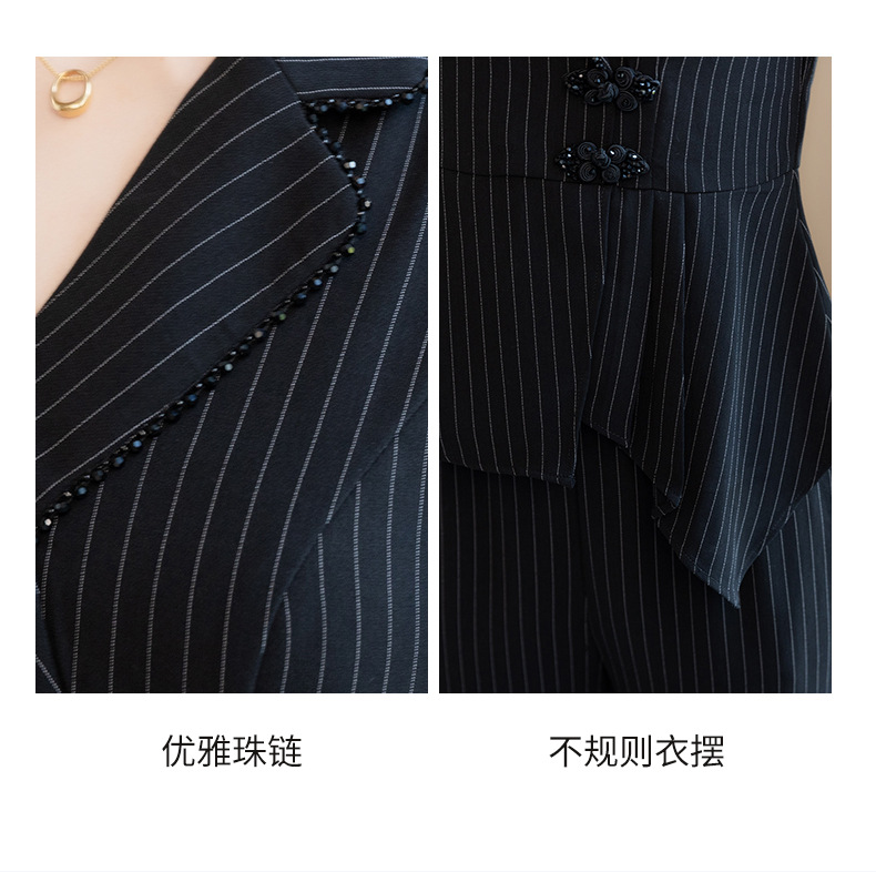 条纹不对称西装上衣+微喇裤,新中式两件套QYM-TB-FD1406 -Y