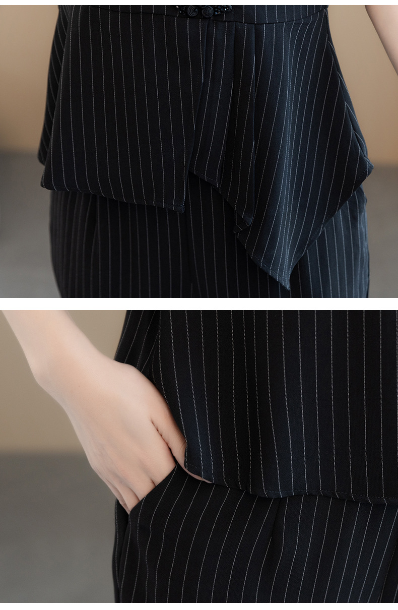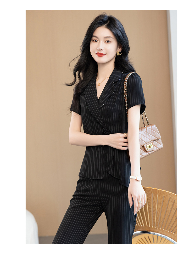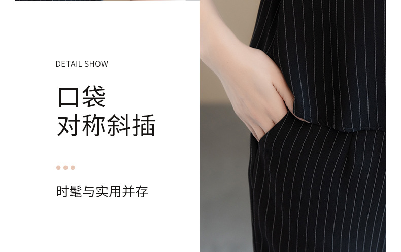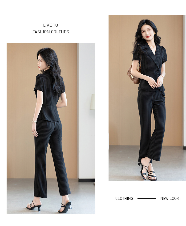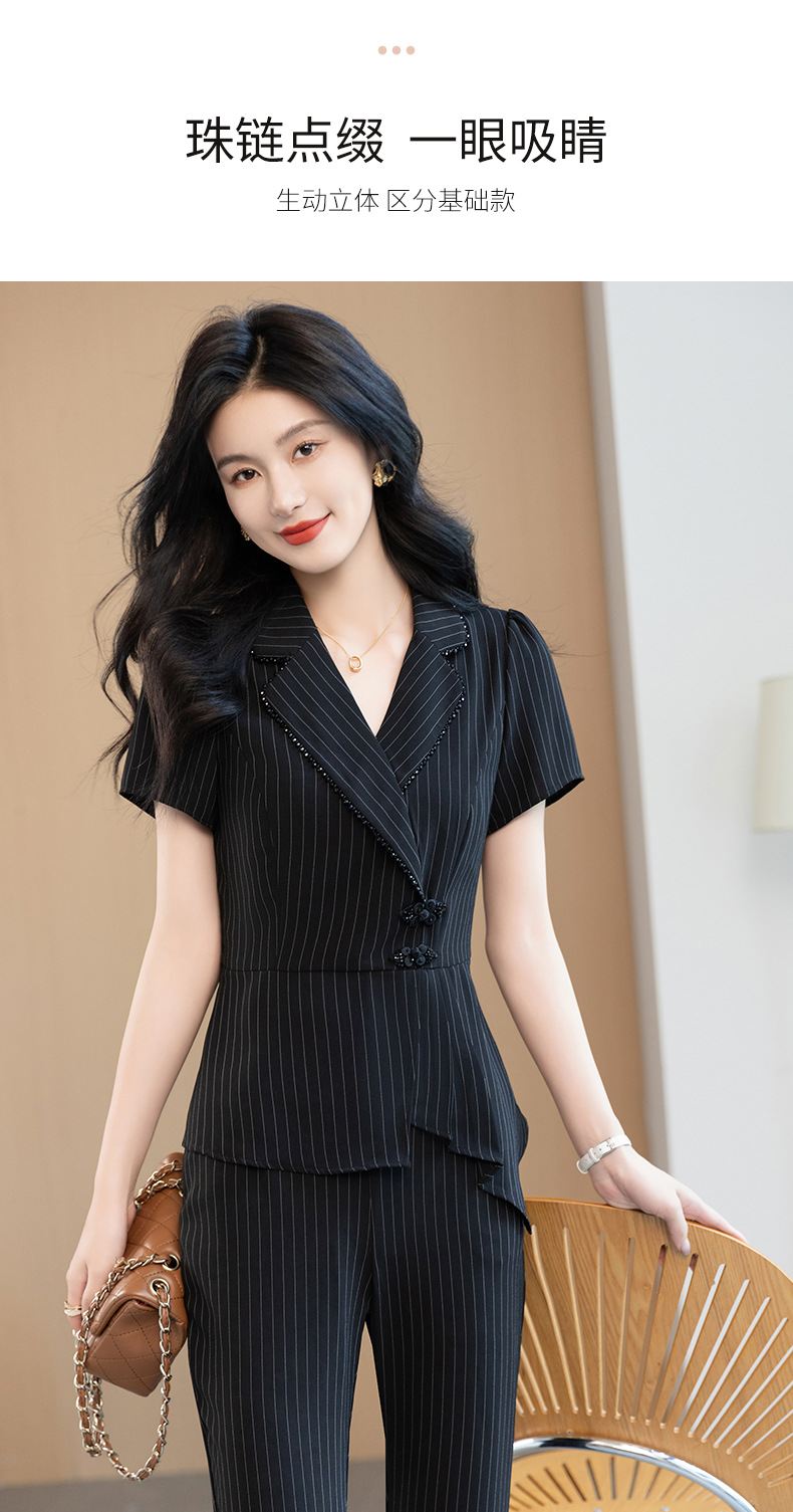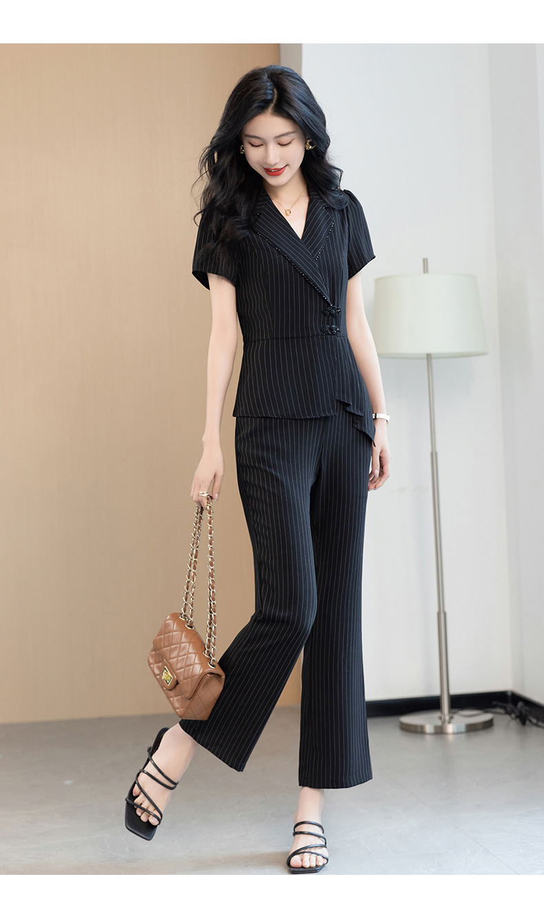 条纹不对称西装上衣+微喇裤,新中式两件套QYM-TB-FD1406 -Y