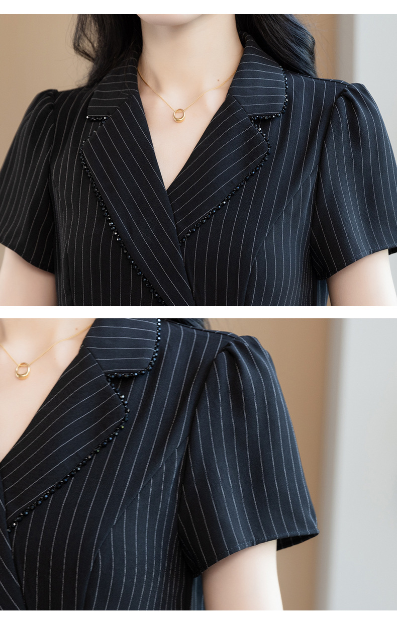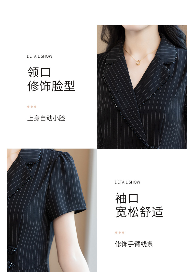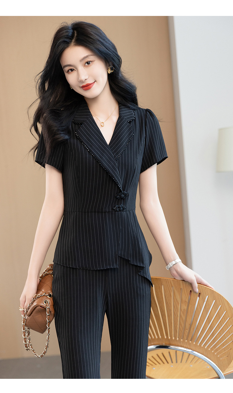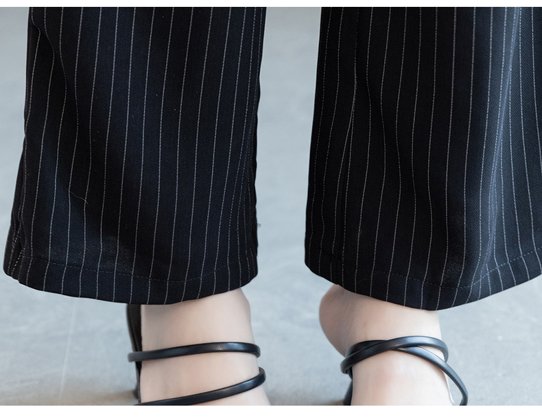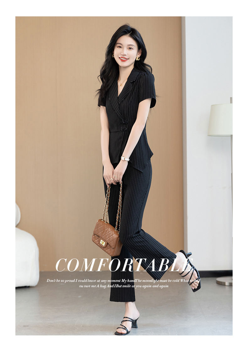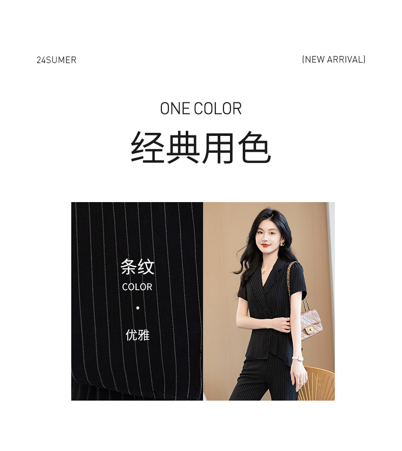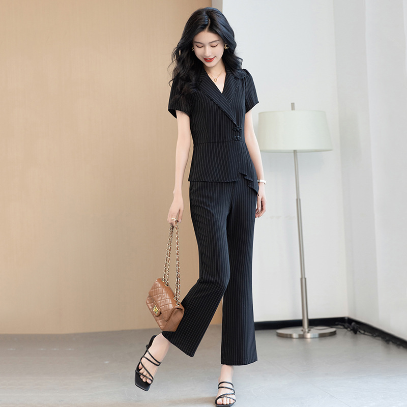 条纹不对称西装上衣+微喇裤,新中式两件套QYM-TB-FD1406 -Y
