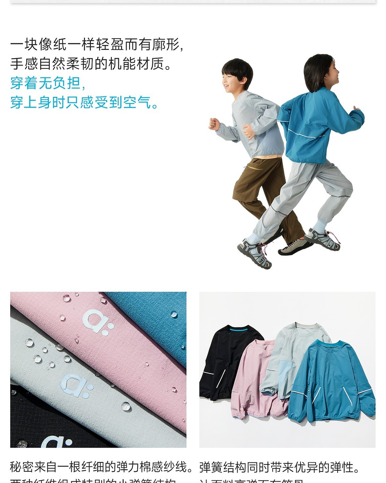 【弹纸】allblu幼岚【弹纸】儿童防泼水卫衣男女童26春新款防泼水高弹轻量