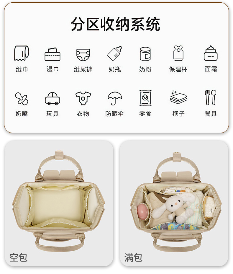 【鲸吞大容量,带娃轻出行】便携母婴包 大容量外出宝妈收纳包 独立奶仓多隔层双肩妈咪包-QQ