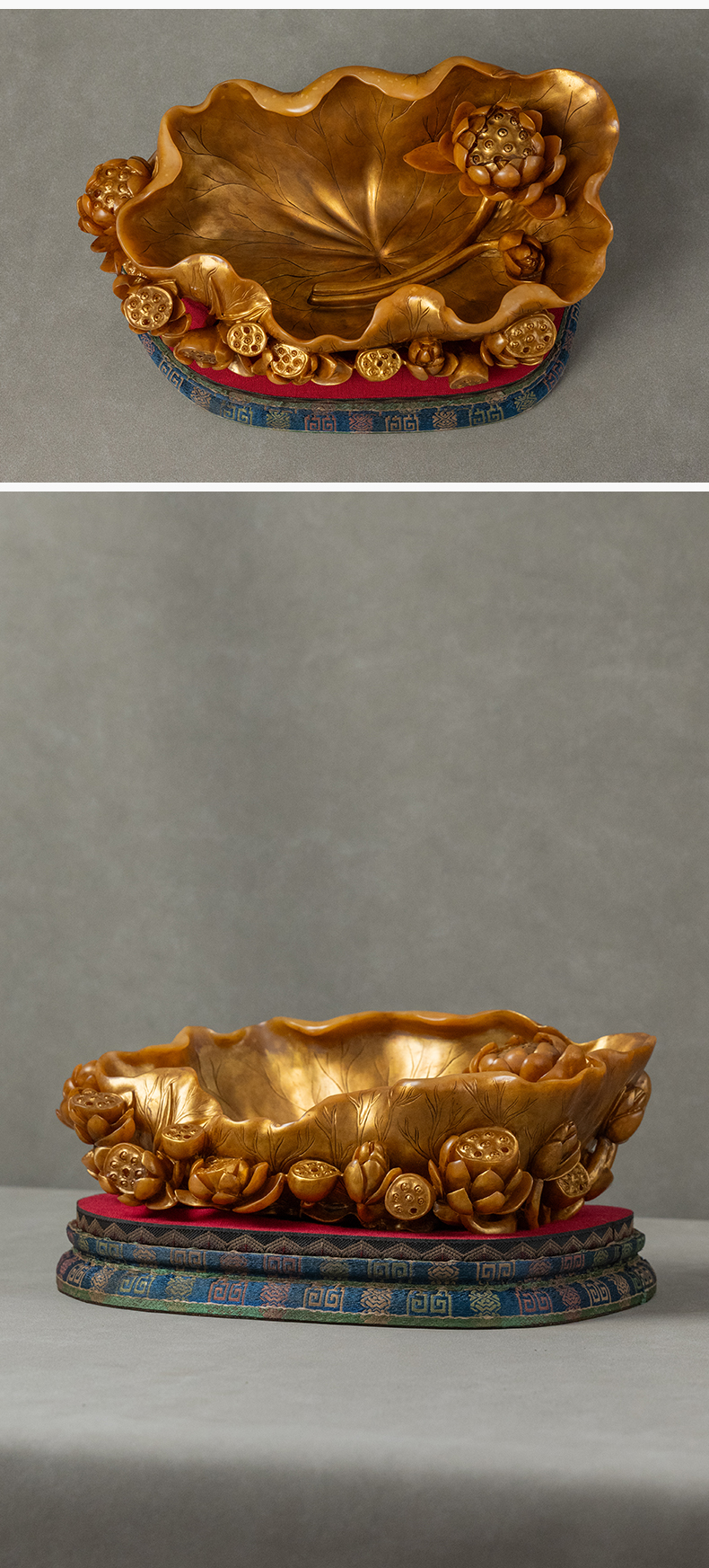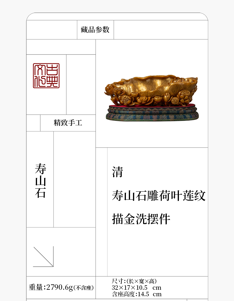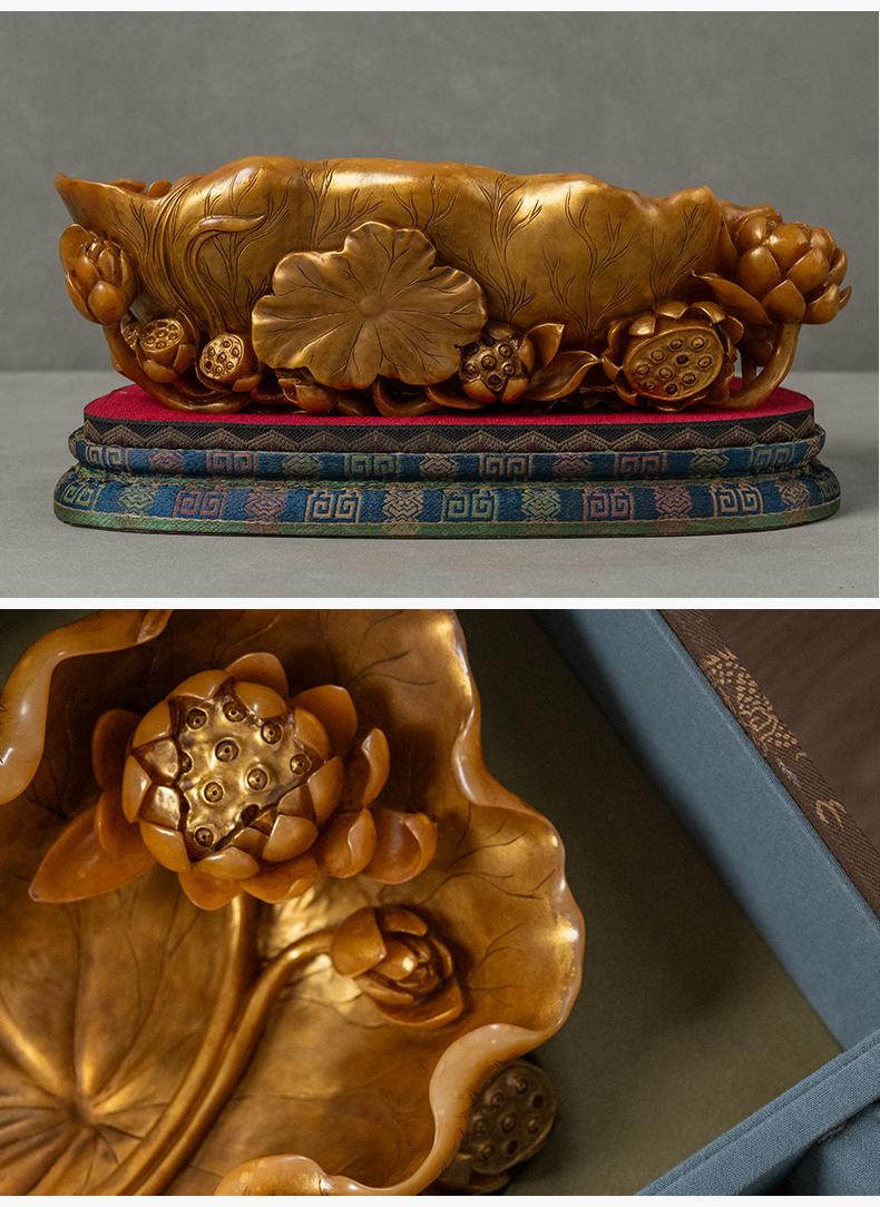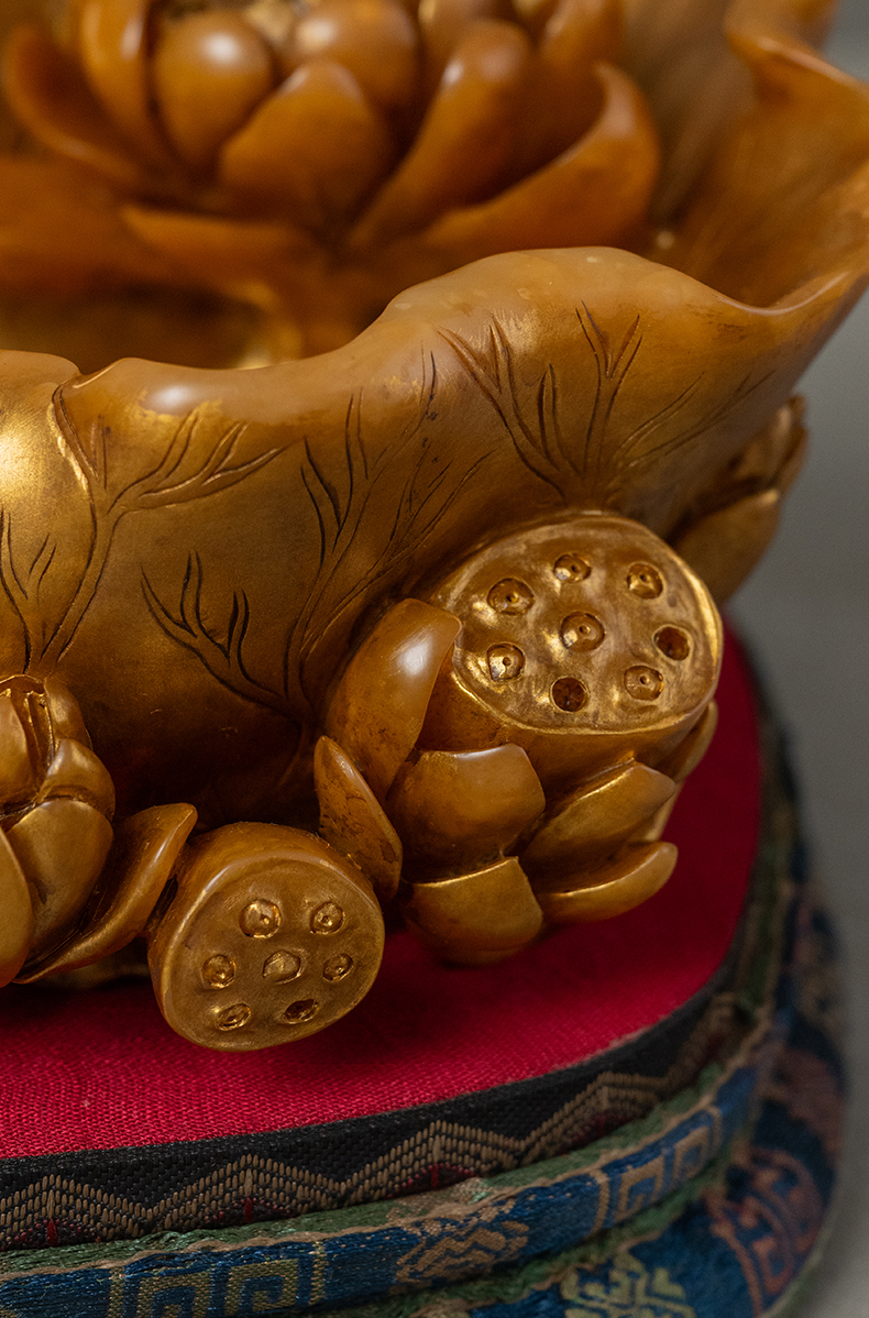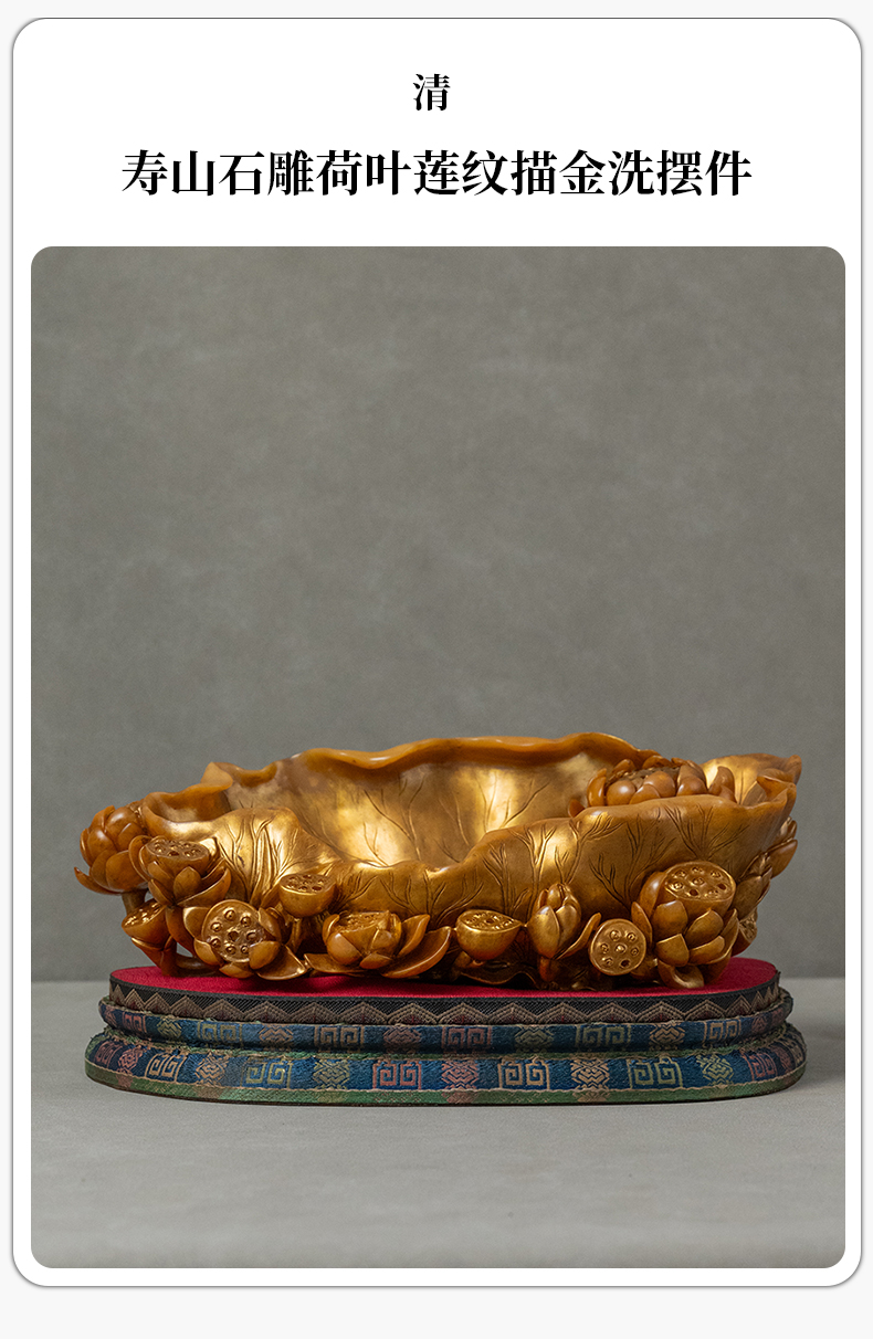 清 寿山石雕荷叶莲纹描金洗摆件