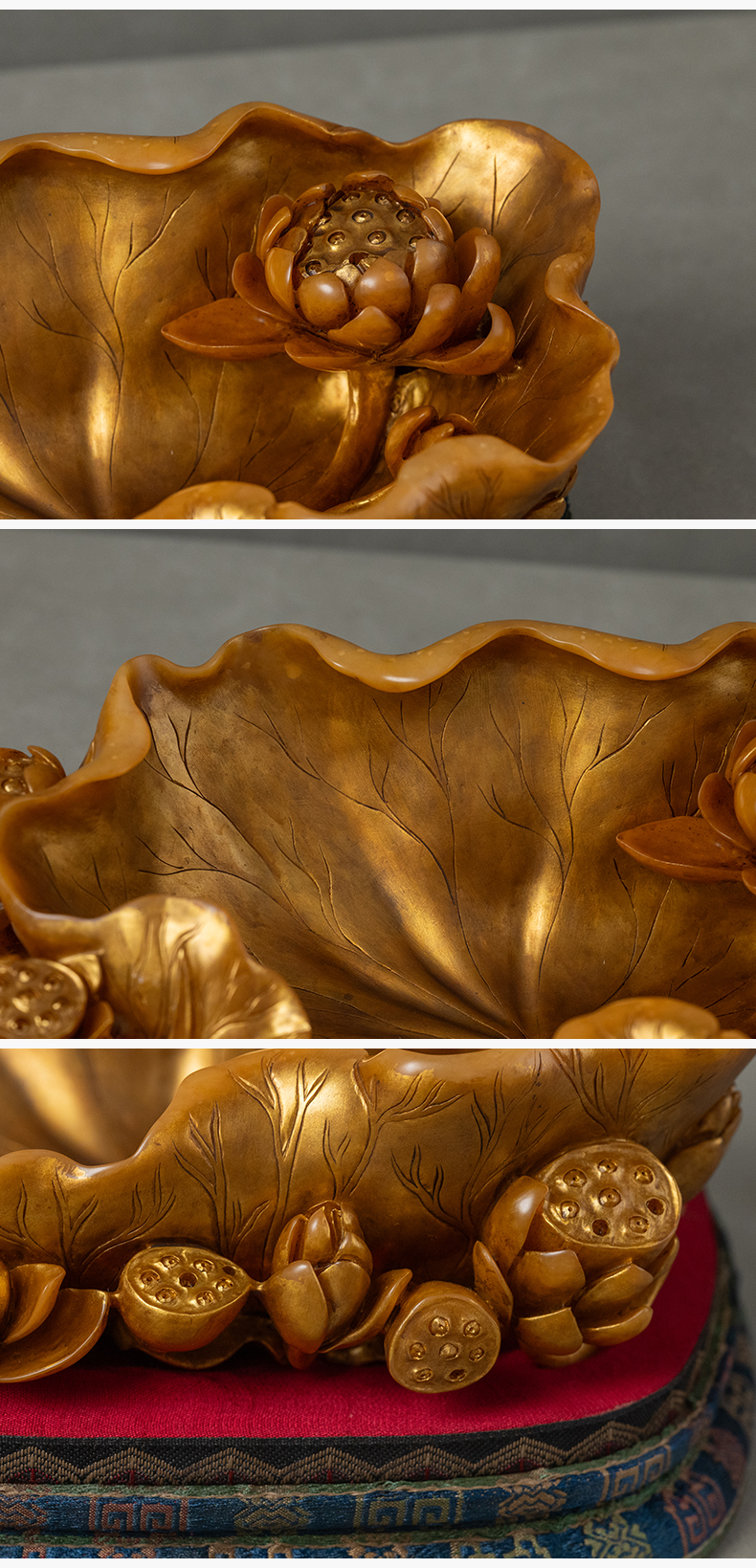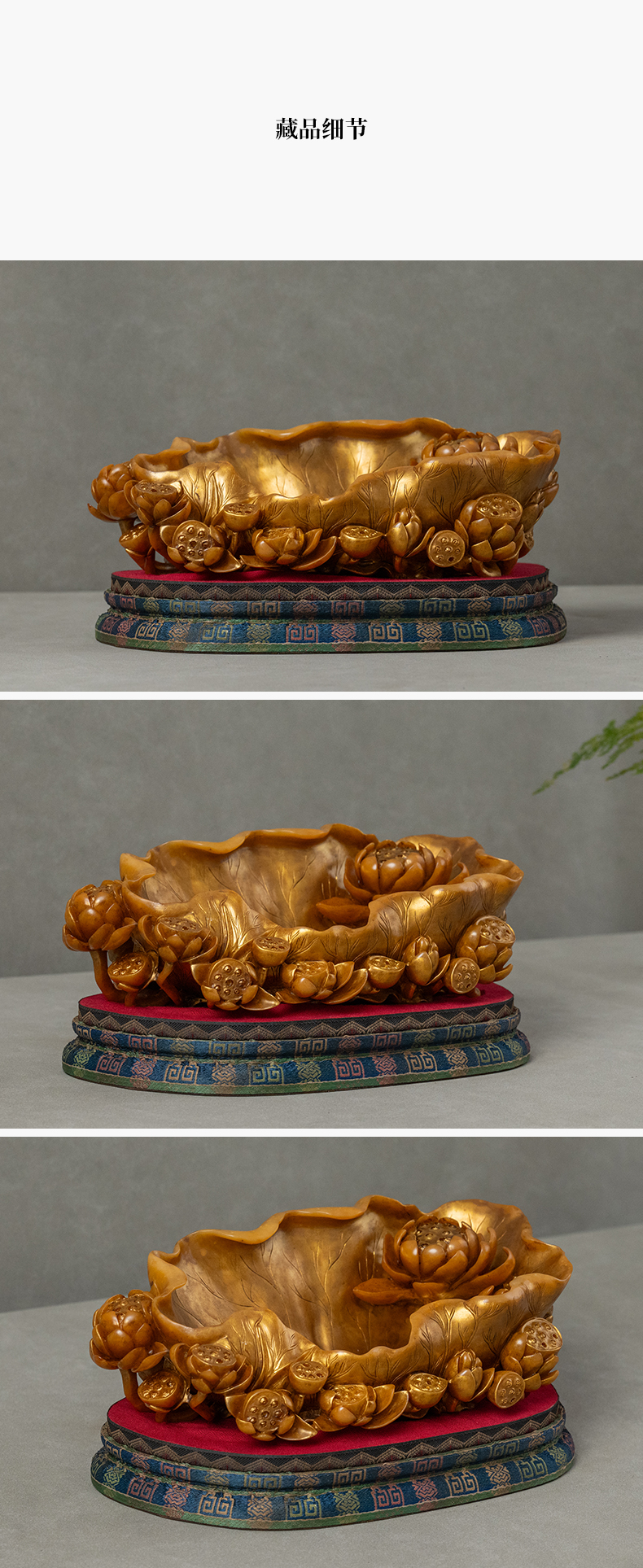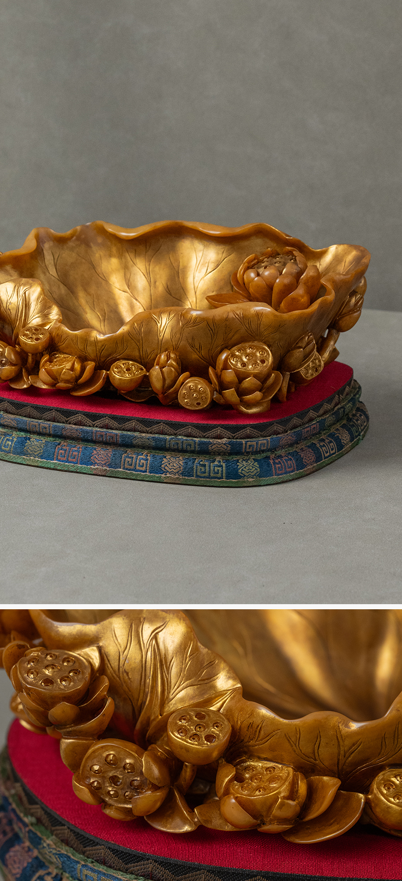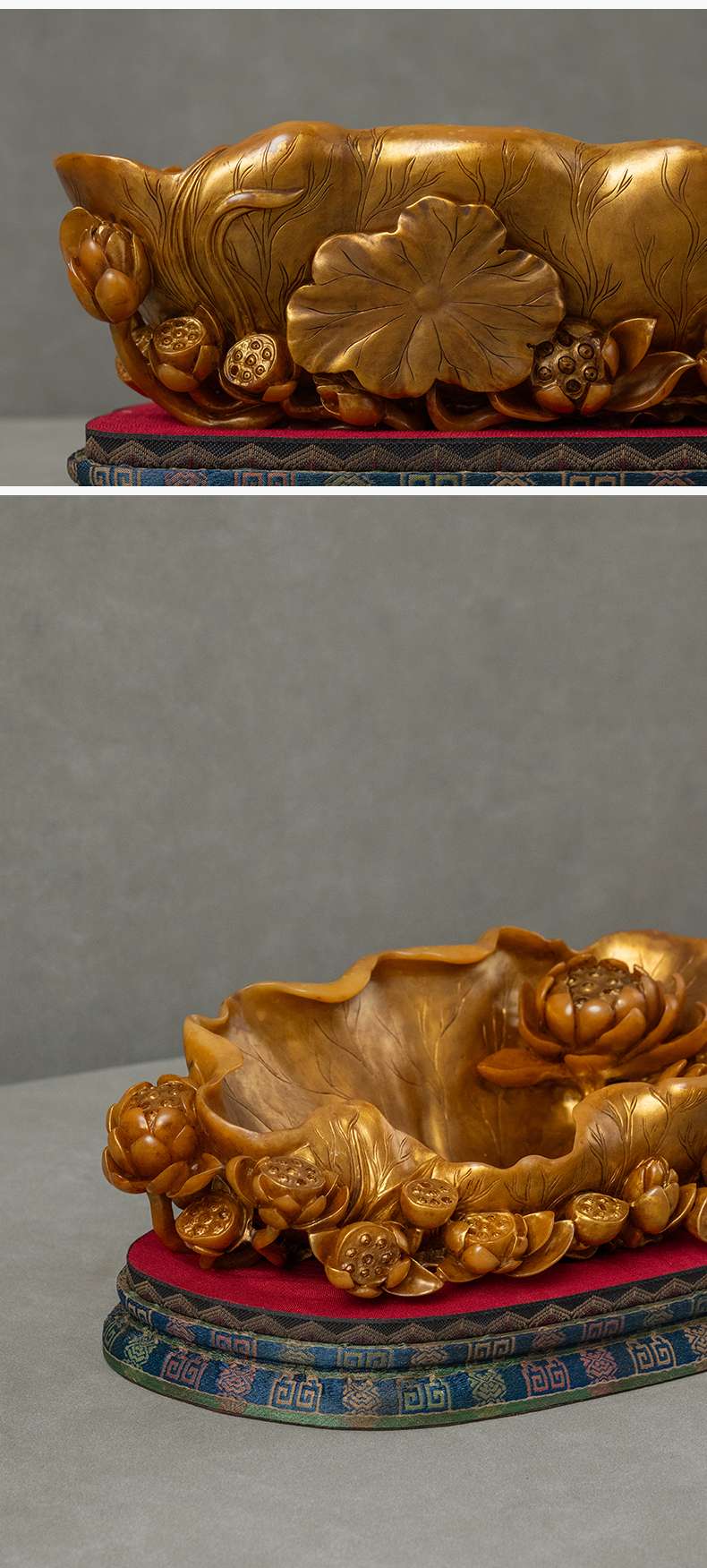 清 寿山石雕荷叶莲纹描金洗摆件