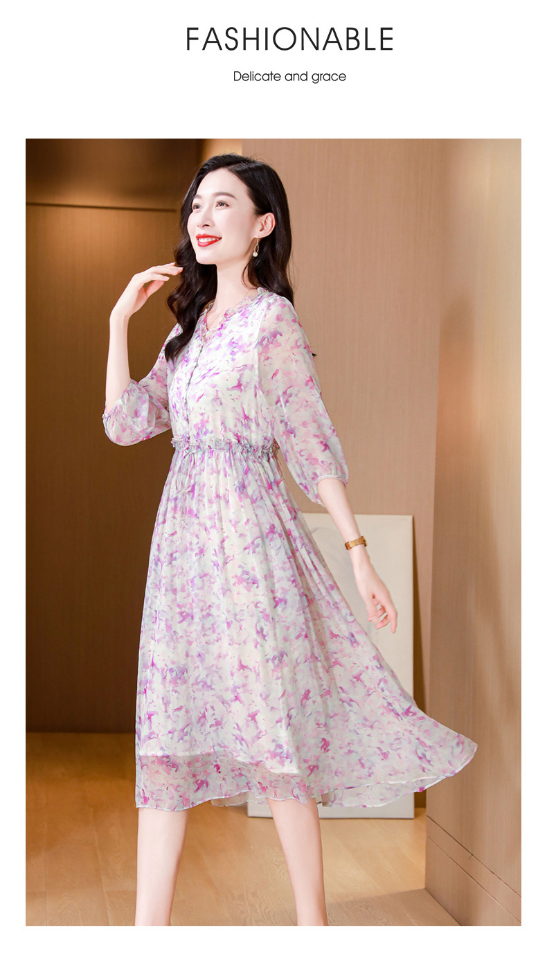 ASE-25013夏季气质时尚优雅知性真丝连衣裙