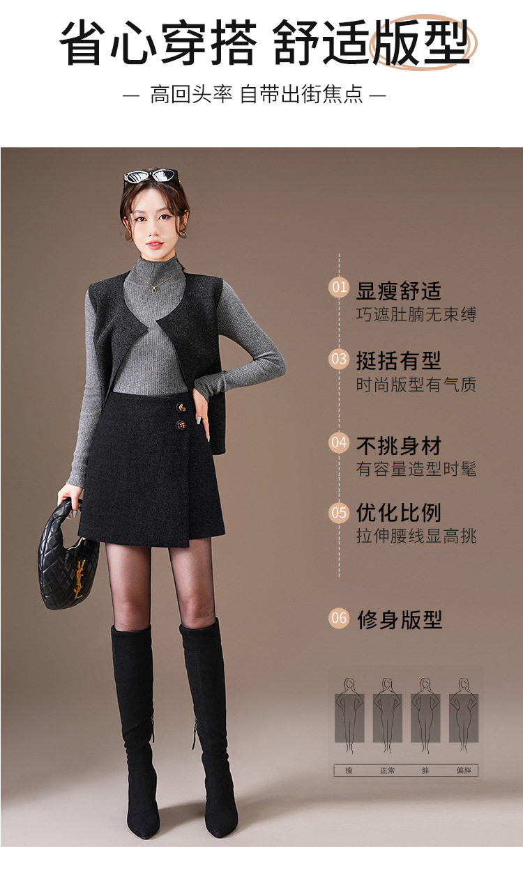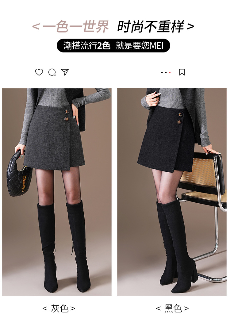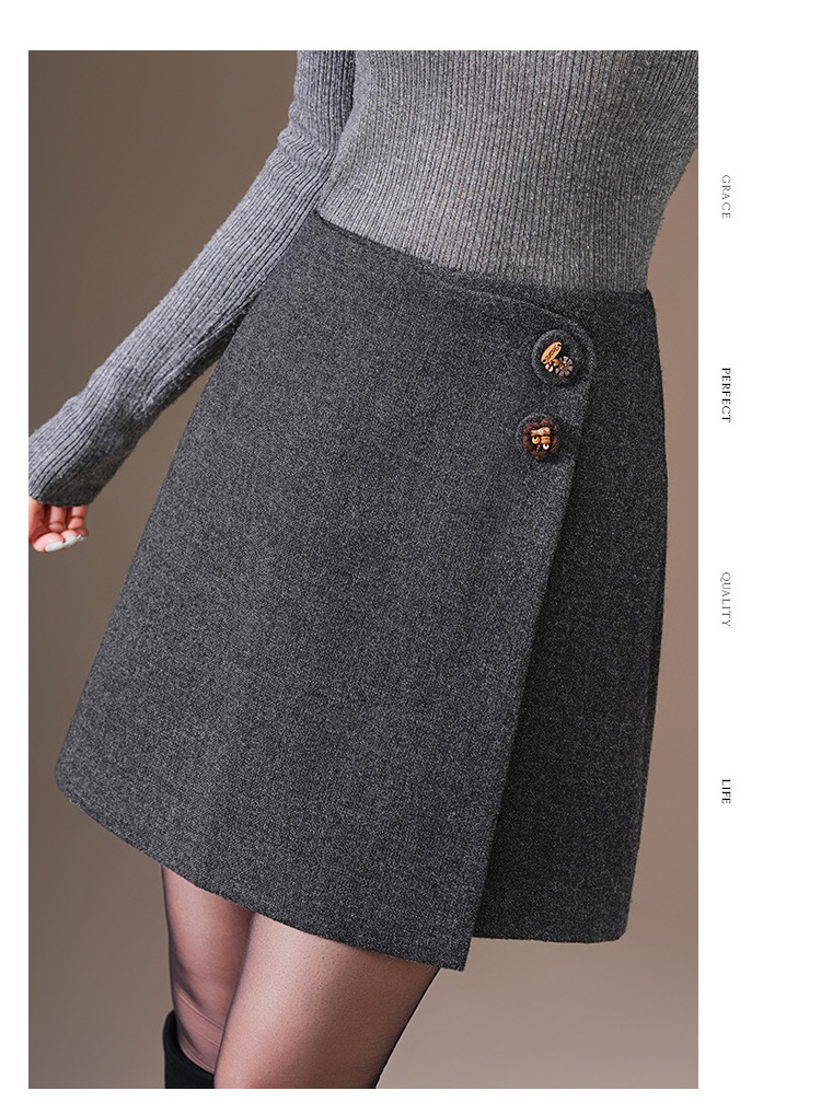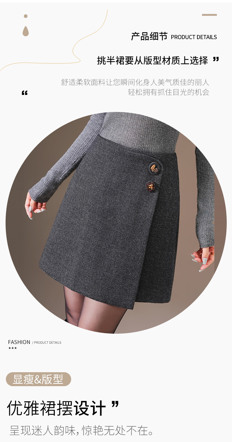 「自」全新升级【铂金会员146/天猫199/差价53】(14900)洛诗琳气质毛呢半身裙2025冬季新款加厚高腰显瘦A字裙女