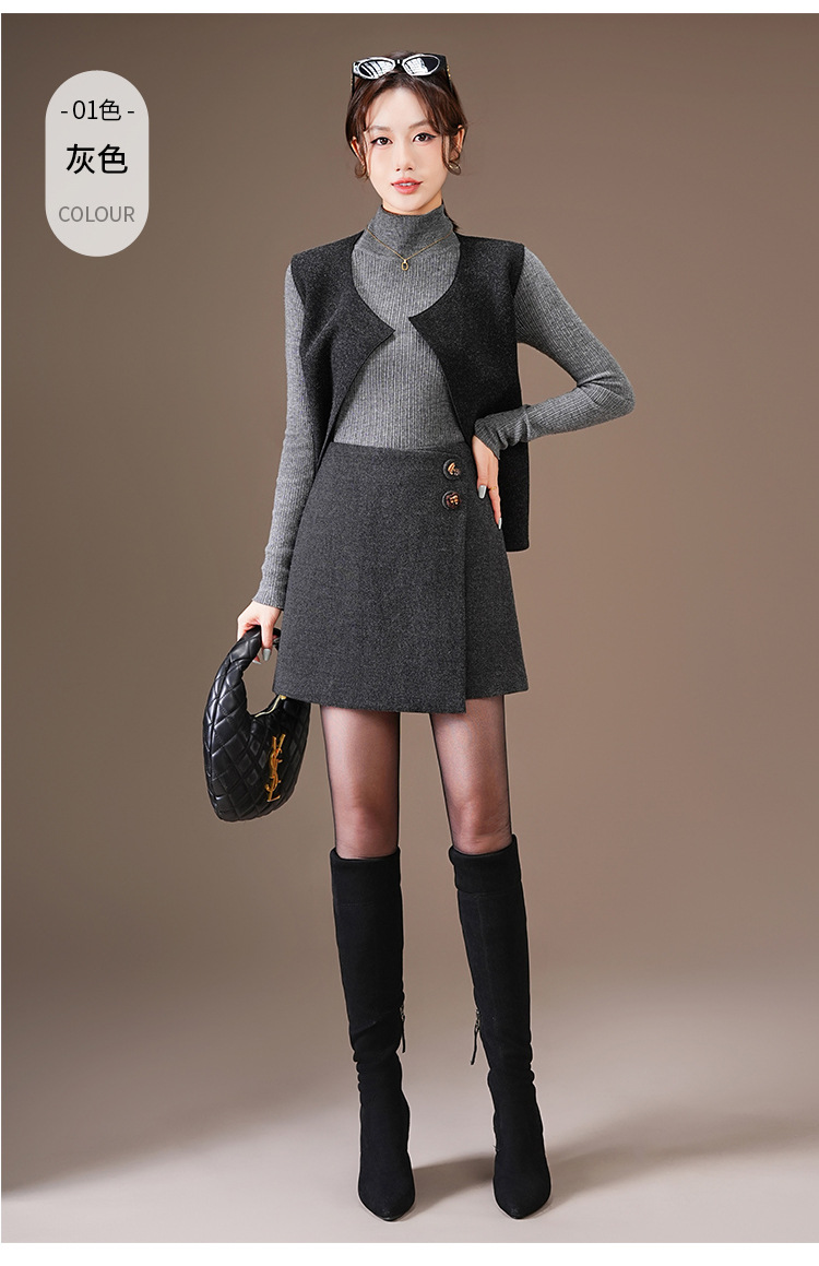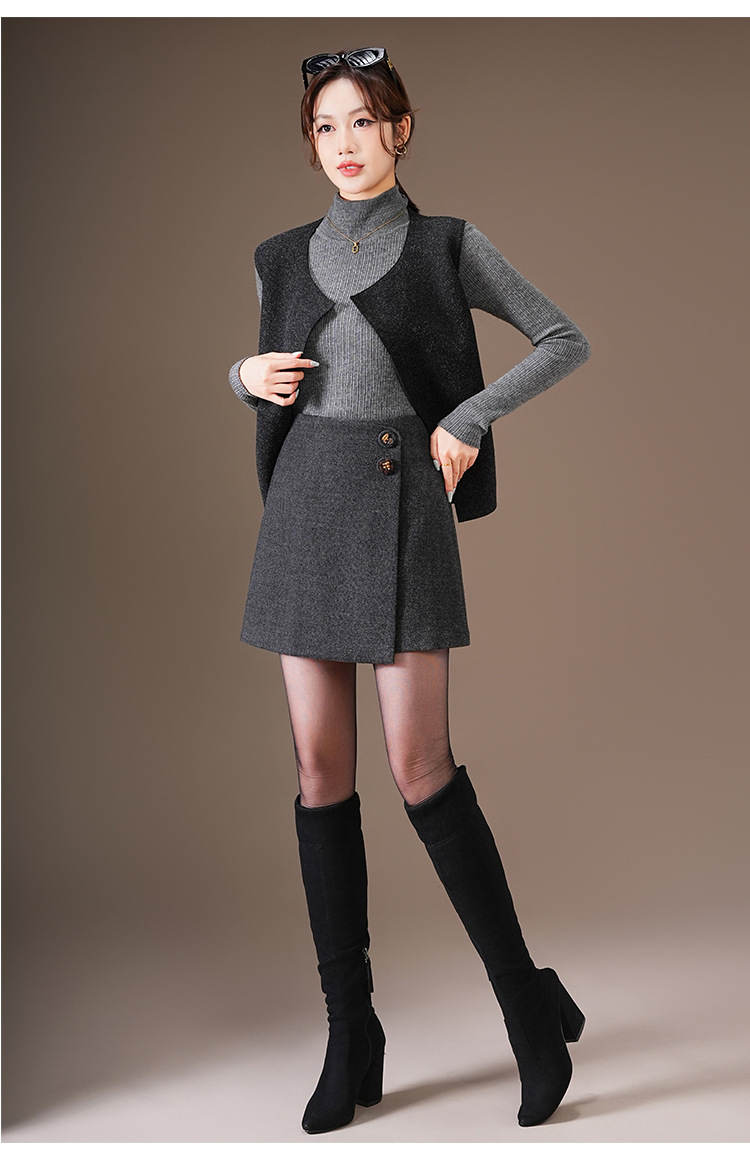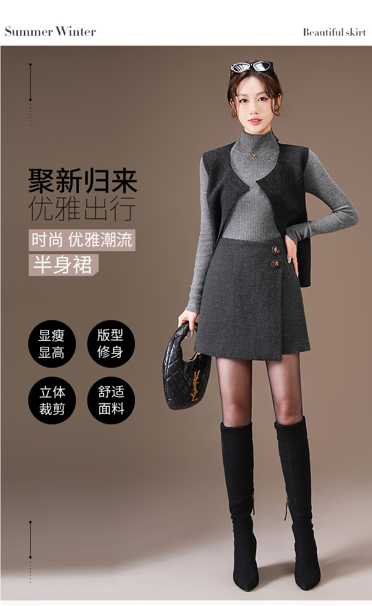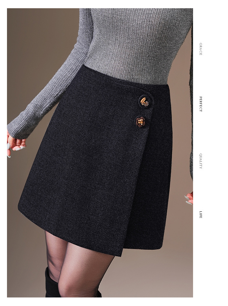 「自」全新升级【铂金会员146/天猫199/差价53】(14900)洛诗琳气质毛呢半身裙2025冬季新款加厚高腰显瘦A字裙女