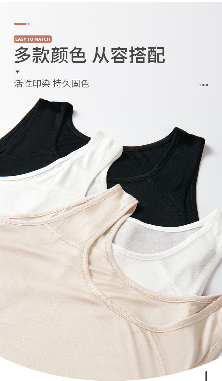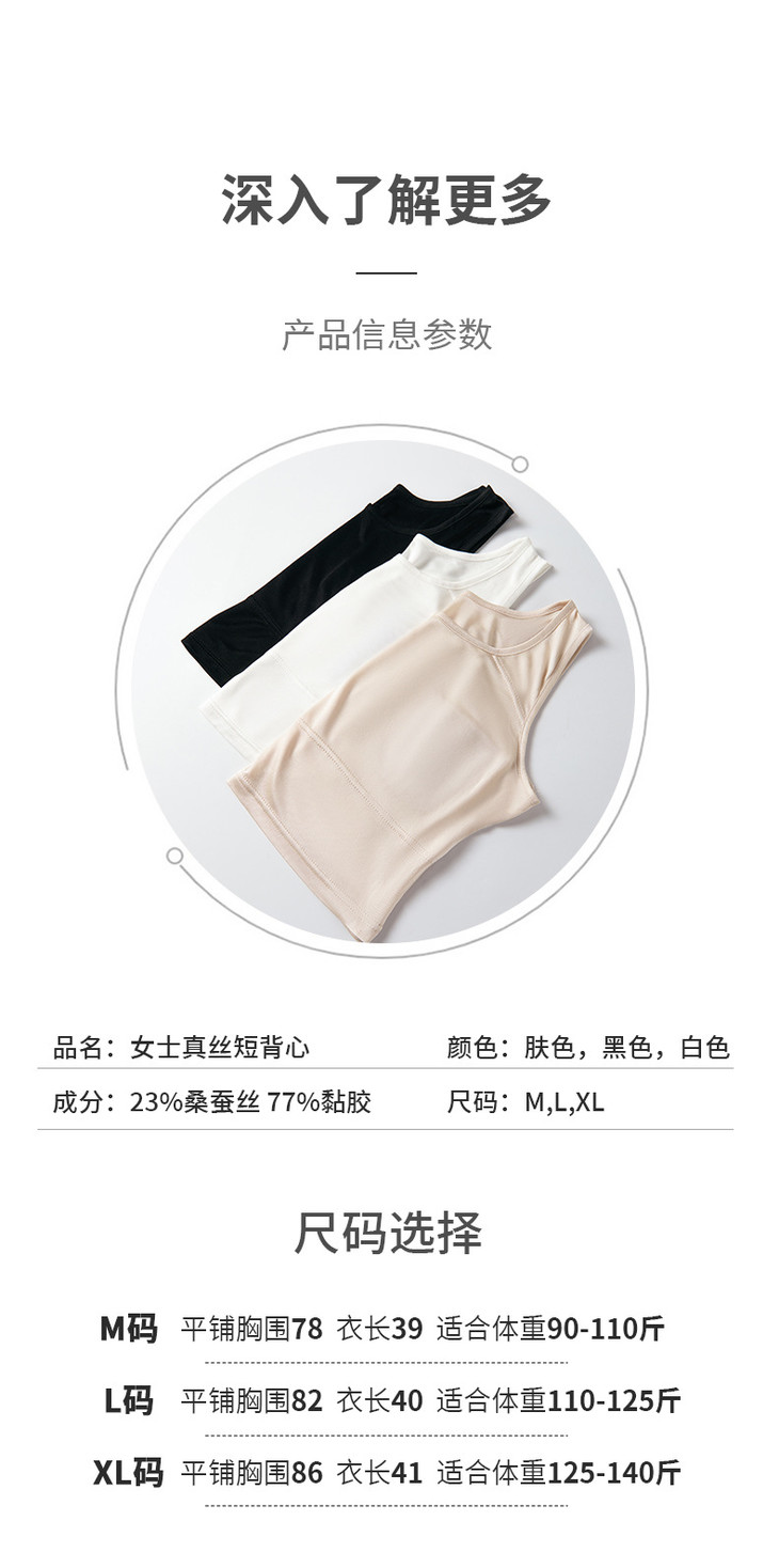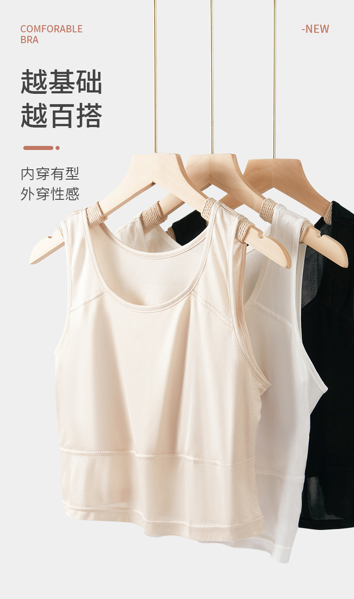 TG03S298春夏新品真丝圆领打底短背心女 亲肤棉胸垫防凸点免穿内衣