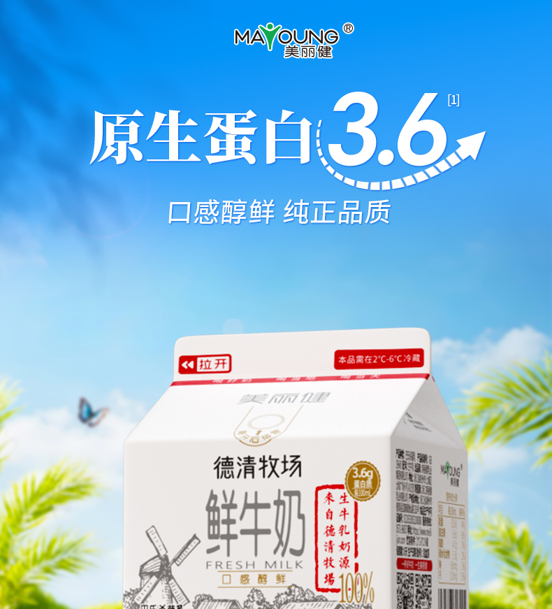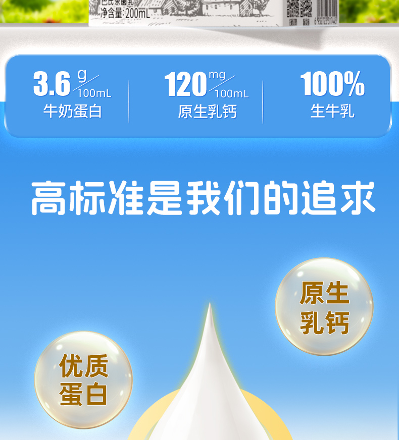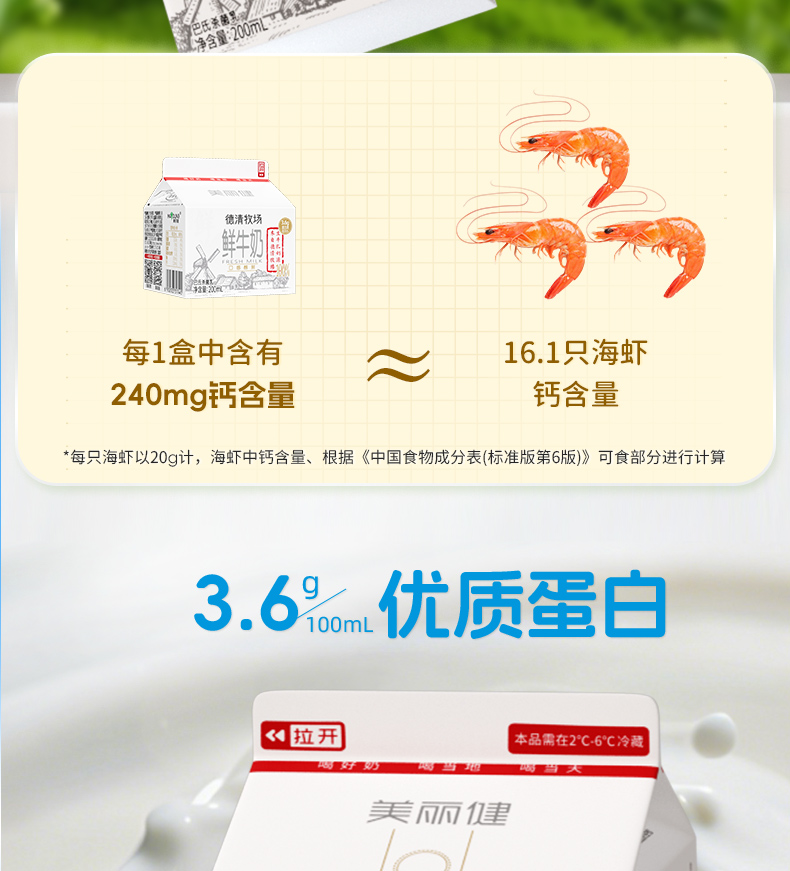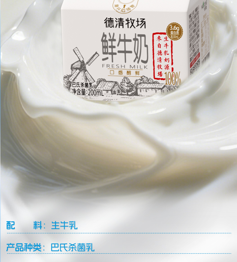 【每日鲜配】美丽健牌德清牧场鲜牛奶200mL(低温鲜奶,月套餐,每日配送)