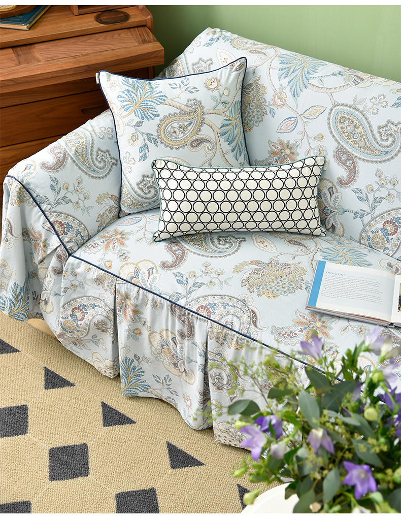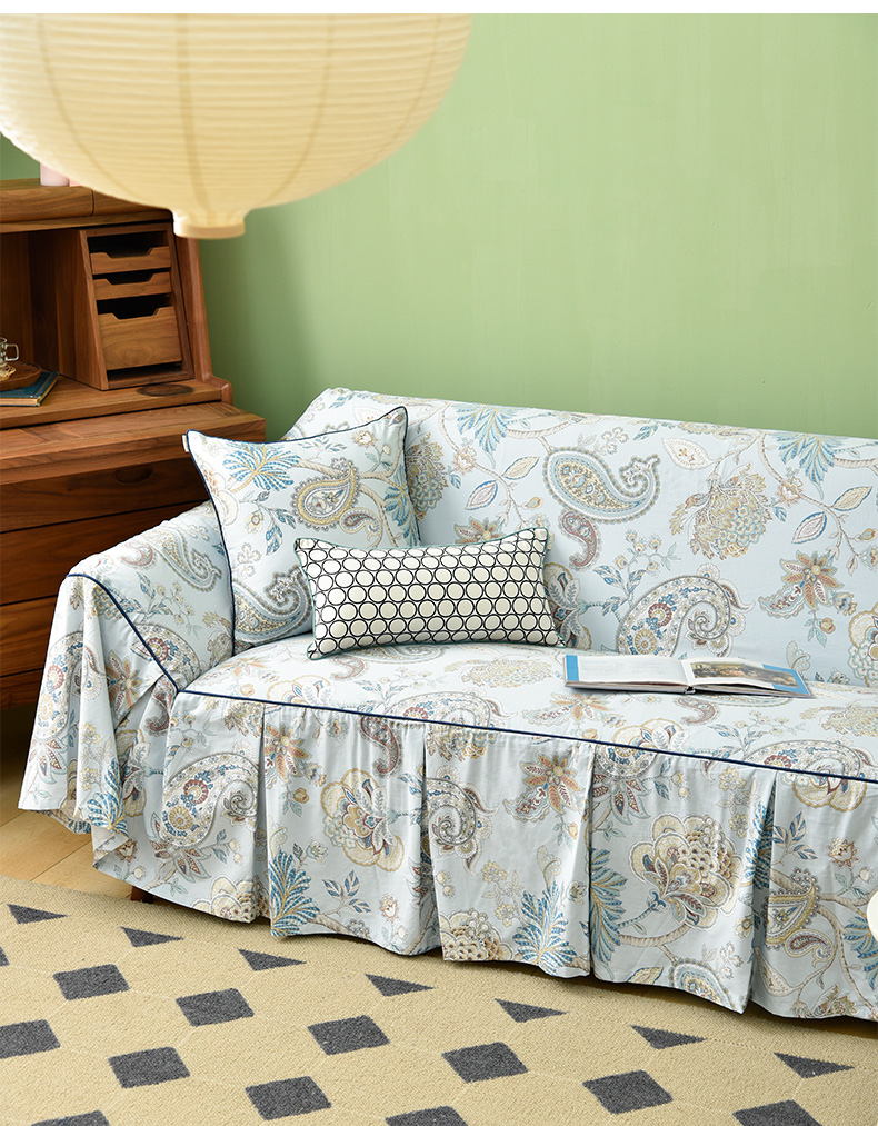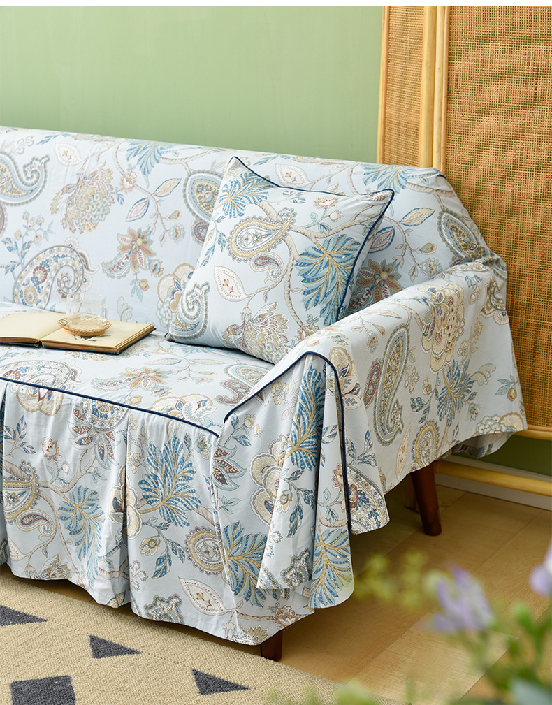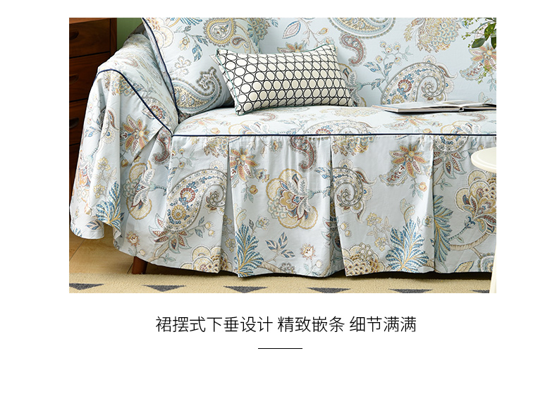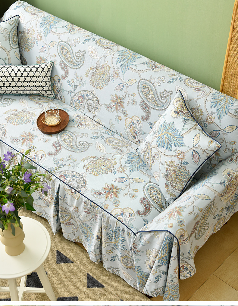 水蓝百子莲全包式沙发盖巾田园四季沙发巾