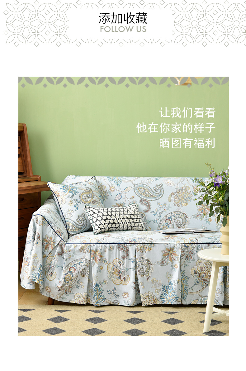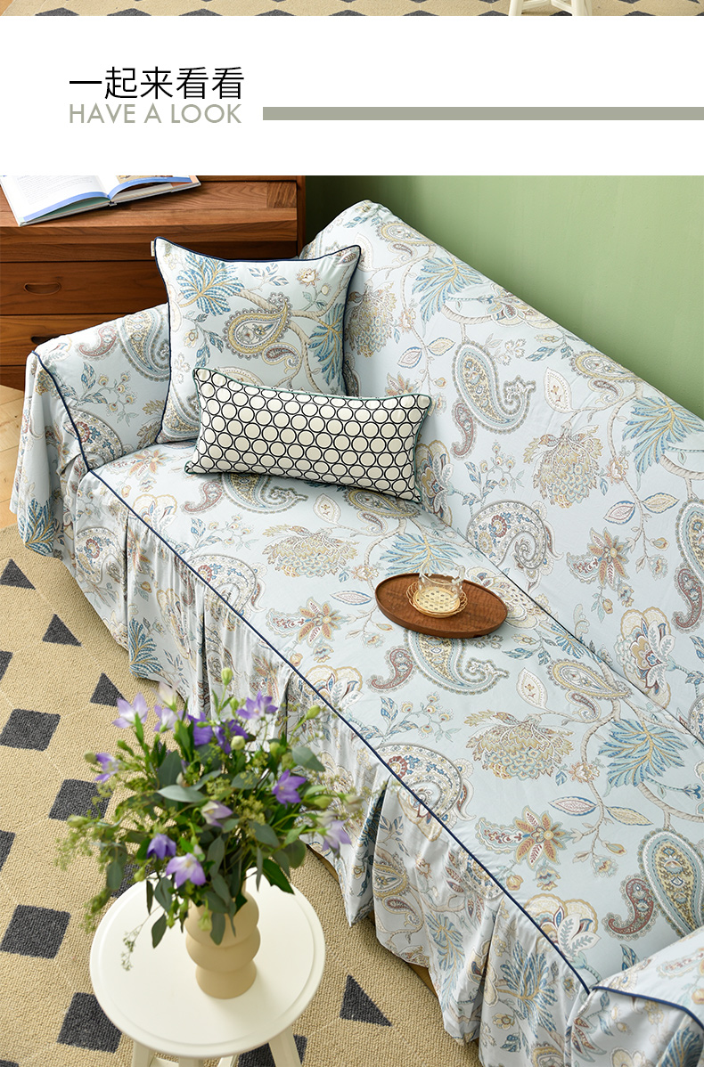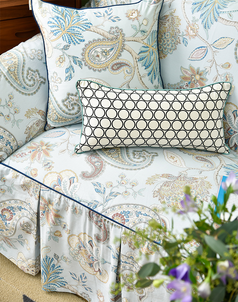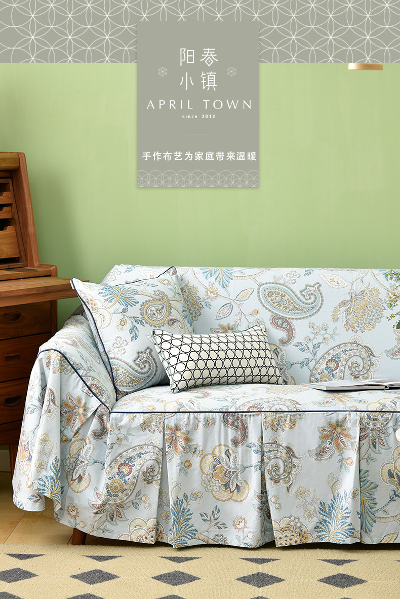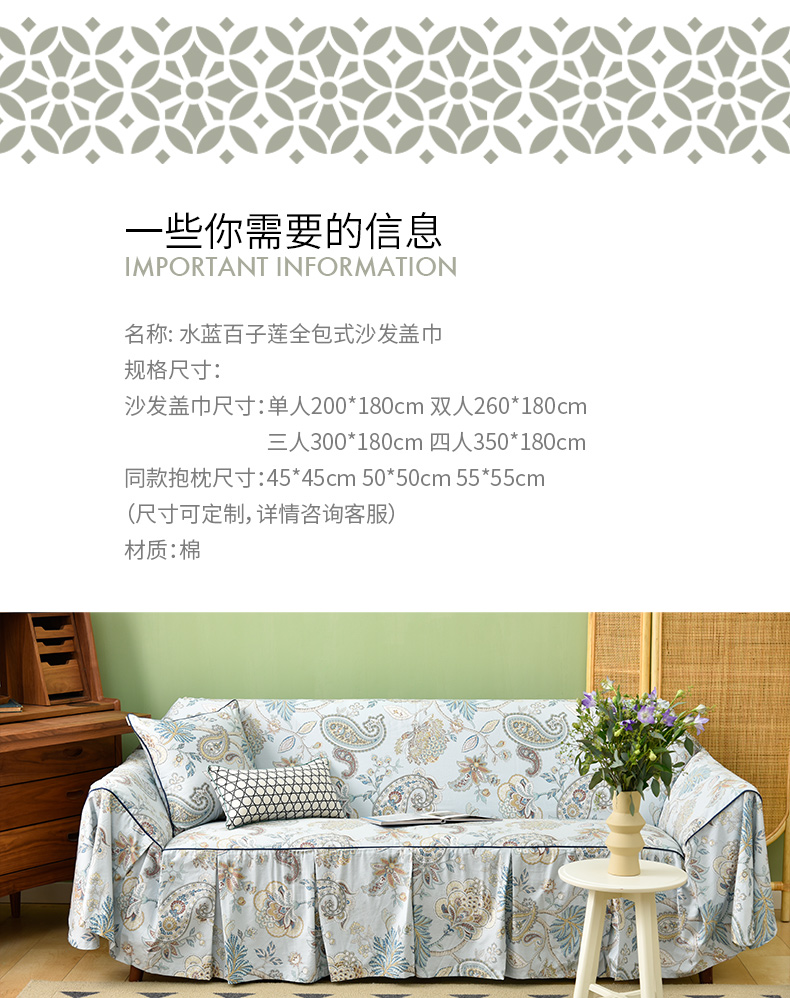水蓝百子莲全包式沙发盖巾田园四季沙发巾
