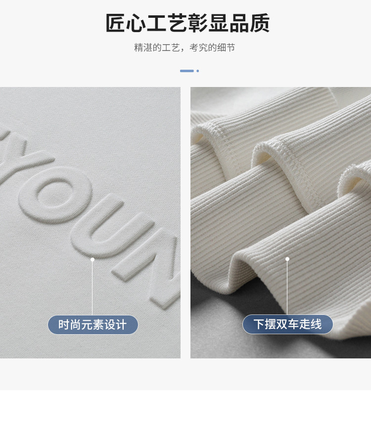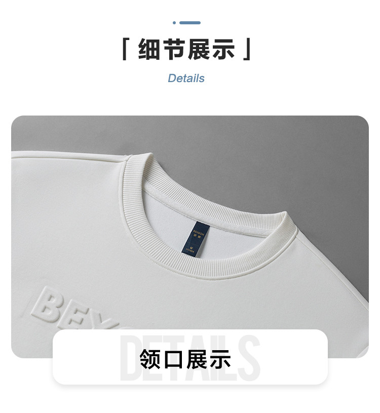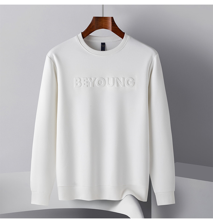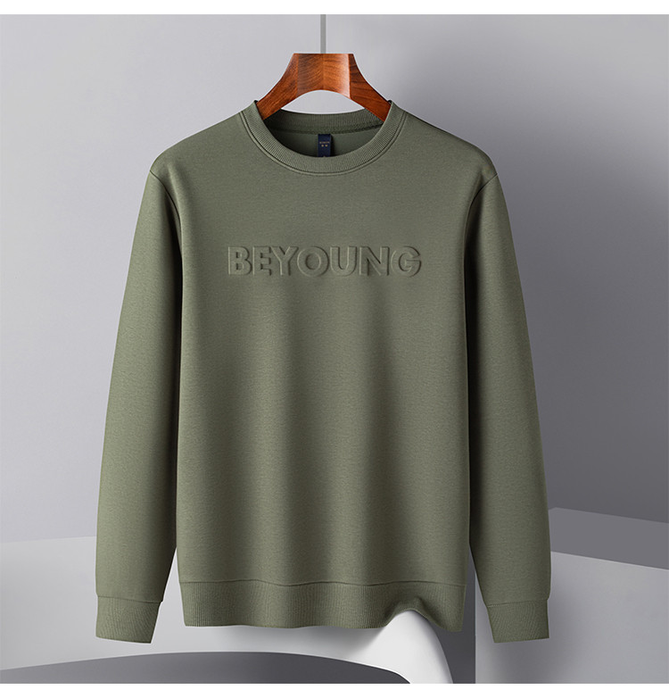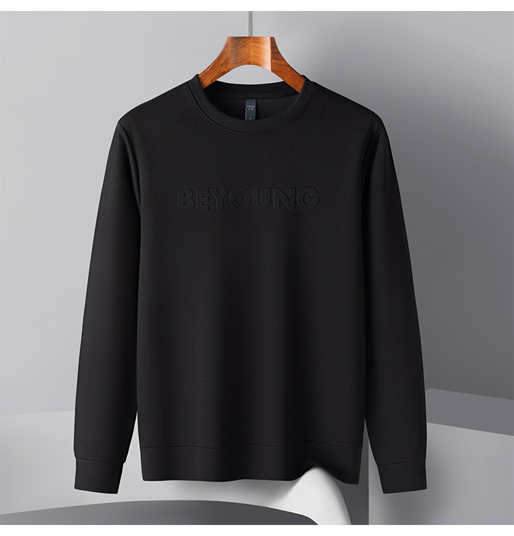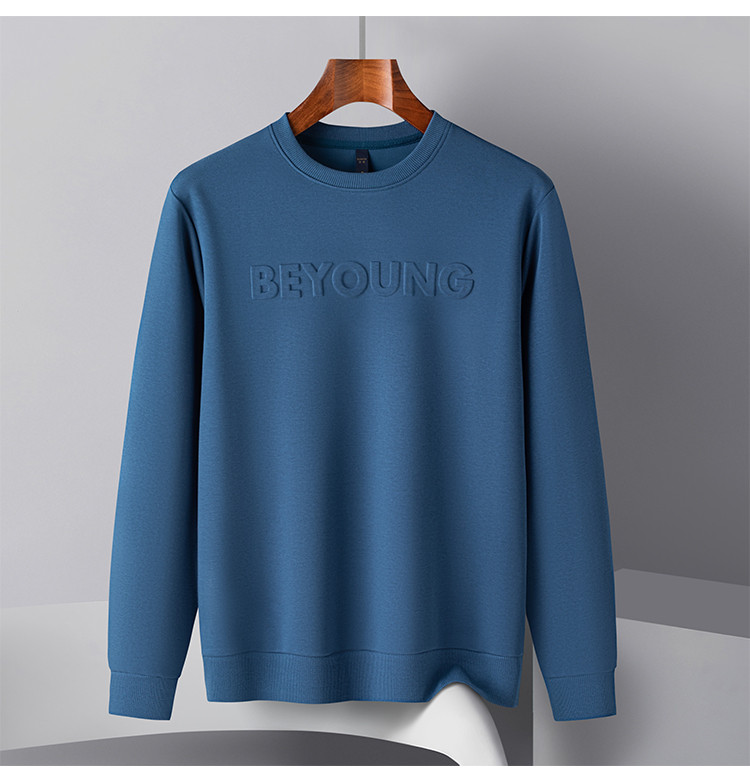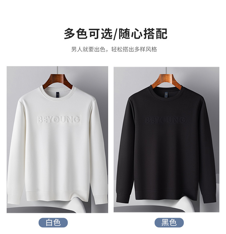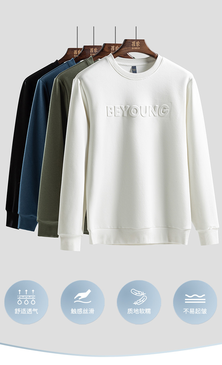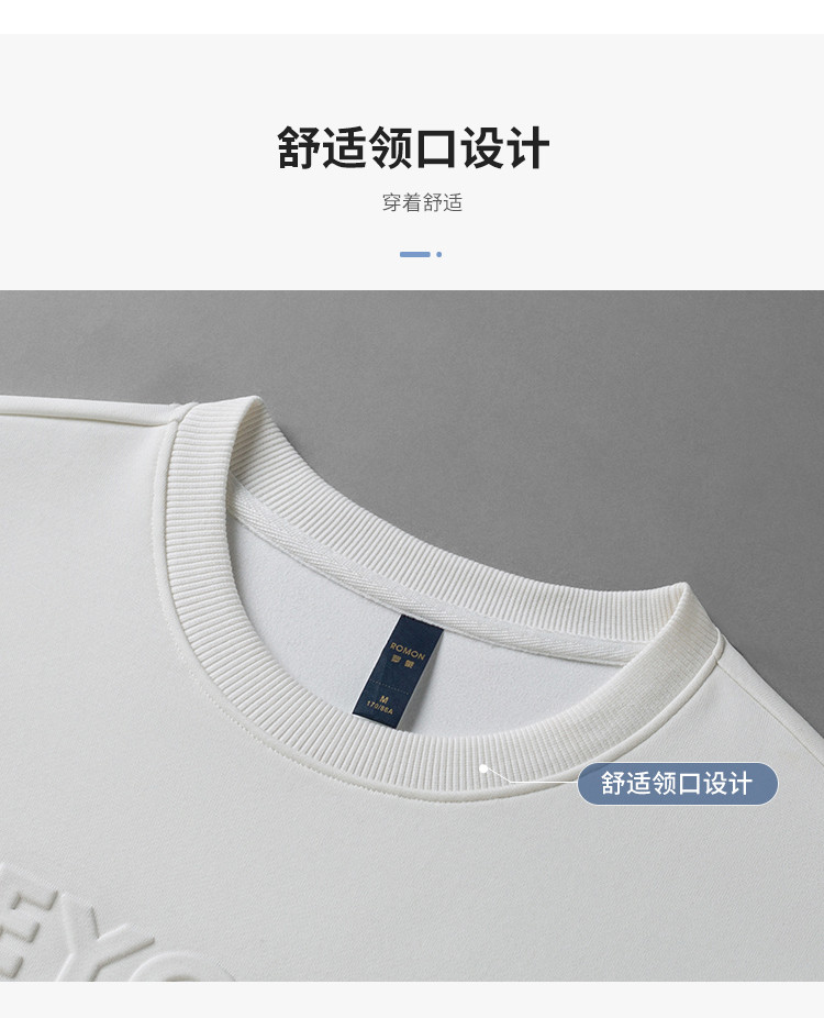 【桑蚕丝混纺】罗蒙春秋男装凹凸工艺圆领纯色卫衣男舒适休闲百搭卫衣长袖上衣男T恤