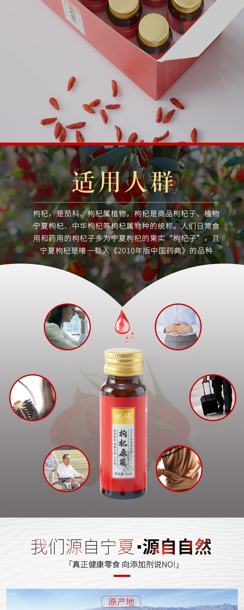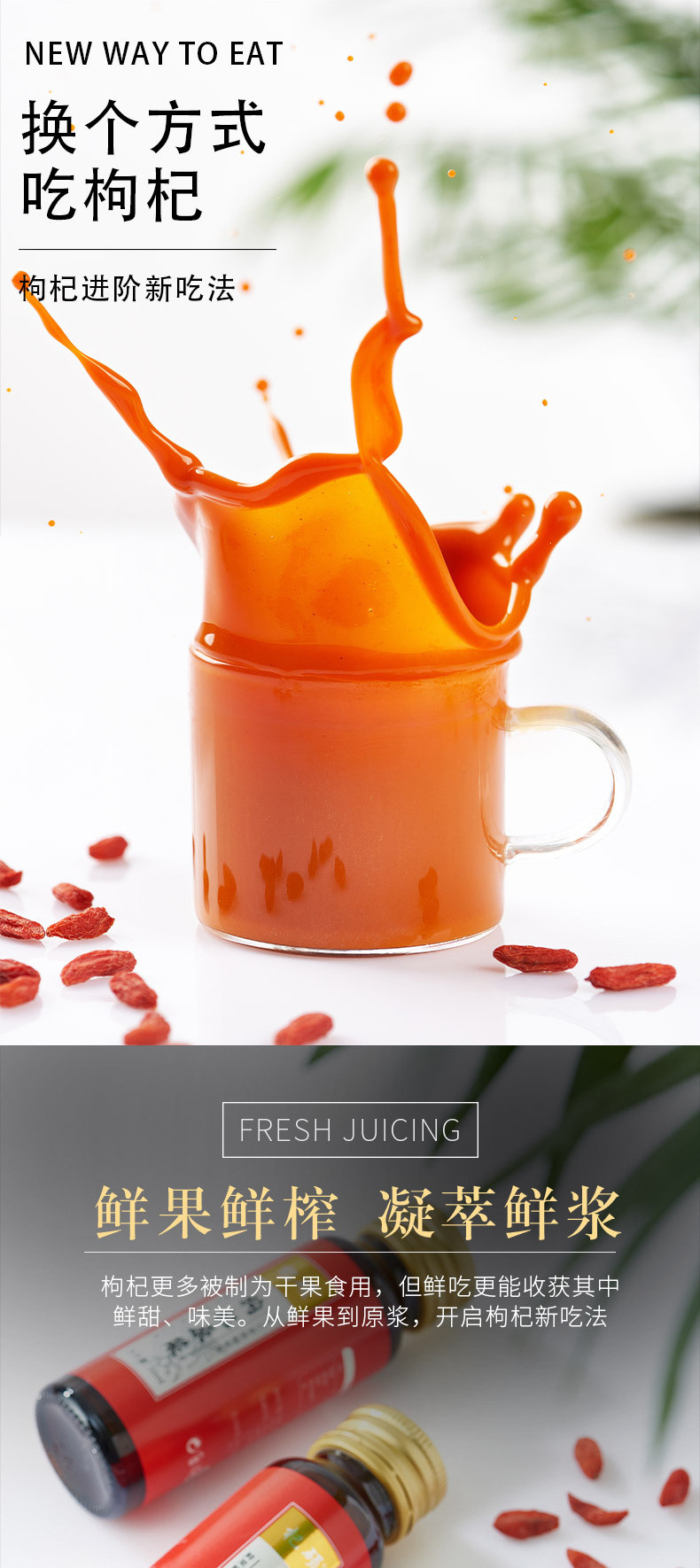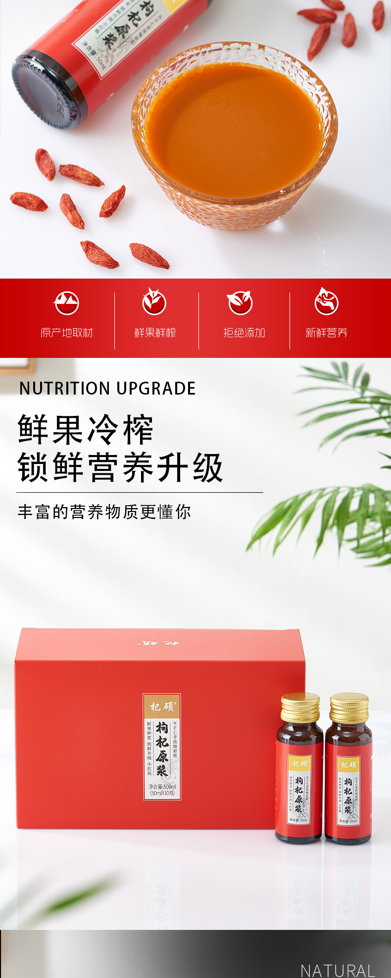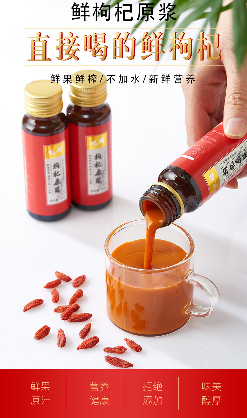 枸杞原浆 中宁鲜枸杞每日原浆 宁夏头茬枸杞原浆瓶装500ml/盒(10瓶装)